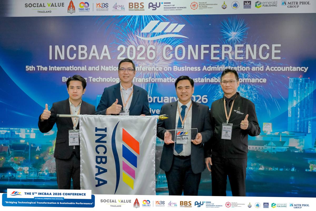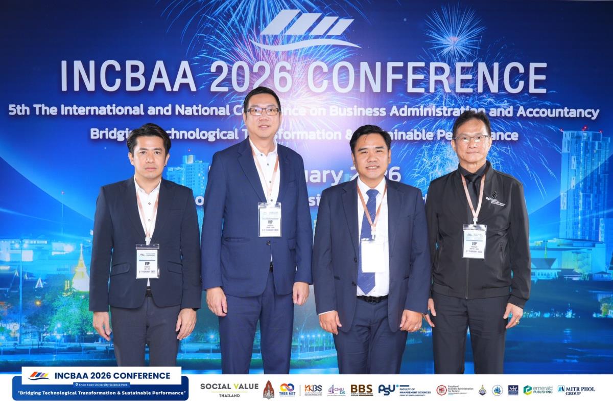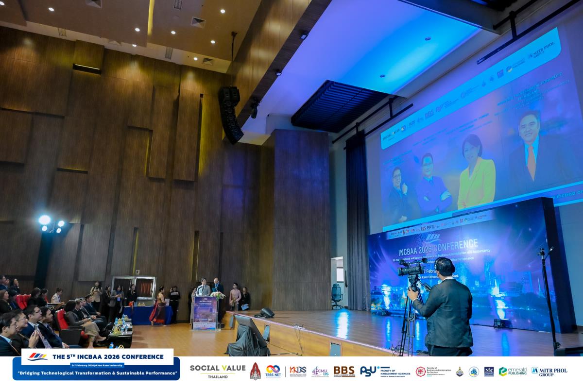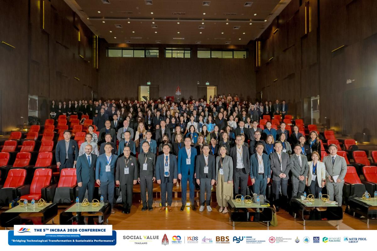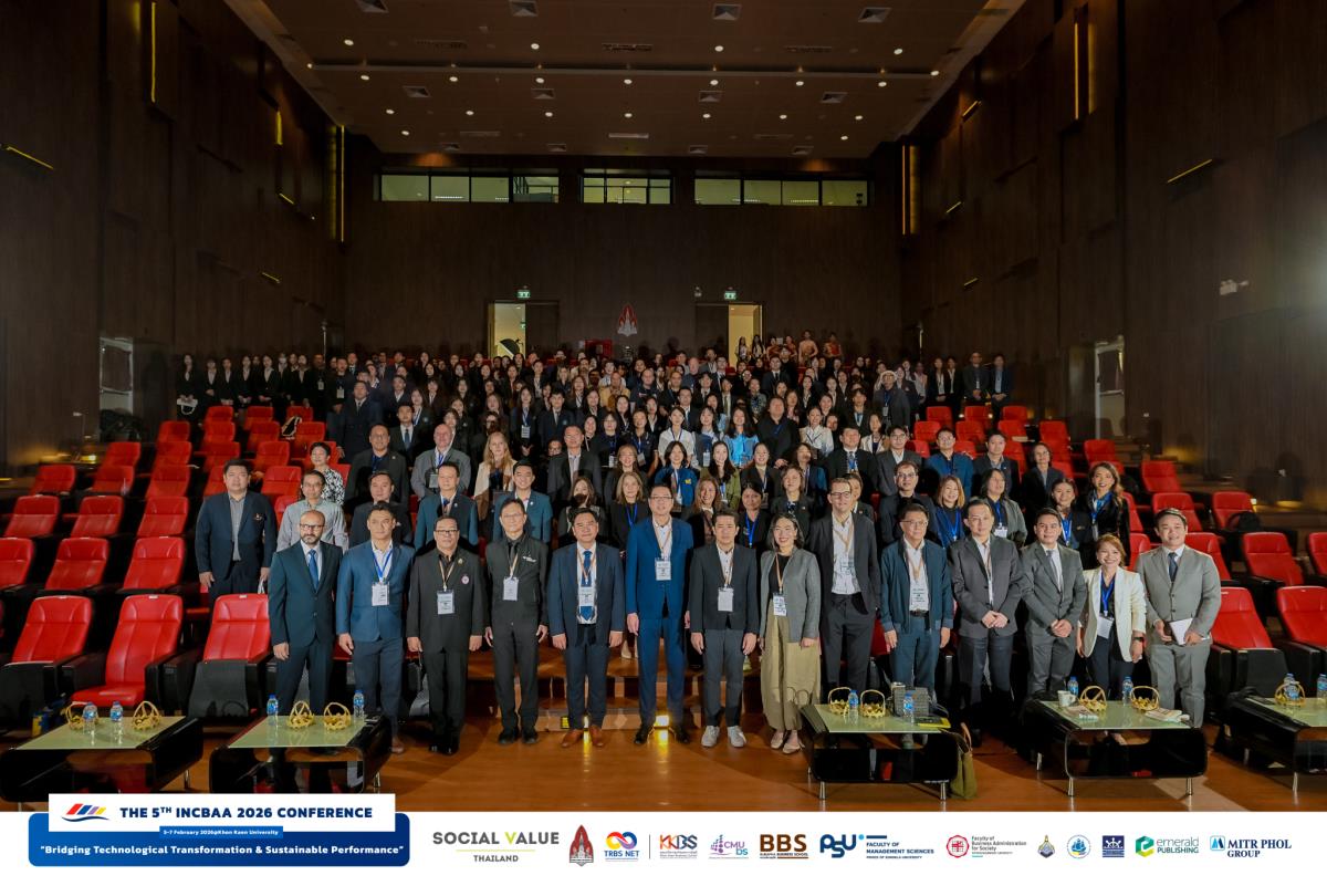 วันที่ 5–6 กุมภาพันธ์ 2569 คณะบริหารธุรกิจ มหาวิทยาลัยเชียงใหม่ (CMUBS) เข้าร่วมการประชุมวิชาการระดับชาติและนานาชาติด้านบริหารธุรกิจและการบัญชี ครั้งที่ 5 The International and National Conference on Business Administration and Accountancy (INCBAA 2026) ซึ่งจัดขึ้นโดยความร่วมมือของเครือข่ายสถาบันการศึกษาแห่งภูมิภาคด้านบริหารธุรกิจ (Thailand Regional Business Schools Network: TRBS NET) เพื่อเป็นเวทีแลกเปลี่ยนองค์ความรู้และเผยแพร่ผลงานวิจัยด้านบริหารธุรกิจและการบัญชีในระดับชาติและนานาชาติ โดยมี ผศ.ดร.ก้องภู นิมานันท์ คณบดีคณะบริหารธุรกิจ มหาวิทยาลัยเชียงใหม่ พร้อมด้วย รศ. ดร.นฤมล กิมภากรณ์ รองคณบดี นำคณาจารย์ นักศึกษา และบุคลากรงานบริหารงานวิจัย เข้าร่วมงาน ณ คณะบริหารธุรกิจและการบัญชี มหาวิทยาลัยขอนแก่น และ อุทยานวิทยาศาสตร์ มหาวิทยาลัยขอนแก่น จังหวัดขอนแก่น