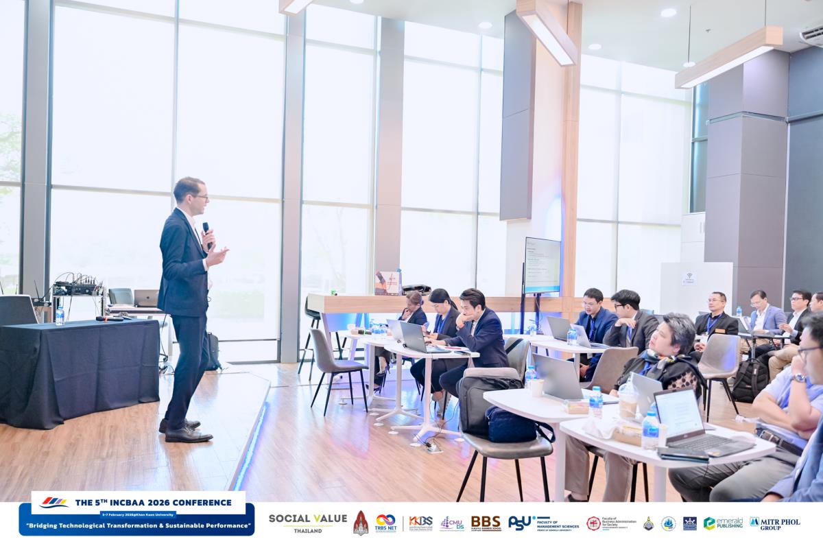 สำหรับงาน INCBAA 2026 ครั้งนี้จัดขึ้นภายใต้หัวข้อ “Bridging Technological Transformation & Sustainable Performance” โดยได้รับเกียรติจาก Prof. Dr. Dr. h.c. Marko Sarstedt หัวหน้าสถาบัน Institute for Finance & Banking, LMU Munich School of Management สหพันธ์สาธารณรัฐเยอรมนี เป็นวิทยากรปาฐกถาพิเศษและวิทยากรเชิงปฏิบัติการในหัวข้อ Partial Least Squares Structural Equation Modeling (PLS-SEM) พร้อมทั้งมีการเสวนาแลกเปลี่ยนมุมมองด้านความยั่งยืนจากผู้ทรงคุณวุฒิภาคเอกชน ได้แก่ คุณสกุลทิพย์ กีรติพันธวงศ์ เลขาธิการสมาคมส่งเสริมการพัฒนาธุรกิจอย่างยั่งยืน และคุณวรวัฒน์ ศรียุกต์ ผู้อำนวยการด้านบริหารองค์กรเพื่อความยั่งยืน บริษัท น้ำตาลมิตรผล จำกัด