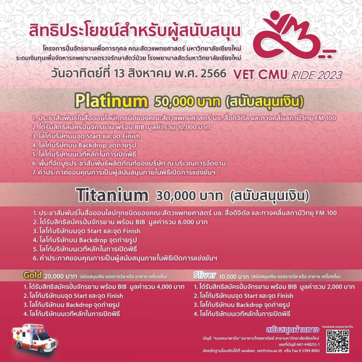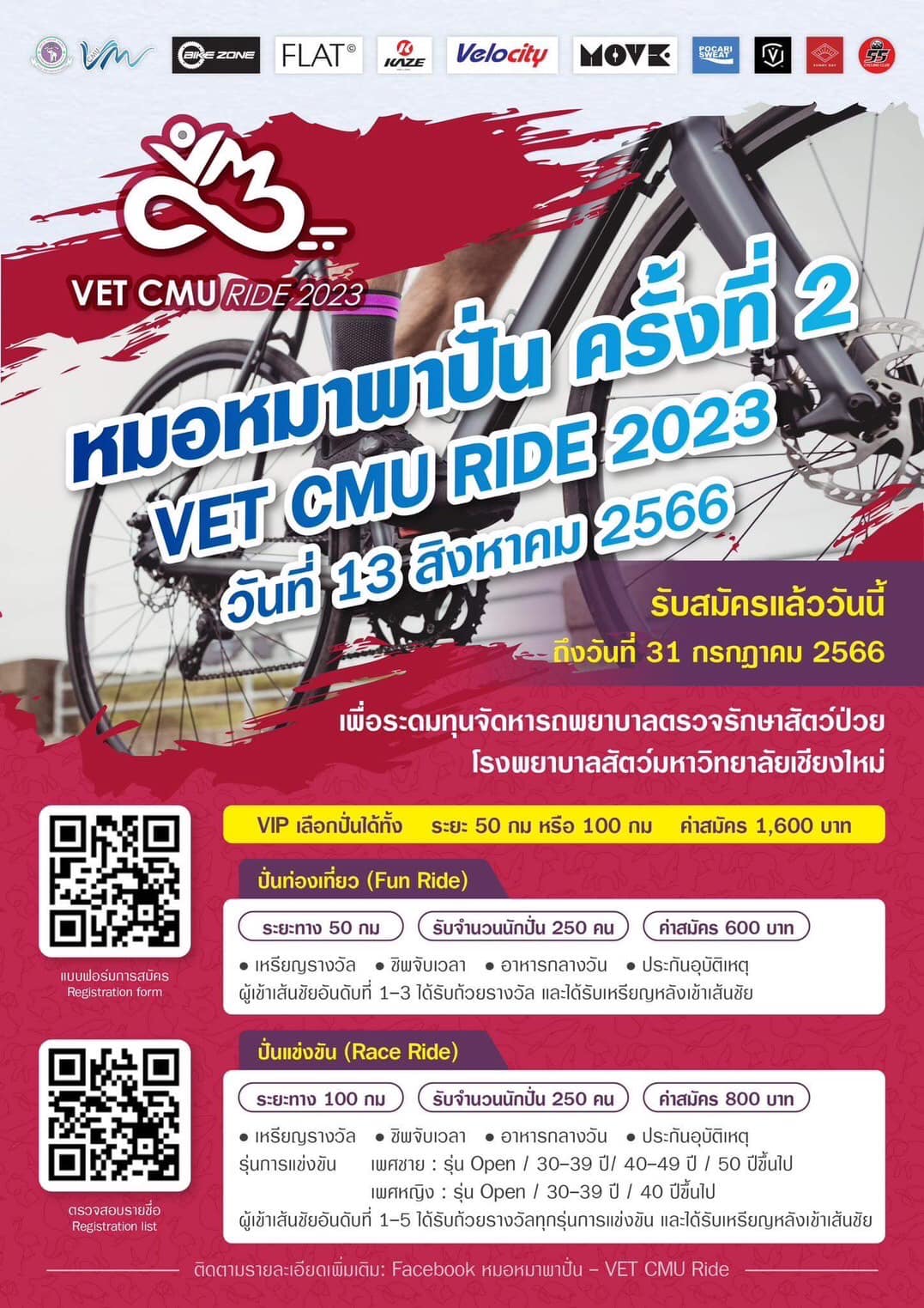ติดตามรายละเอียดและสอบถามได้ที่ Facebook Page หมอหมาพาปั่น - VET CMU Ride : https://www.facebook.com/VetCmuRide