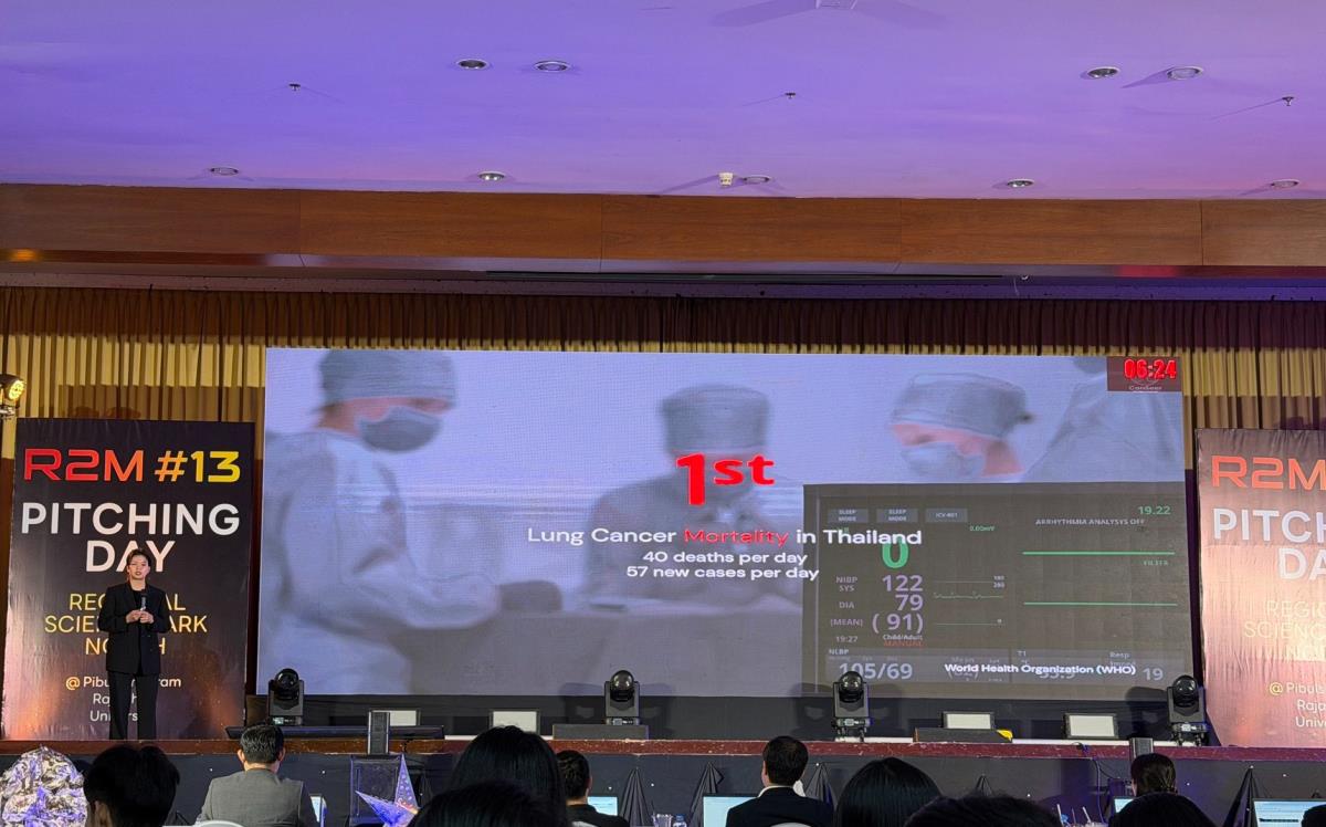 รางวัลชนะเลิศ ทีม CEliver นำเสนอผลงาน Liquid Biopsy Platform for Early Liver Cancer Detection ชุดตรวจคัดกรองมะเร็งตับจากเลือด โดยใช้การวิเคราะห์ cfDNA และ Machine Learning ช่วยตรวจพบมะเร็งตับระยะเริ่มต้นได้อย่างแม่นยำ โดยมี นายศิรวิทย์ ถ้วยเงิน และนางสาวทักษอร โพธิ์บาทะ จากคณะบริหารธุรกิจร่วมเป็นหนึ่งในสมาชิกทีม