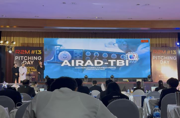 รางวัลรองชนะเลิศอันดับ 1 ทีม AIRAD-TBI นำเสนอผลงาน AIRAD-TBI ซอฟต์แวร์ AI ช่วยวินิจฉัยภาพถ่ายรังสีคอมพิวเตอร์ (CT Scan) สำหรับผู้ป่วยบาดเจ็บทางสมอง (Traumatic Brain Injury) โดยมีนายจิรภัทร ณ ลำพูน จากคณะบริหารธุรกิจร่วมเป็นหนึ่งในสมาชิกทีม