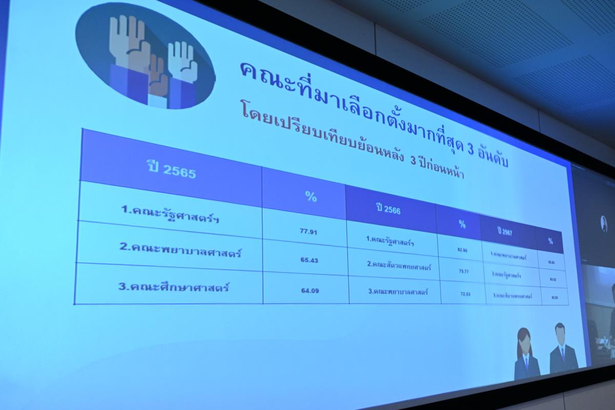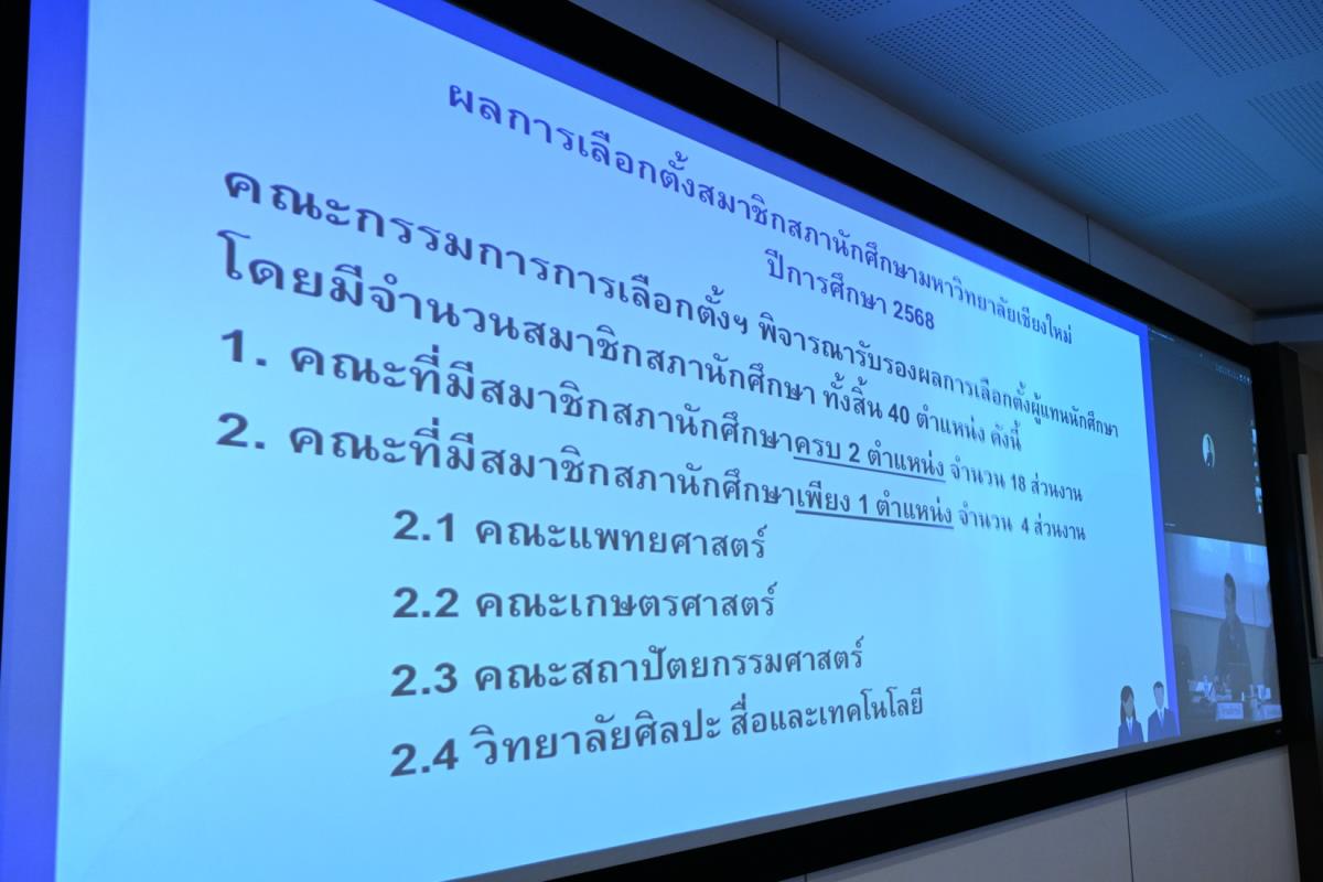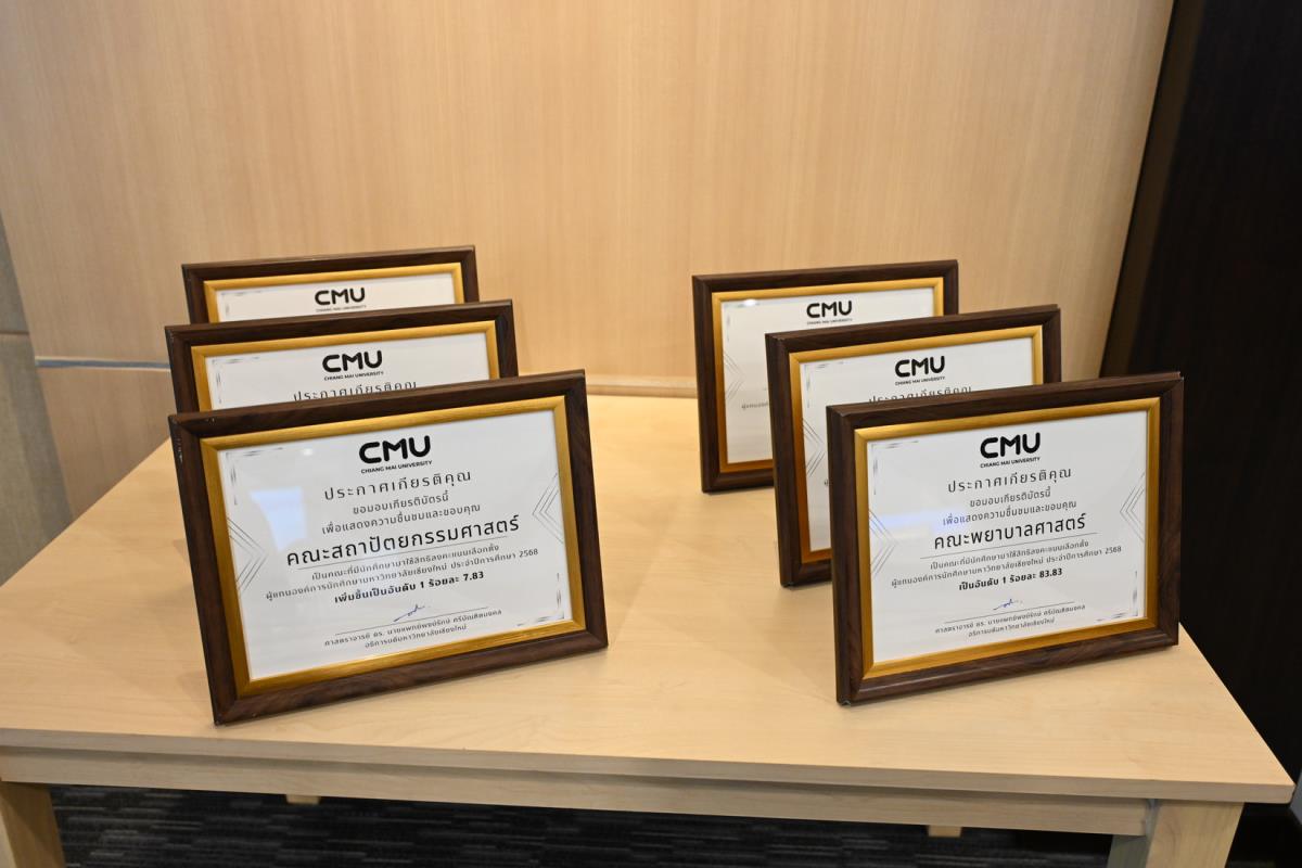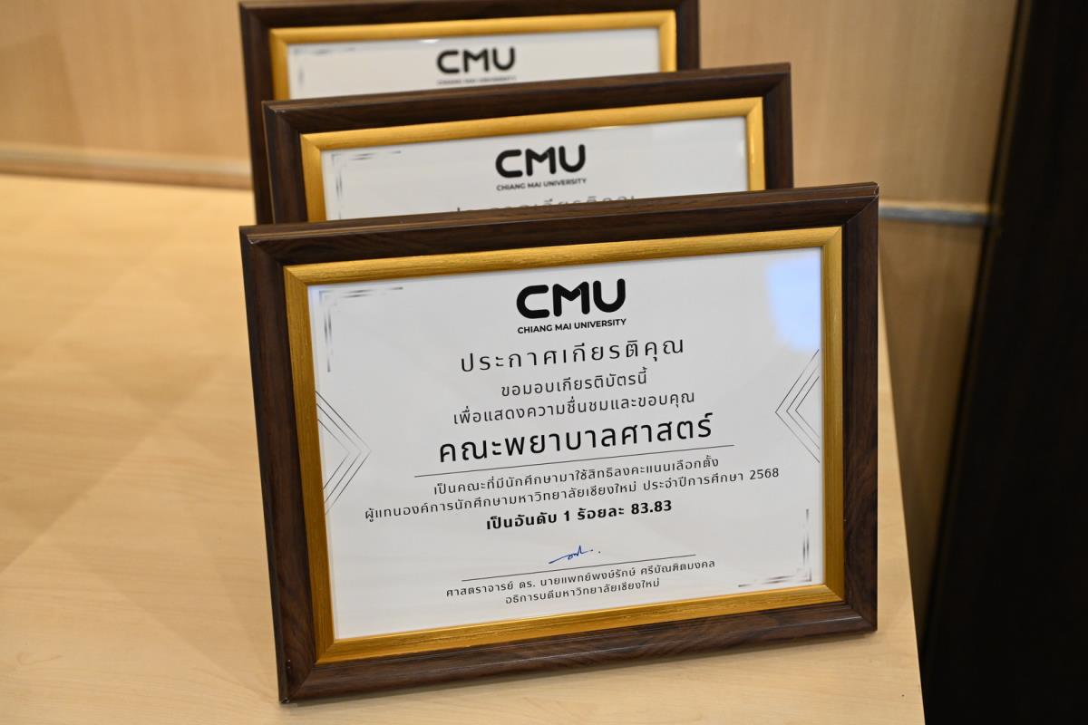 ศาสตราจารย์ ดร.นพ.พงษ์รักษ์ ศรีบัณฑิตมงคล อธิการบดีมหาวิทยาลัยเชียงใหม่ เป็นประธานในพิธีมอบโล่ประกาศเกียรติคุณ ให้แก่คณะที่มีนักศึกษามาใช้สิทธิ์ในการลงคะแนนเสียงเลือกตั้ง ผู้แทนองค์การนักศึกษามหาวิทยาลัยเชียงใหม่ ประจำปีการศึกษา 2568 ได้แก่ อันดับที่ 1คณะพยาบาลศาสตร์ ร้อยละ 83.83 อันดับที่ 2 คณะรัฐศาสตร์และรัฐประศาสนศาสตร์ ร้อยละ 83.62 อันดับที่ 3 คณะสัตวแพทยศาสตร์ ร้อยละ 82.93 และรางวัลการเพิ่มจำนวนของผู้มาใช้สิทธิ์เลือกตั้ง อันดับที่ 1 คณะสถาปัตยกรรมศาสตร์ เพิ่มขึ้นร้อยละ 7.83 อันดับที่ 2 คณะสังคมศาสตร์ เพิ่มขึ้นร้อยละ 7.27 และอันดับที่ 3 คณะเศรษฐศาสตร์ เพิ่มขึ้นร้อยละ 6.72 ในการประชุมคณะกรรมการบริหารมหาวิทยาลัยเชียงใหม่ (กบม.) ครั้งที่ 5/2568 ณ ห้องประชุมตะวัน กังวานพงศ์ อาคารยุทธศาสตร์ สำนักงานมหาวิทยาลัย มหาวิทยาลัยเชียงใหม่ วันพุธที่ 26 มีนาคม พ.ศ. 2568