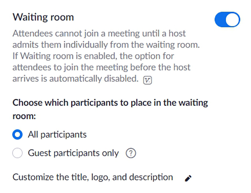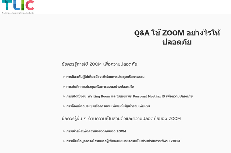 - การเปิดใช้งาน Wait Room และไม่เผยแพร่ Personal Meeting ID เพื่อความปลอดภัย