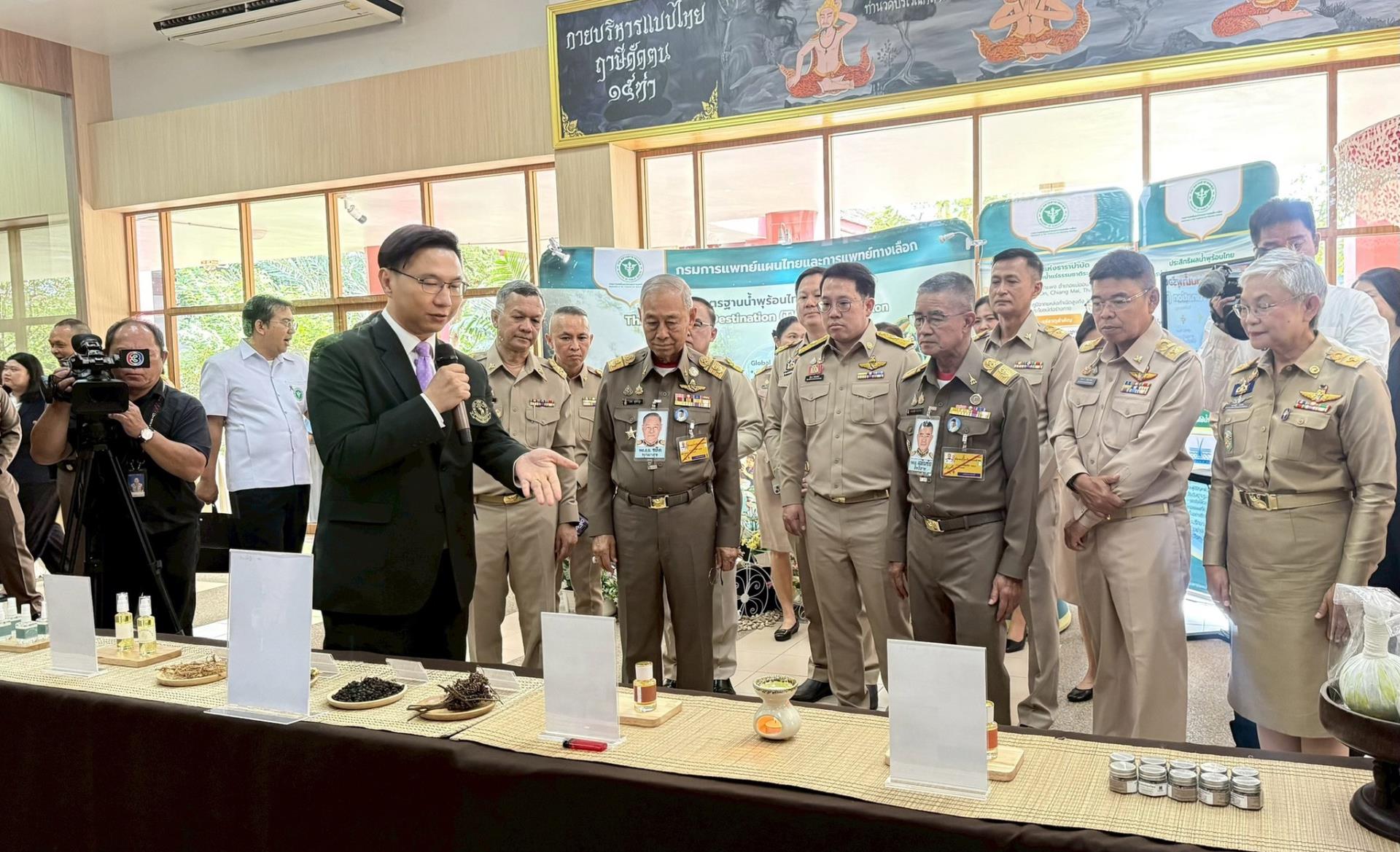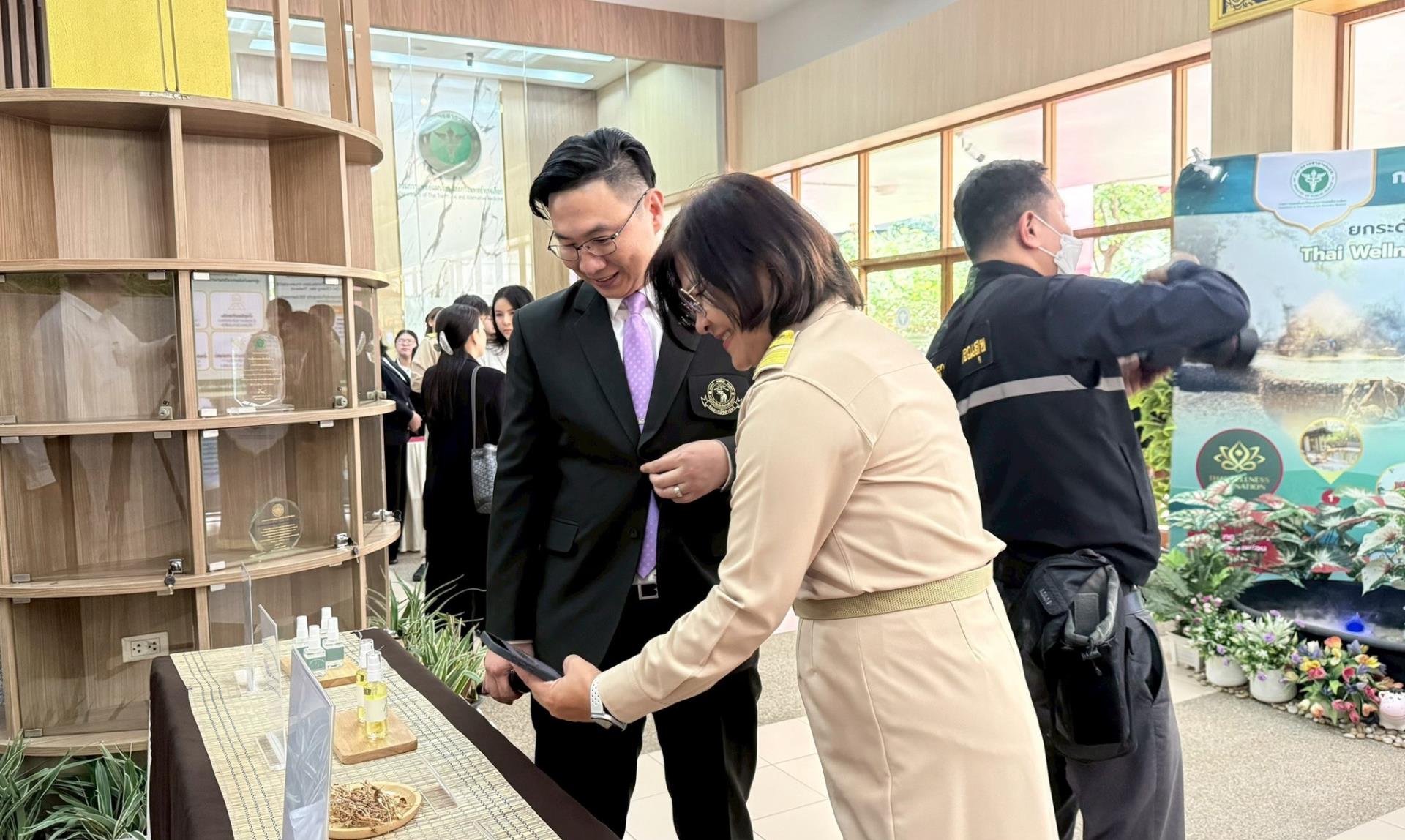 นอกจากนี้ คณะเภสัชศาสตร์ได้ร่วมจัดนิทรรศการผลิตภัณฑ์สุขภาพจากน้ำพุร้อนและสมุนไพร โดยนำเสนอผลิตภัณฑ์ต้นแบบ อาทิ น้ำมันหอมระเหยจากพืชสมุนไพรอัตลักษณ์ในพื้นที่แม่ออน–สันกำแพง น้ำมันนวดผิวผสมน้ำมันหอมจากว่านสาวหลง ตะไคร้ต้น ดอกเก็ดถะหวา และมะแขว่น รวมถึงสเปรย์น้ำแร่จากน้ำพุร้อนสันกำแพง ซึ่งอยู่ระหว่างการวิจัยและพัฒนาเพื่อยกระดับเป็นผลิตภัณฑ์สุขภาพในอนาคต ทั้งนี้ คณะฯ ขอขอบพระคุณคณาจารย์และนักวิจัยผู้มีส่วนร่วมในการพัฒนา ได้แก่ ผศ.ดร.ภญ.กนกวรรณ เกียรติสิน, รศ.ดร.ศศิธร ศิริลุน, รศ.ดร.ภญ.จุฑามาศ เจียรนัยกุลวานิช, รศ.ดร.ภญ.รังษินี พงษ์ประดิษฐ, ดร.เนตรนภา มาคำเรือง และนางสาวสุภาลักษณ์ หวังฟังกลาง