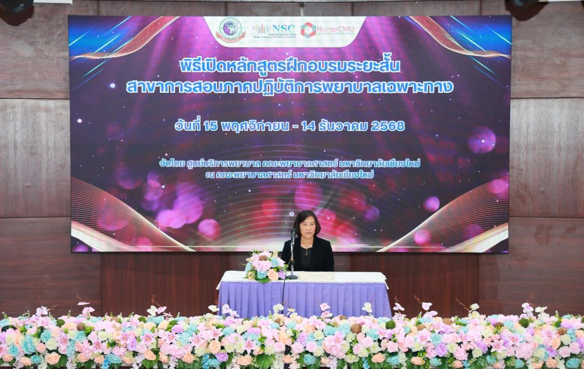 ศูนย์บริการพยาบาล คณะพยาบาลศาสตร์ มหาวิทยาลัยเชียงใหม่ จัดพิธีเปิดการอบรมหลักสูตรระยะสั้น สาขาการสอนภาคปฏิบัติการพยาบาลเฉพาะทาง โดยมี ผู้ช่วยศาสตราจารย์ ดร.สุภารัตน์ วังศรีคูณ คณบดีคณะพยาบาลศาสตร์ เป็นประธาน รองศาสตราจารย์ ดร.นงค์คราญ วิเศษกุล ประธานหลักสูตรฯ กล่าวรายงาน ศาสตราจารย์คลินิก ดร.พรรณพิไล ศรีอาภรณ์ ผู้อำนวยการศูนย์บริการพยาบาล คุณสำราญ พุ่มวัชระ รองหัวหน้าฝ่ายการพยาบาล ด้านพัฒนาทรัพยากรบุคคล โรงพยาบาลมหาราชนครเชียงใหม่ และคุณจันทร์จีรา กลมมา หัวหน้ากลุ่มงานการพยาบาลผู้คลอด โรงพยาบาลนครพิงค์ กล่าวต้อนรับ การอบรมจัดขึ้นระหว่างวันที่ 15 พฤศจิกายน - 14 ธันวาคม 2568