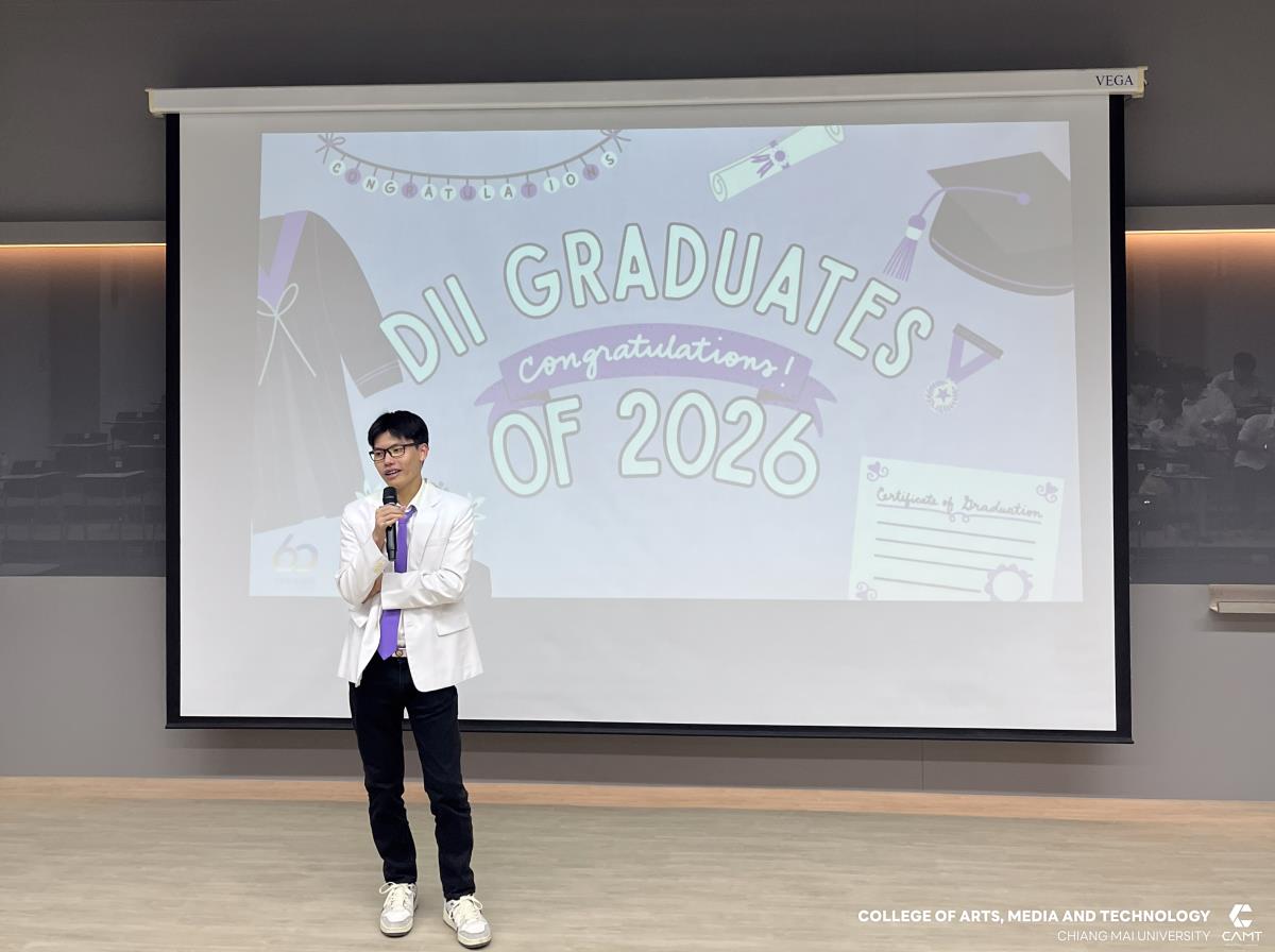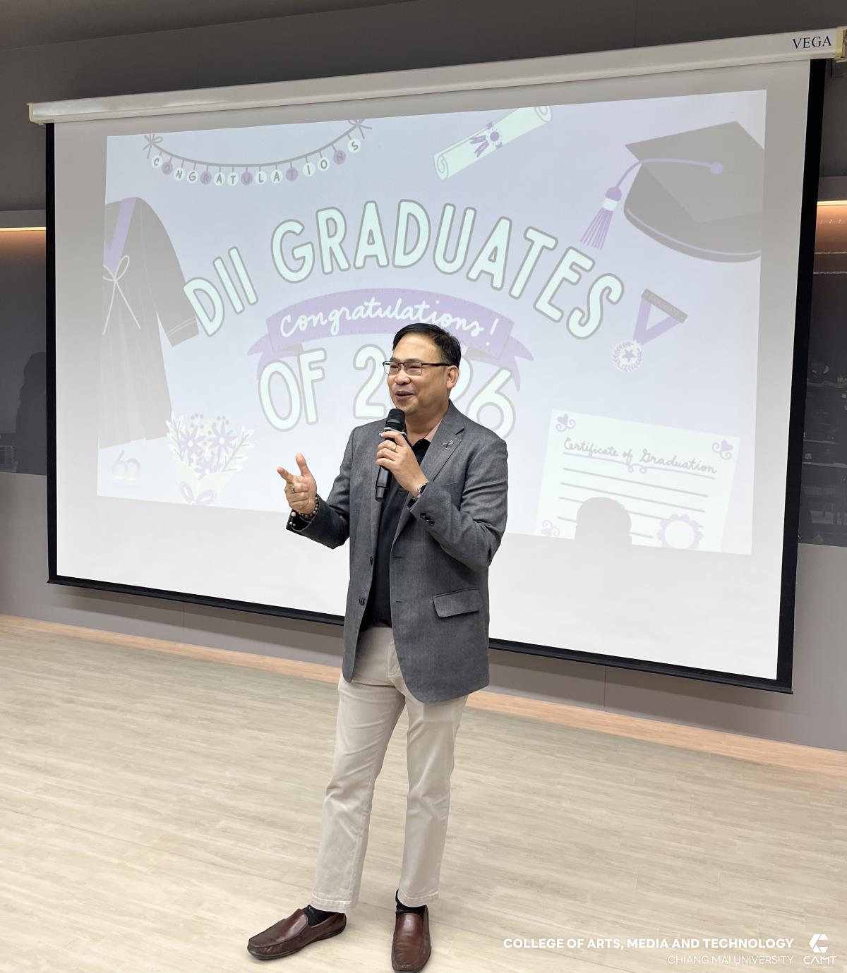 ภายในกิจกรรมได้รับเกียรติจากคณาจารย์ประจำสาขาบูรณาการอุตสาหกรรมดิจิทัล (DII) เข้าร่วมพบปะและกล่าวอวยพรให้แก่บัณฑิตใหม่ โดยเน้นย้ำถึงการนำความรู้ด้านดิจิทัลไปประยุกต์ใช้ในการทำงานอย่างมีจรรยาบรรณ และการเป็นกำลังสำคัญในการขับเคลื่อนอุตสาหกรรมดิจิทัลของประเทศในอนาคต เมื่อวันที่ 19 มกราคม 2569 ณ วิทยาลัยศิลปะ สื่อ และเทคโนโลยี มหาวิทยาลัยเชียงใหม่
