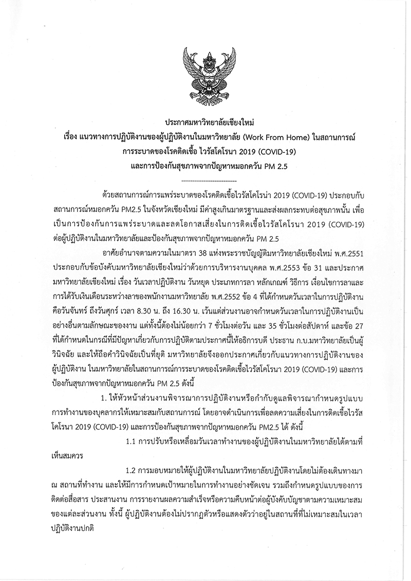 เรื่อง แนวทางการปฏิบัติงานของผู้ปฏิบัติงานในมหาวิทยาลัย (Work From Home)