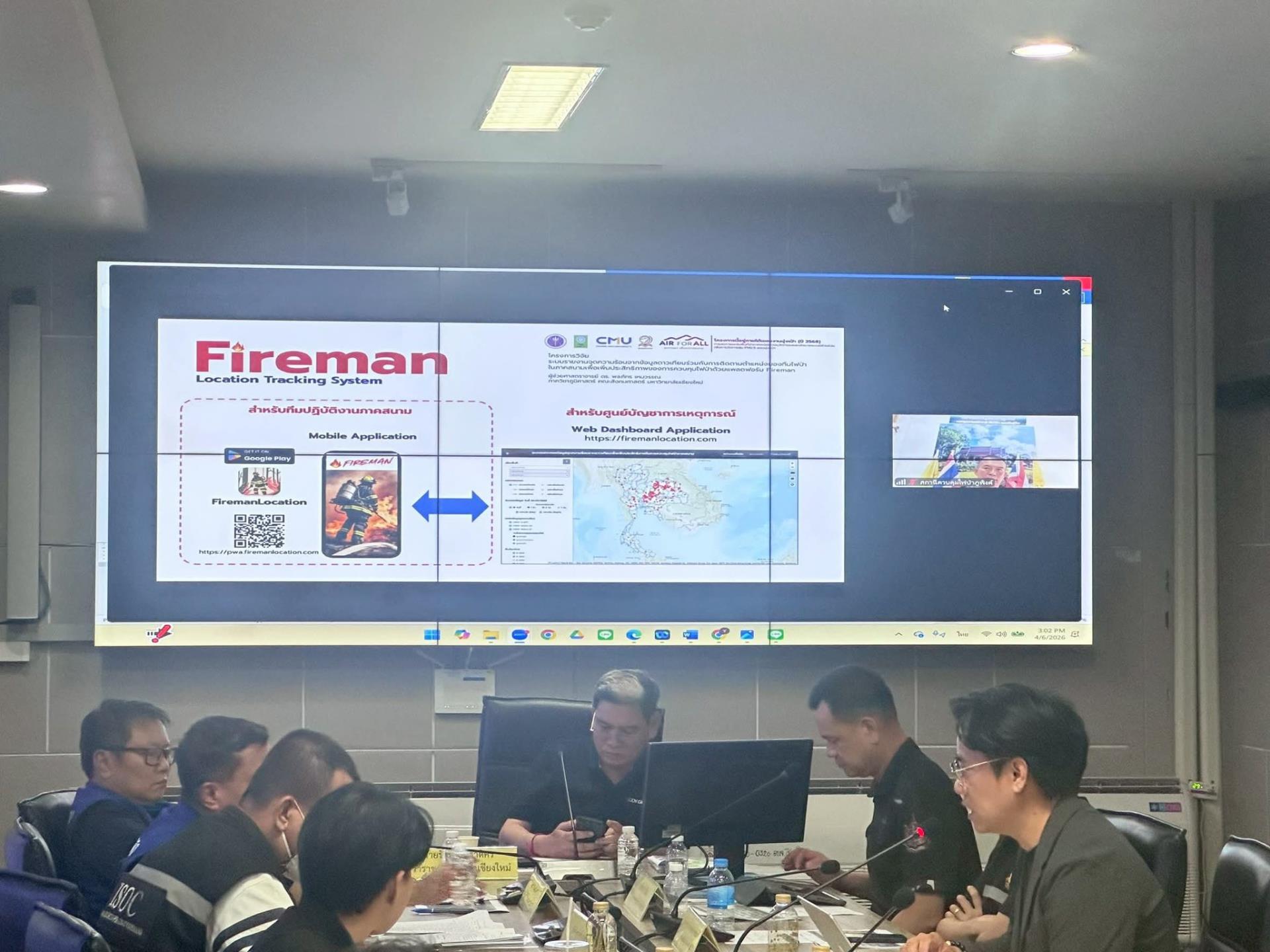 การนำเสนอครั้งนี้สะท้อนความก้าวหน้าของการพัฒนา “Fireman” แพลตฟอร์มต้นแบบที่ออกแบบมาเพื่อสนับสนุนการทำงานร่วมกันระหว่างศูนย์บัญชาการเหตุการณ์ (War Room) ในระดับจังหวัด อำเภอ และตำบล กับทีมปฏิบัติงานควบคุมไฟป่าในภาคสนาม โดยมีการทดลองใช้งานแล้วในพื้นที่นำร่อง 8 อำเภอโซนใต้ของจังหวัดเชียงใหม่