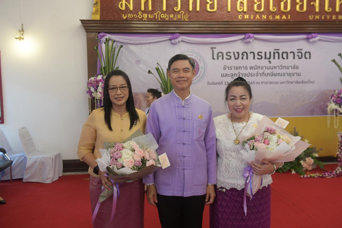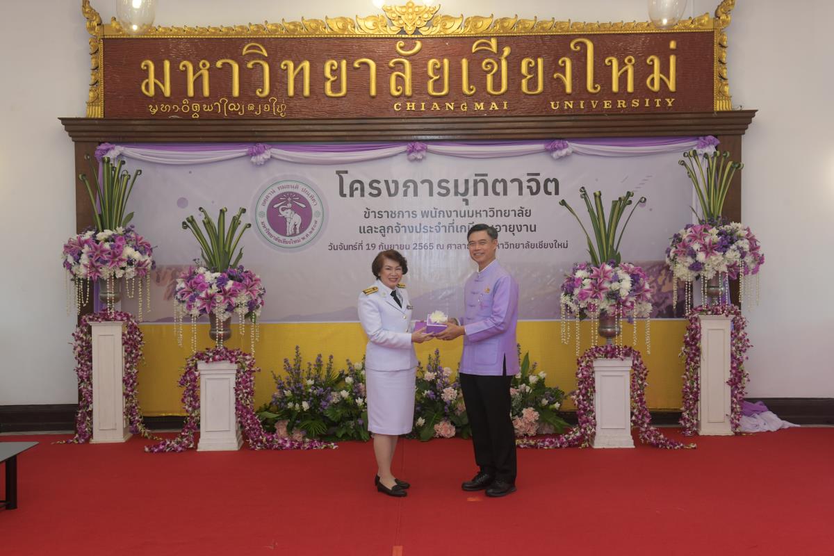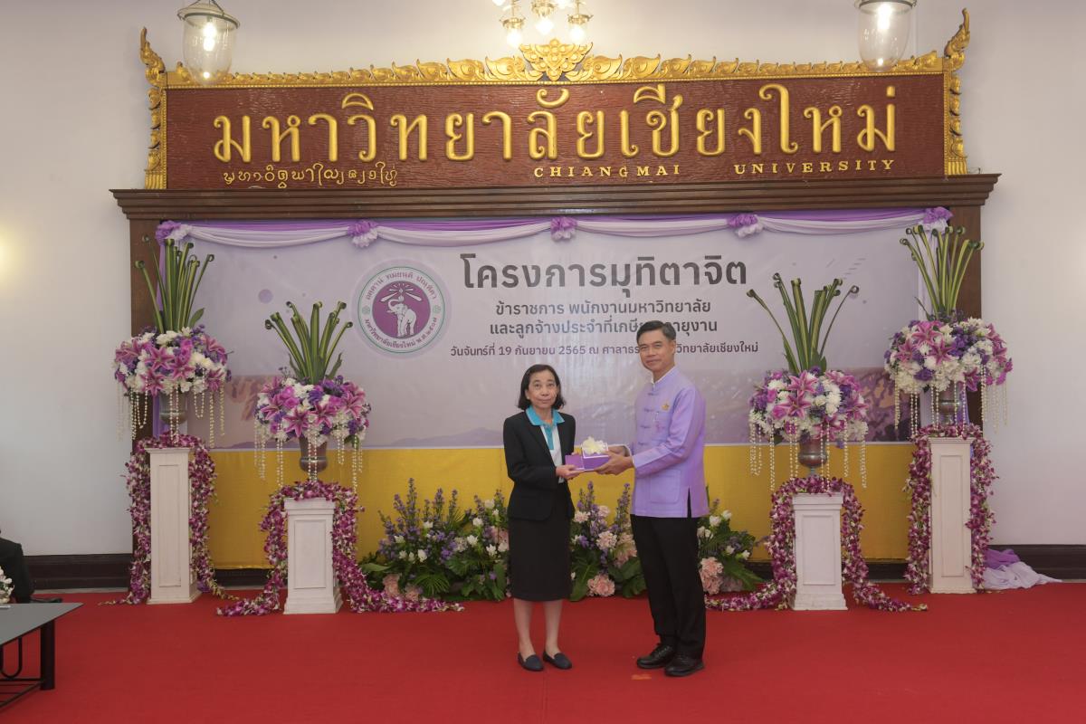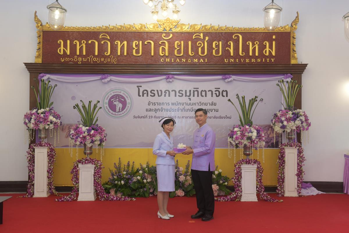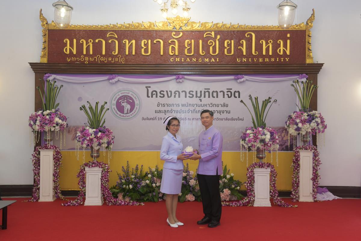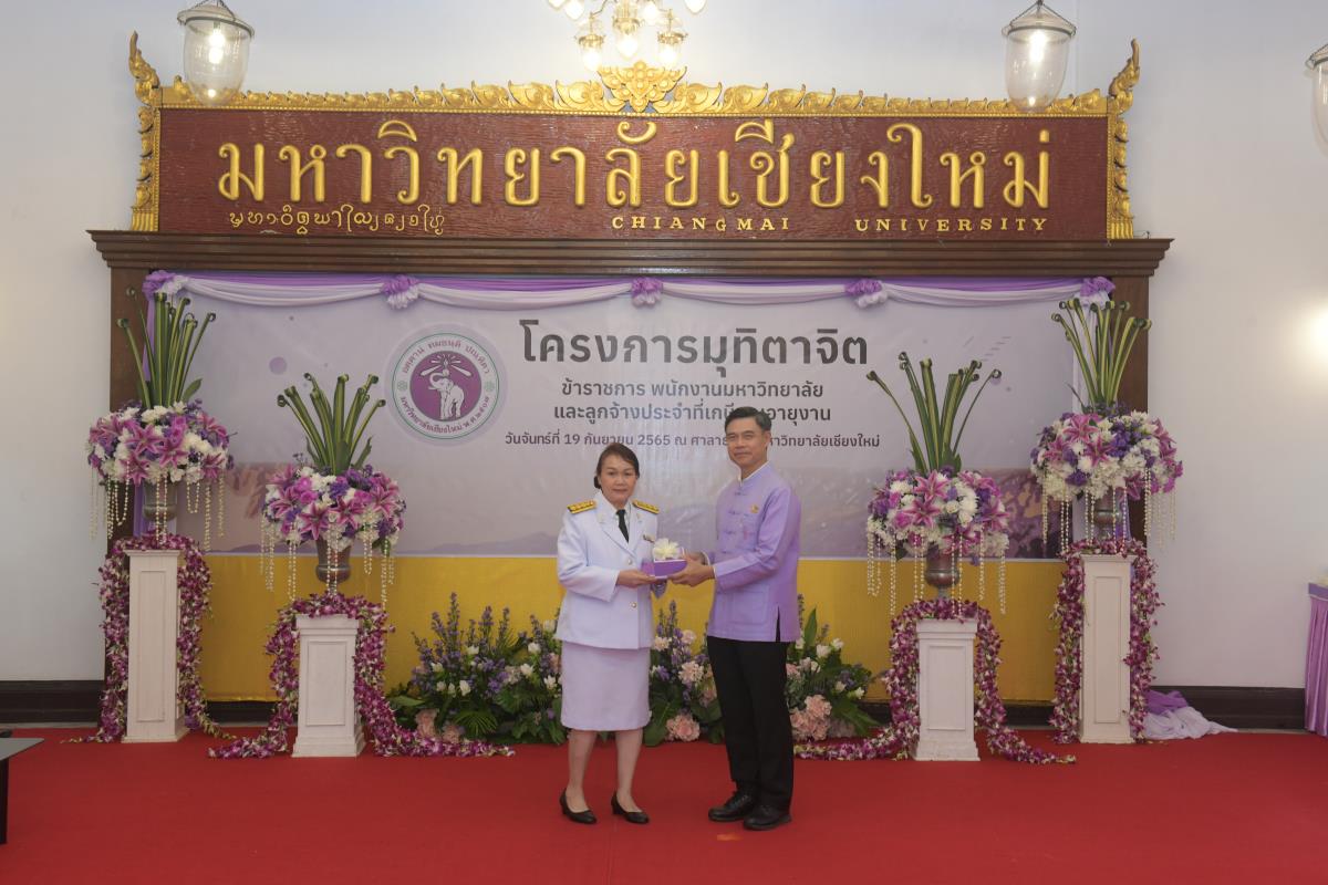 มหาวิทยาลัยเชียงใหม่ จัดงานมุทิตาจิตแก่ข้าราชการ พนักงานมหาวิทยาลัยและลูกจ้างประจำที่เกษียณอายุงานประจำปี 2565 ของมหาวิทยาลัยเชียงใหม่ จำนวน 269 คน โดยมีศาสตราจารย์ ดร.นพ.พงษ์รักษ์ ศรีบัณฑิตมงคล อธิการบดีมหาวิทยาลัยเชียงใหม่ เป็นประธานในพิธีฯ เพื่อเชิดชูเกียรติ และระลึกถึงคุณงามความดี ที่ได้อุทิศตนปฏิบัติหน้าที่ด้วยแรงกาย แรงใจ มีความมานะ อุตสาหะ พากเพียรพยายาม มุ่งมั่นสรรค์สร้างและพัฒนามหาวิทยาลัยเชียงใหม่ตลอดมา ณ ศาลาธรรม มหาวิทยาลัยเชียงใหม่ เมื่อวันจันทร์ที่ 19 กันยายน พ.ศ. 2565