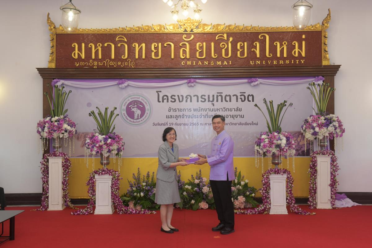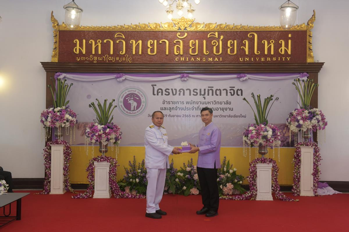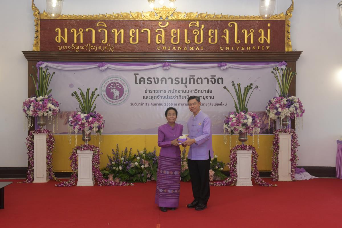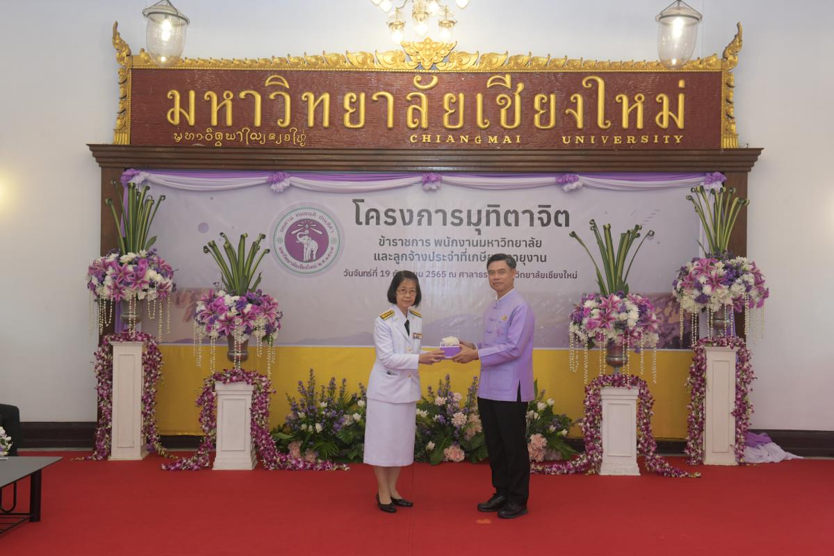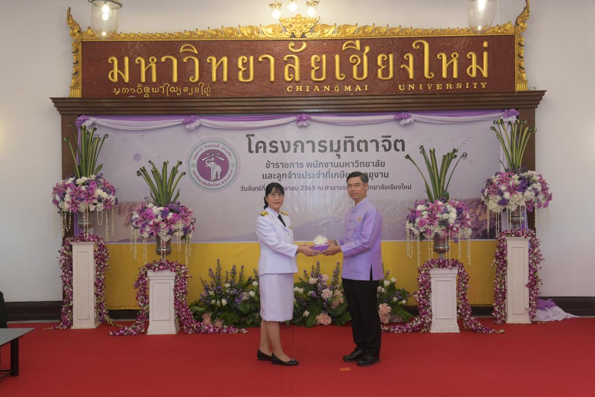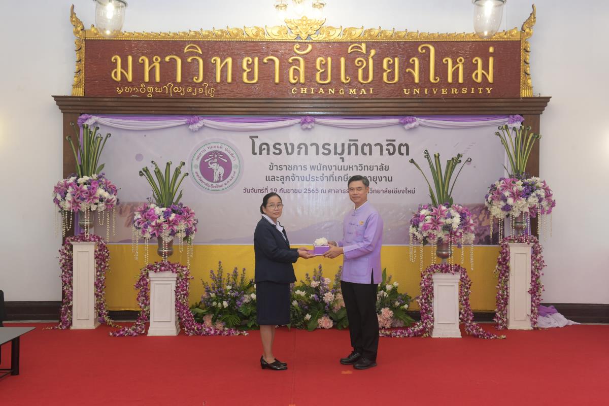 มหาวิทยาลัยเชียงใหม่ จัดงานมุทิตาจิตแก่ข้าราชการ พนักงานมหาวิทยาลัยและลูกจ้างประจำที่เกษียณอายุงานประจำปี 2565 ของมหาวิทยาลัยเชียงใหม่ จำนวน 269 คน โดยมีศาสตราจารย์ ดร.นพ.พงษ์รักษ์ ศรีบัณฑิตมงคล อธิการบดีมหาวิทยาลัยเชียงใหม่ เป็นประธานในพิธีฯ เพื่อเชิดชูเกียรติ และระลึกถึงคุณงามความดี ที่ได้อุทิศตนปฏิบัติหน้าที่ด้วยแรงกาย แรงใจ มีความมานะ อุตสาหะ พากเพียรพยายาม มุ่งมั่นสรรค์สร้างและพัฒนามหาวิทยาลัยเชียงใหม่ตลอดมา ณ ศาลาธรรม มหาวิทยาลัยเชียงใหม่ เมื่อวันจันทร์ที่ 19 กันยายน พ.ศ. 2565