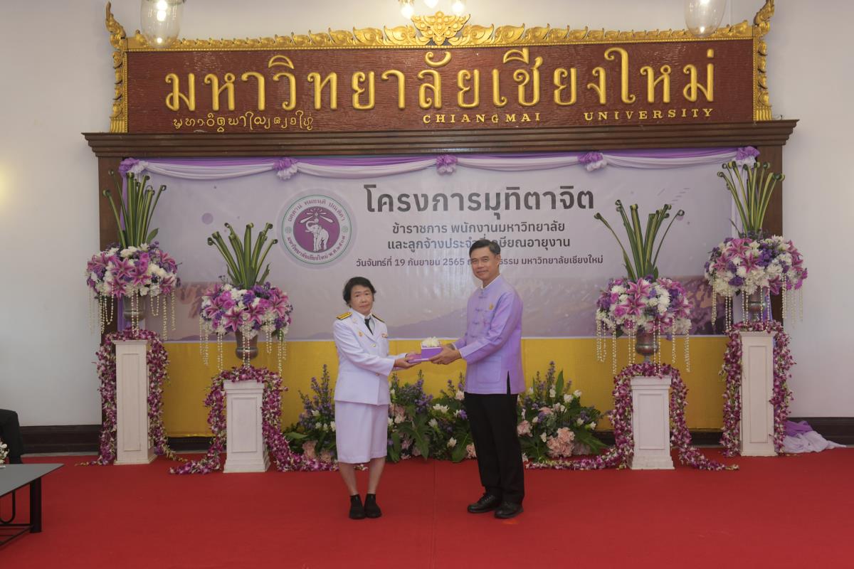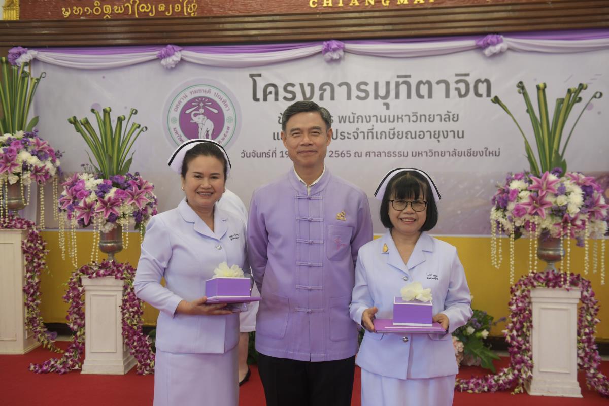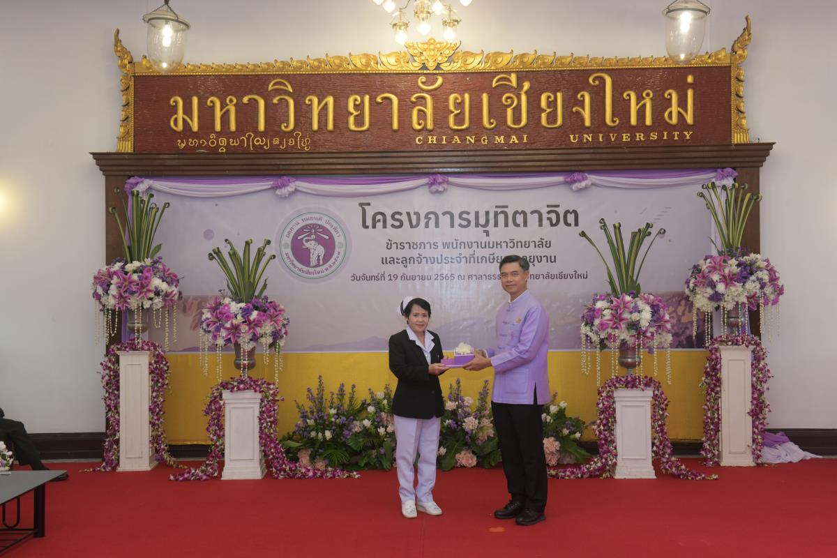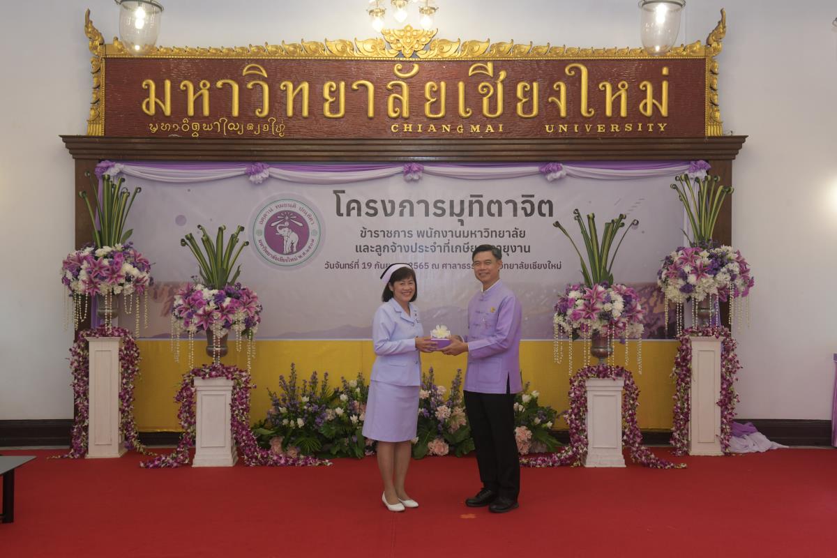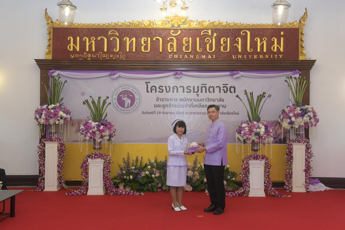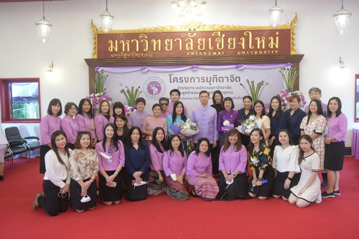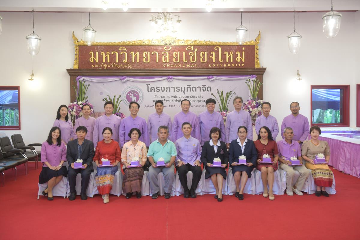 มหาวิทยาลัยเชียงใหม่ จัดงานมุทิตาจิตแก่ข้าราชการ พนักงานมหาวิทยาลัยและลูกจ้างประจำที่เกษียณอายุงานประจำปี 2565 ของมหาวิทยาลัยเชียงใหม่ จำนวน 269 คน โดยมีศาสตราจารย์ ดร.นพ.พงษ์รักษ์ ศรีบัณฑิตมงคล อธิการบดีมหาวิทยาลัยเชียงใหม่ เป็นประธานในพิธีฯ เพื่อเชิดชูเกียรติ และระลึกถึงคุณงามความดี ที่ได้อุทิศตนปฏิบัติหน้าที่ด้วยแรงกาย แรงใจ มีความมานะ อุตสาหะ พากเพียรพยายาม มุ่งมั่นสรรค์สร้างและพัฒนามหาวิทยาลัยเชียงใหม่ตลอดมา ณ ศาลาธรรม มหาวิทยาลัยเชียงใหม่ เมื่อวันจันทร์ที่ 19 กันยายน พ.ศ. 2565