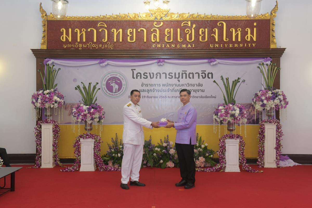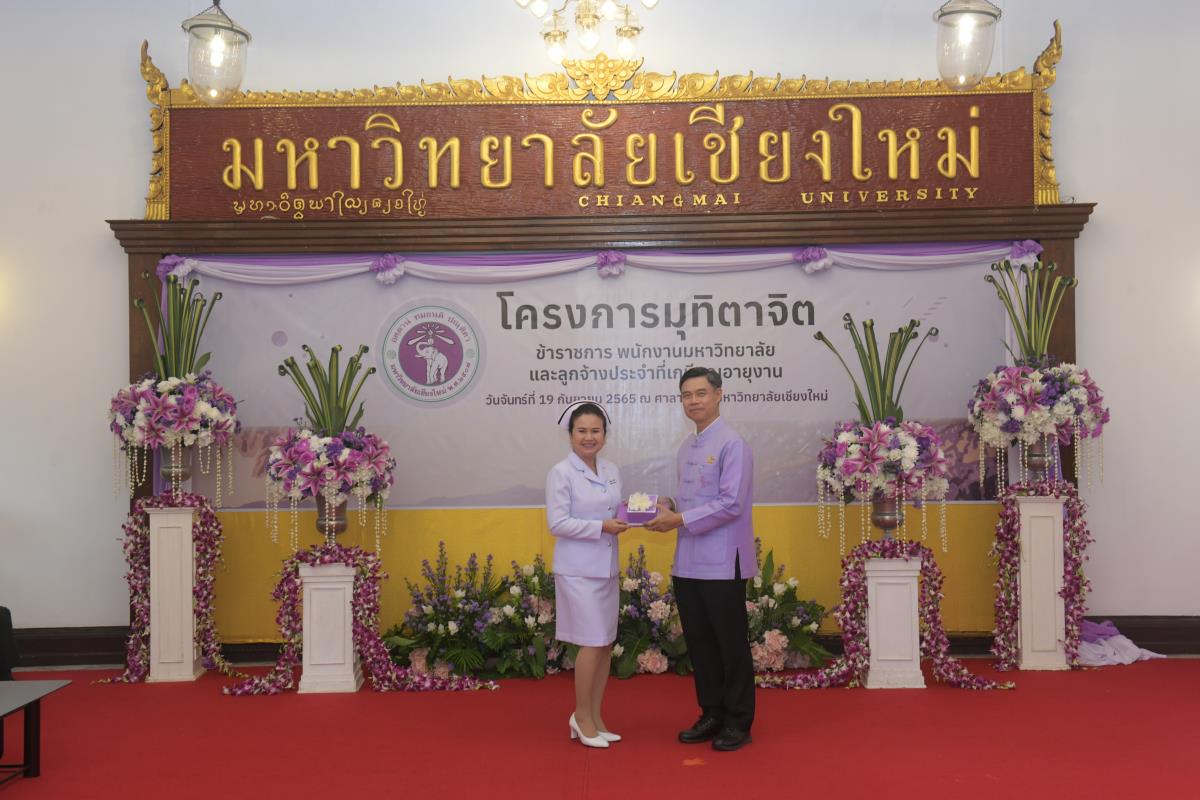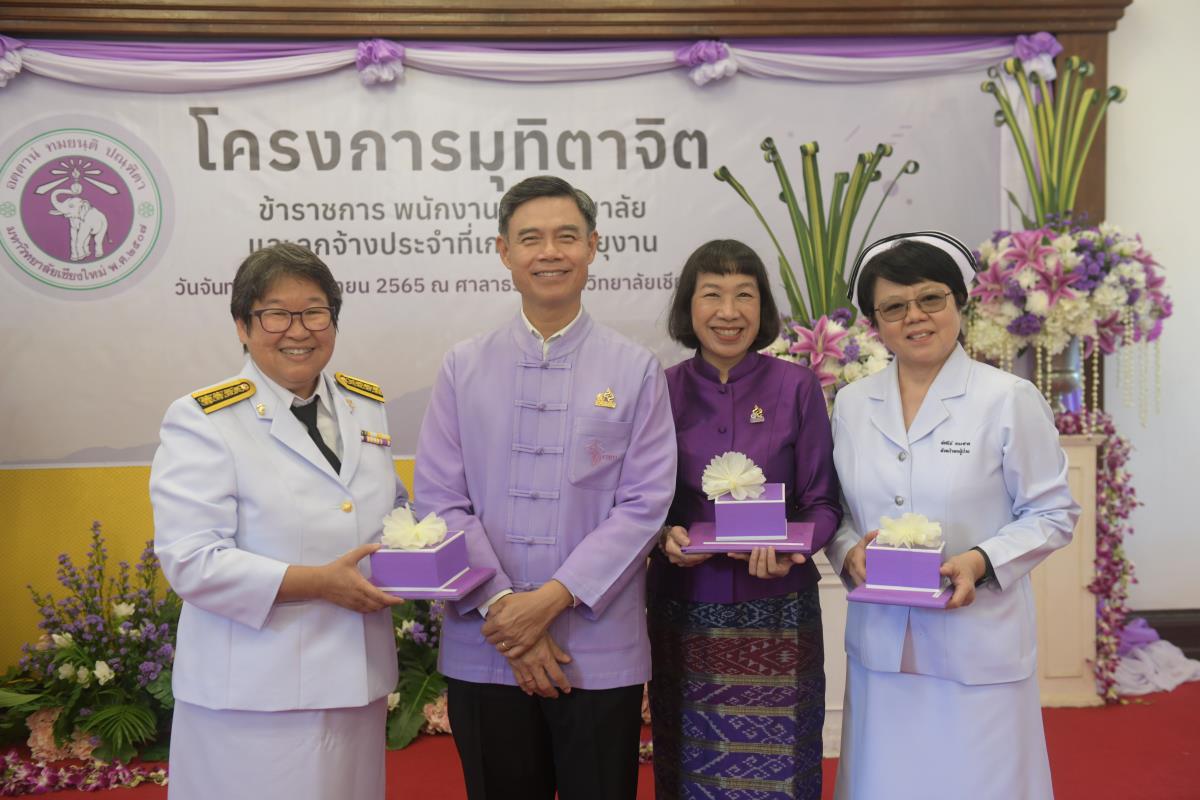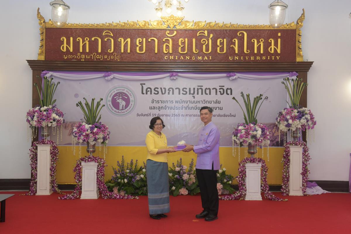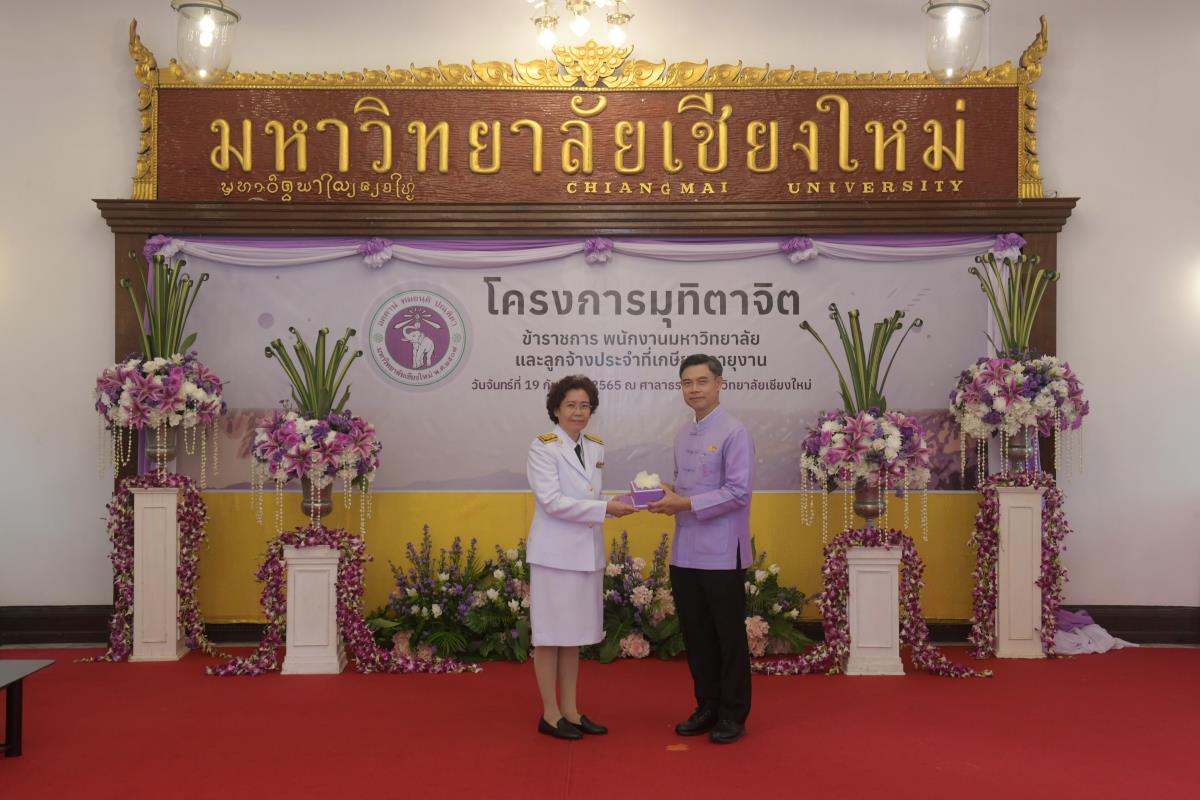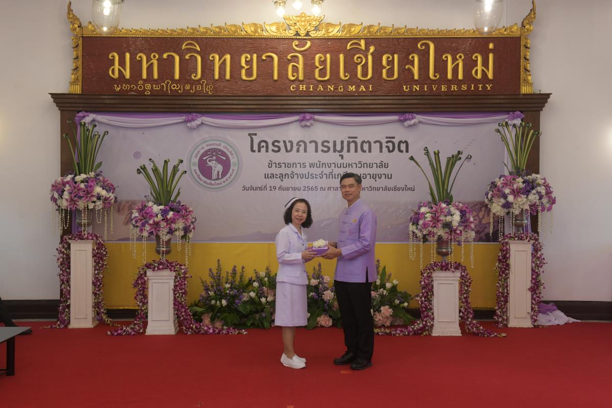 มหาวิทยาลัยเชียงใหม่ จัดงานมุทิตาจิตแก่ข้าราชการ พนักงานมหาวิทยาลัยและลูกจ้างประจำที่เกษียณอายุงานประจำปี 2565 ของมหาวิทยาลัยเชียงใหม่ จำนวน 269 คน โดยมีศาสตราจารย์ ดร.นพ.พงษ์รักษ์ ศรีบัณฑิตมงคล อธิการบดีมหาวิทยาลัยเชียงใหม่ เป็นประธานในพิธีฯ เพื่อเชิดชูเกียรติ และระลึกถึงคุณงามความดี ที่ได้อุทิศตนปฏิบัติหน้าที่ด้วยแรงกาย แรงใจ มีความมานะ อุตสาหะ พากเพียรพยายาม มุ่งมั่นสรรค์สร้างและพัฒนามหาวิทยาลัยเชียงใหม่ตลอดมา ณ ศาลาธรรม มหาวิทยาลัยเชียงใหม่ เมื่อวันจันทร์ที่ 19 กันยายน พ.ศ. 2565