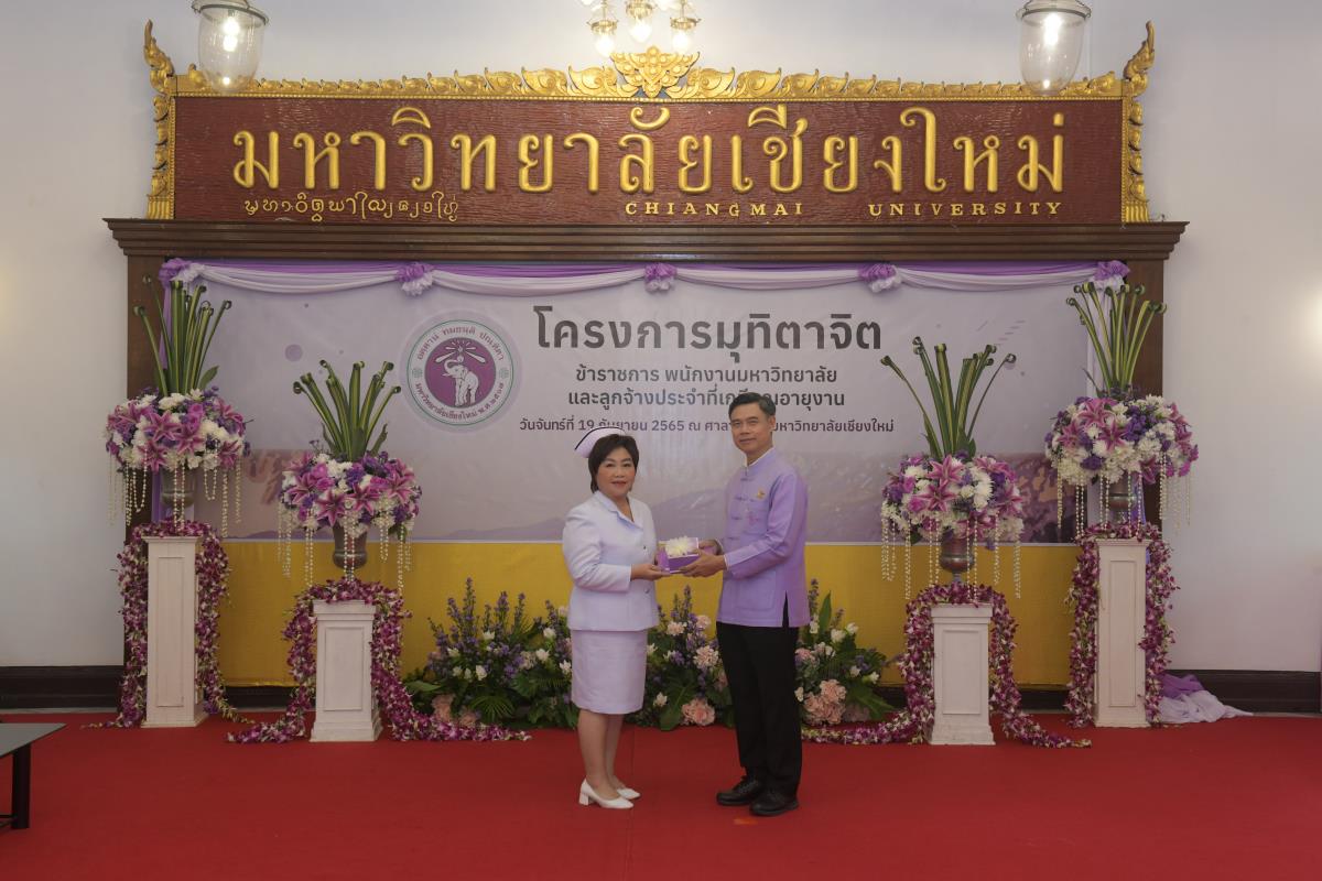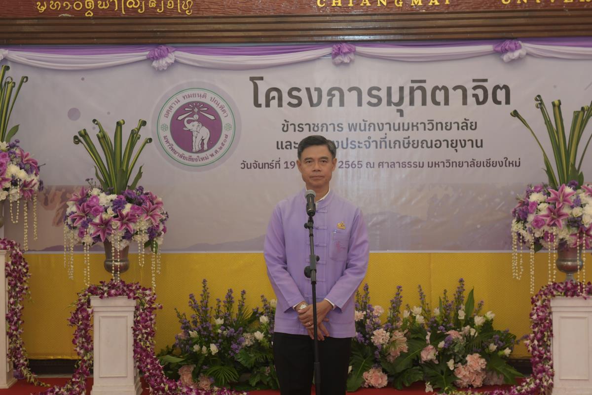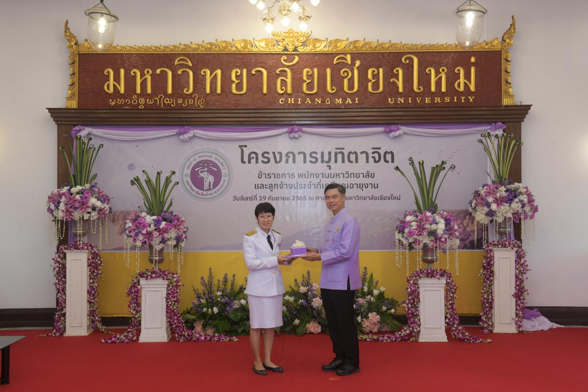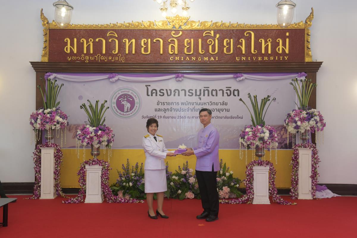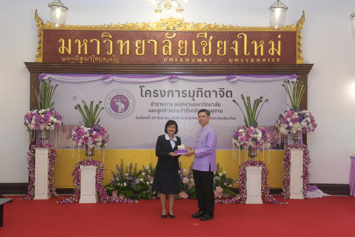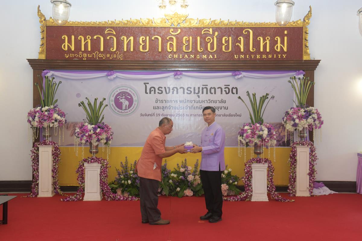 มหาวิทยาลัยเชียงใหม่ จัดงานมุทิตาจิตแก่ข้าราชการ พนักงานมหาวิทยาลัยและลูกจ้างประจำที่เกษียณอายุงานประจำปี 2565 ของมหาวิทยาลัยเชียงใหม่ จำนวน 269 คน โดยมีศาสตราจารย์ ดร.นพ.พงษ์รักษ์ ศรีบัณฑิตมงคล อธิการบดีมหาวิทยาลัยเชียงใหม่ เป็นประธานในพิธีฯ เพื่อเชิดชูเกียรติ และระลึกถึงคุณงามความดี ที่ได้อุทิศตนปฏิบัติหน้าที่ด้วยแรงกาย แรงใจ มีความมานะ อุตสาหะ พากเพียรพยายาม มุ่งมั่นสรรค์สร้างและพัฒนามหาวิทยาลัยเชียงใหม่ตลอดมา ณ ศาลาธรรม มหาวิทยาลัยเชียงใหม่ เมื่อวันจันทร์ที่ 19 กันยายน พ.ศ. 2565