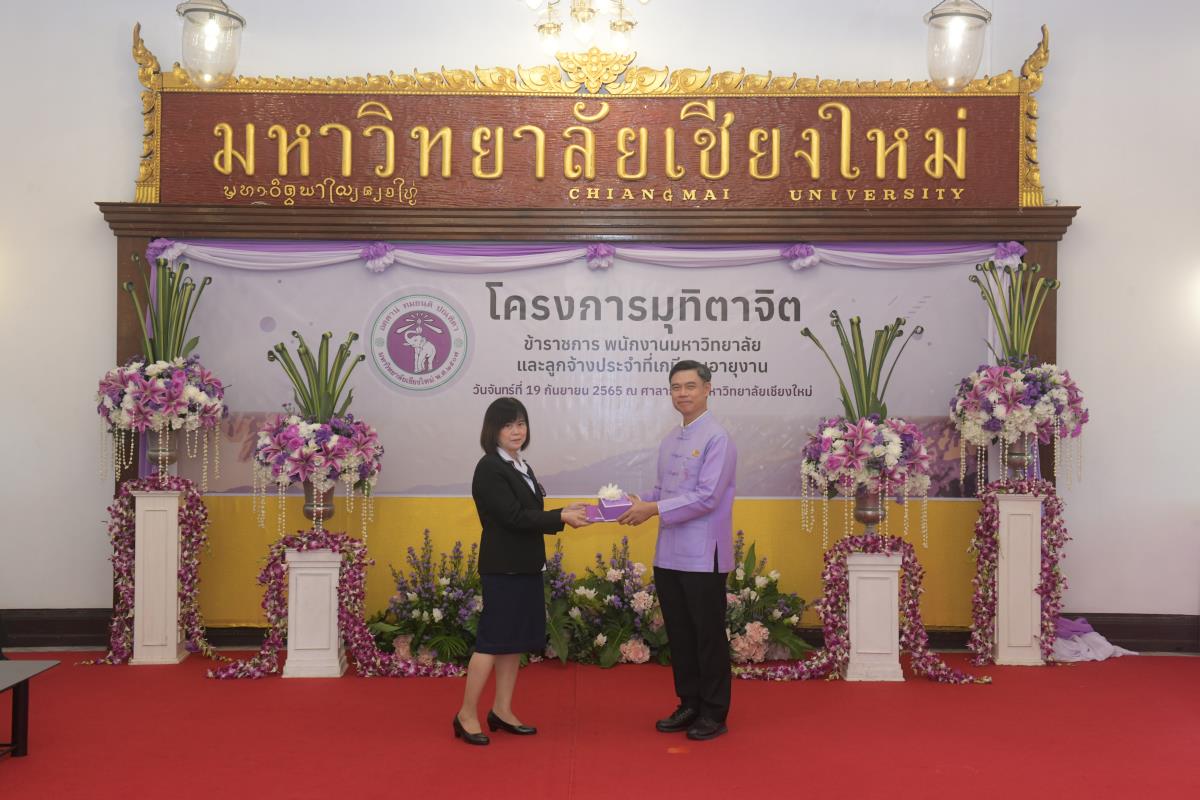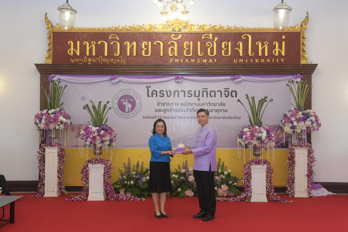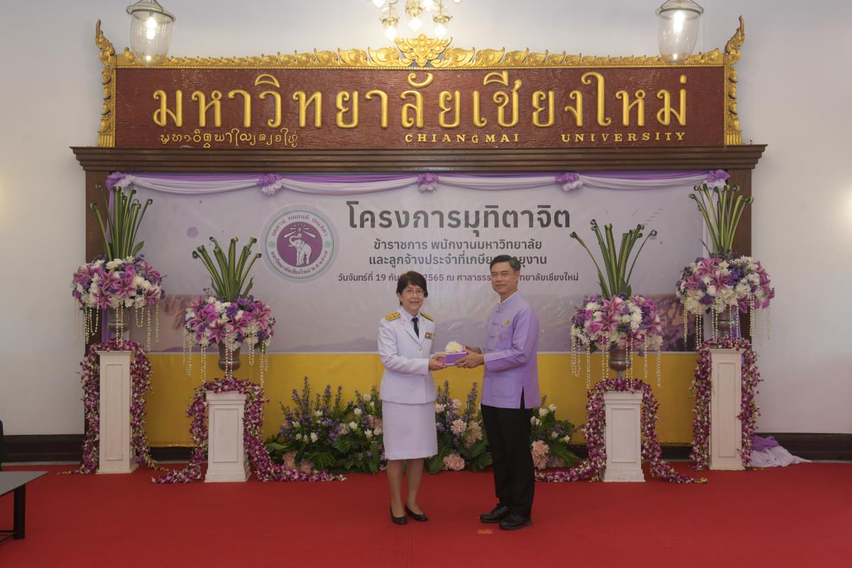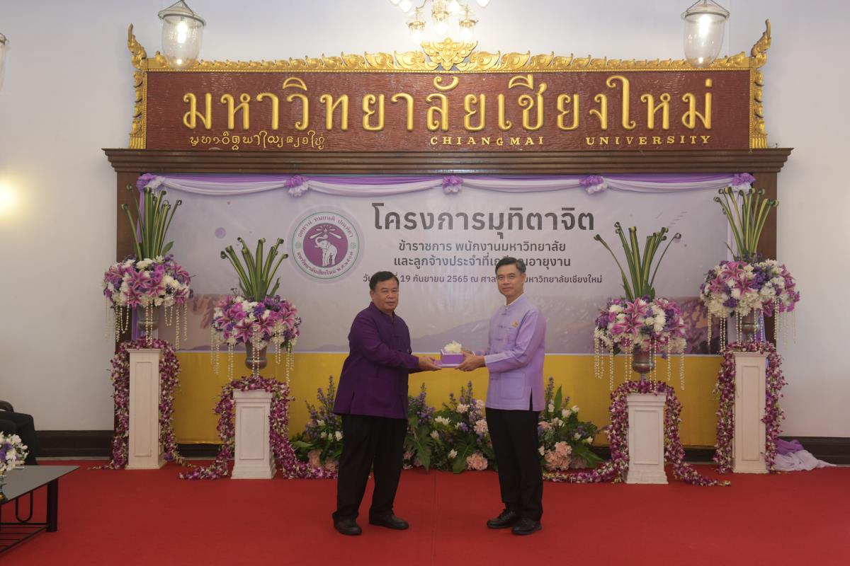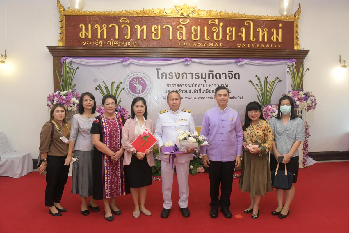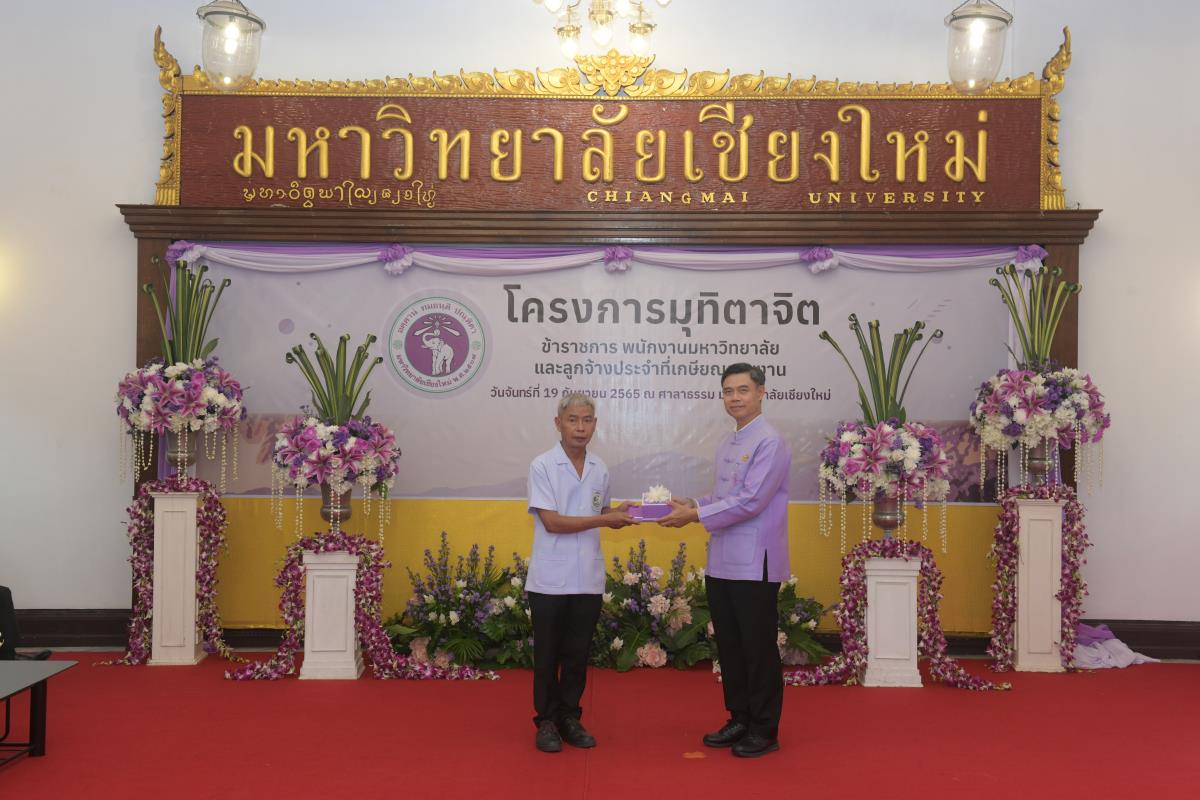 มหาวิทยาลัยเชียงใหม่ จัดงานมุทิตาจิตแก่ข้าราชการ พนักงานมหาวิทยาลัยและลูกจ้างประจำที่เกษียณอายุงานประจำปี 2565 ของมหาวิทยาลัยเชียงใหม่ จำนวน 269 คน โดยมีศาสตราจารย์ ดร.นพ.พงษ์รักษ์ ศรีบัณฑิตมงคล อธิการบดีมหาวิทยาลัยเชียงใหม่ เป็นประธานในพิธีฯ เพื่อเชิดชูเกียรติ และระลึกถึงคุณงามความดี ที่ได้อุทิศตนปฏิบัติหน้าที่ด้วยแรงกาย แรงใจ มีความมานะ อุตสาหะ พากเพียรพยายาม มุ่งมั่นสรรค์สร้างและพัฒนามหาวิทยาลัยเชียงใหม่ตลอดมา ณ ศาลาธรรม มหาวิทยาลัยเชียงใหม่ เมื่อวันจันทร์ที่ 19 กันยายน พ.ศ. 2565