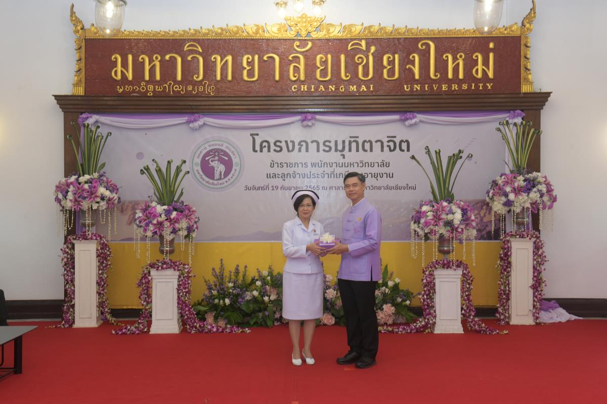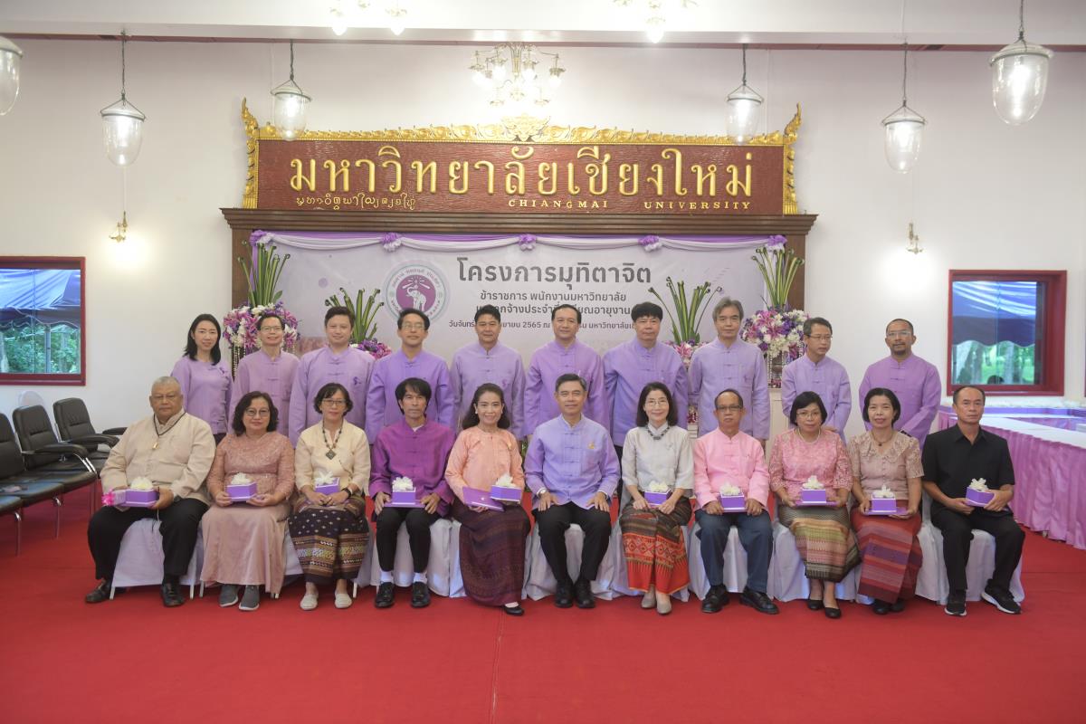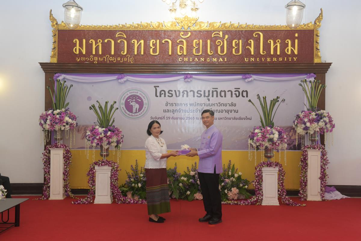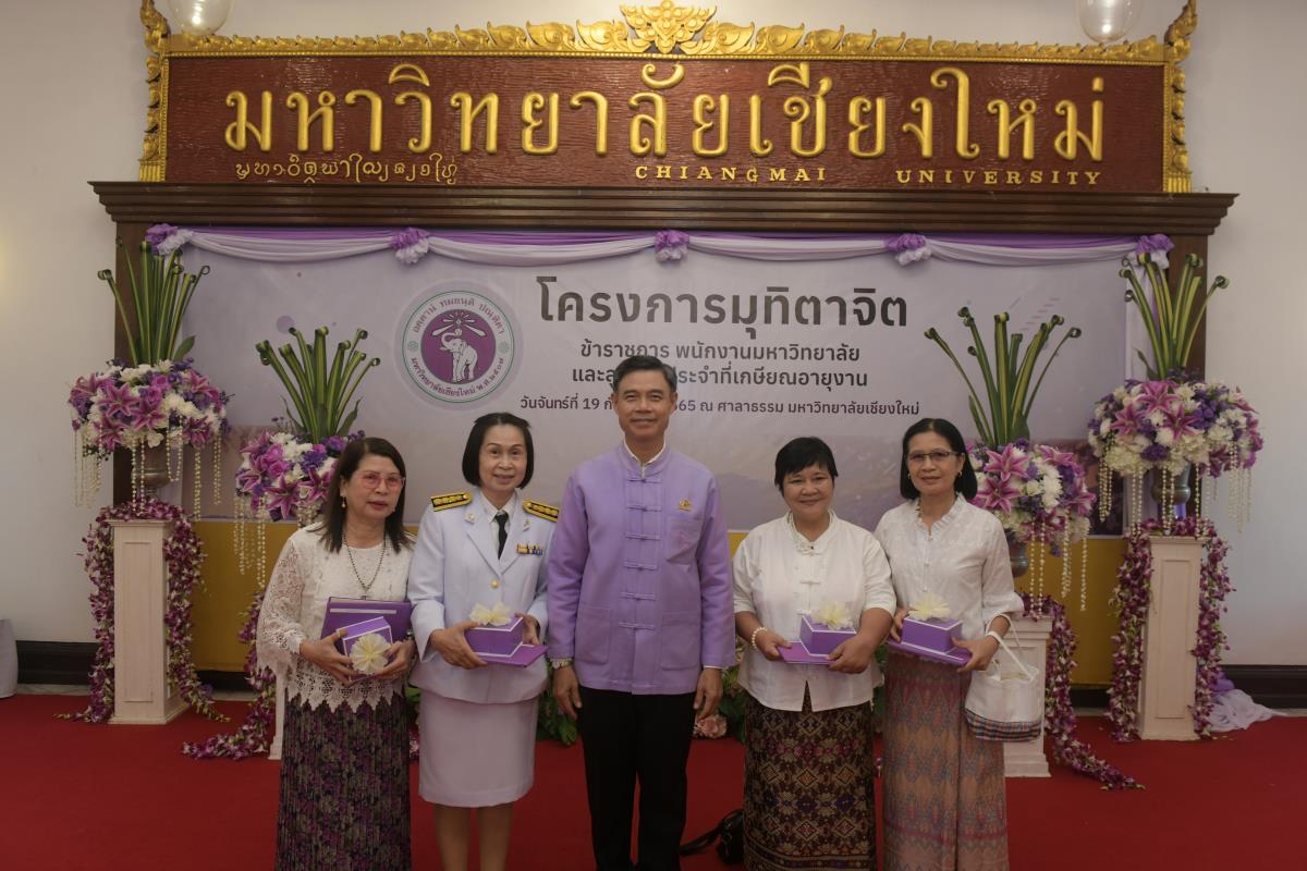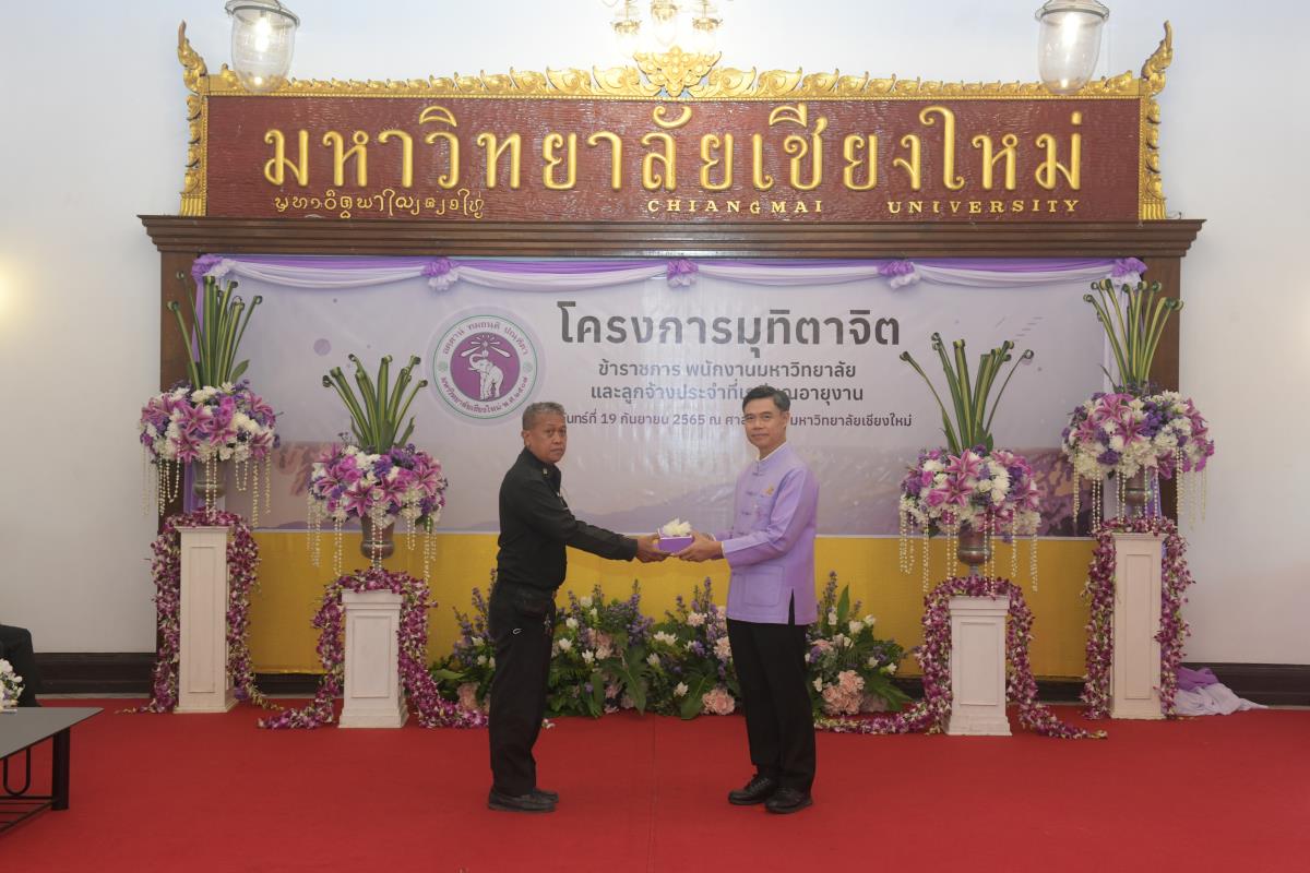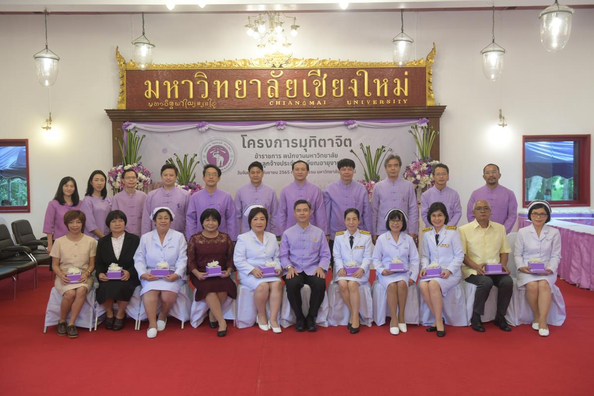 มหาวิทยาลัยเชียงใหม่ จัดงานมุทิตาจิตแก่ข้าราชการ พนักงานมหาวิทยาลัยและลูกจ้างประจำที่เกษียณอายุงานประจำปี 2565 ของมหาวิทยาลัยเชียงใหม่ จำนวน 269 คน โดยมีศาสตราจารย์ ดร.นพ.พงษ์รักษ์ ศรีบัณฑิตมงคล อธิการบดีมหาวิทยาลัยเชียงใหม่ เป็นประธานในพิธีฯ เพื่อเชิดชูเกียรติ และระลึกถึงคุณงามความดี ที่ได้อุทิศตนปฏิบัติหน้าที่ด้วยแรงกาย แรงใจ มีความมานะ อุตสาหะ พากเพียรพยายาม มุ่งมั่นสรรค์สร้างและพัฒนามหาวิทยาลัยเชียงใหม่ตลอดมา ณ ศาลาธรรม มหาวิทยาลัยเชียงใหม่ เมื่อวันจันทร์ที่ 19 กันยายน พ.ศ. 2565