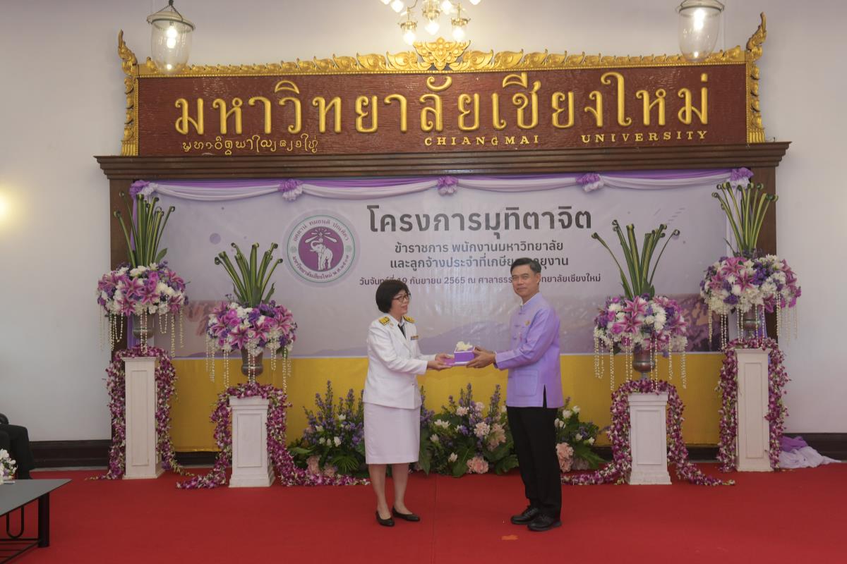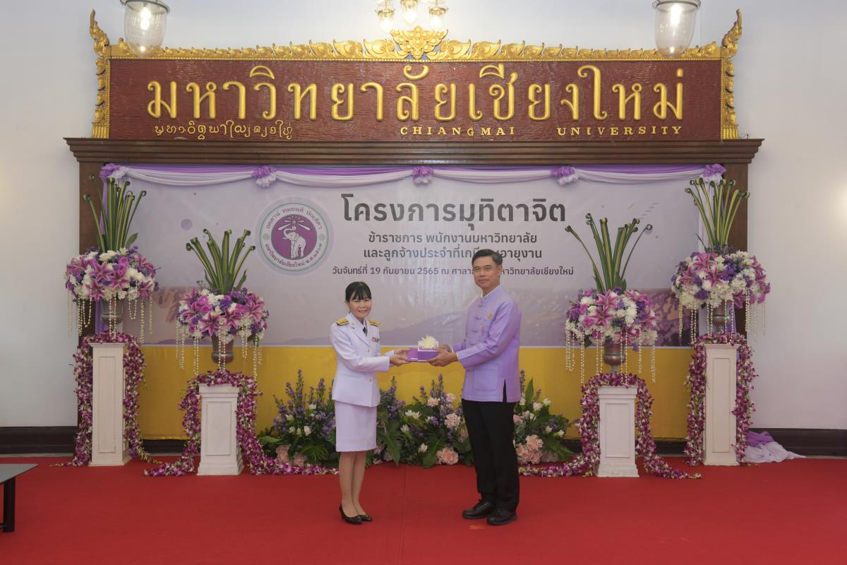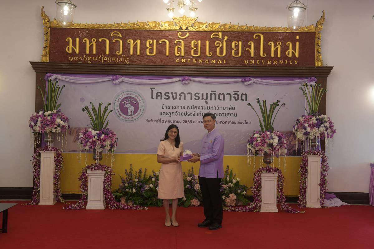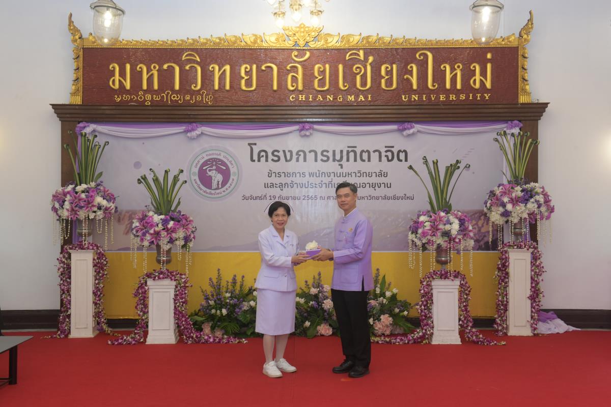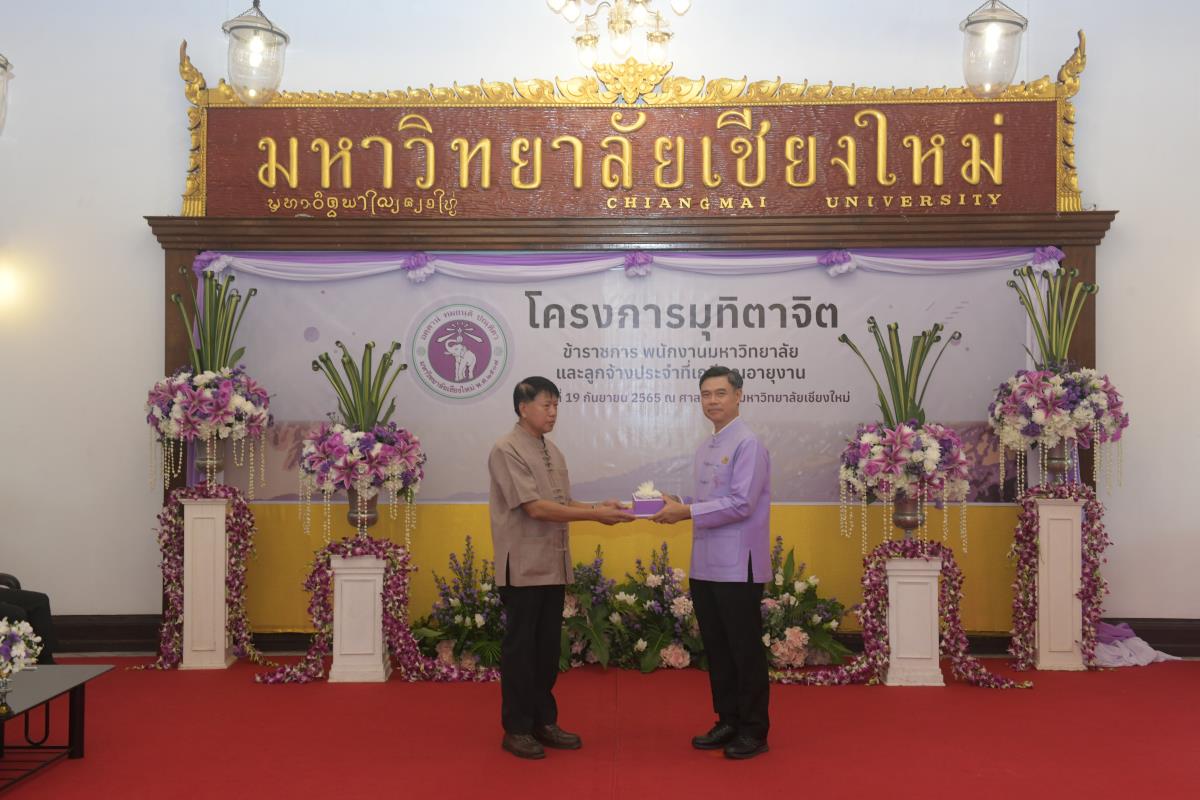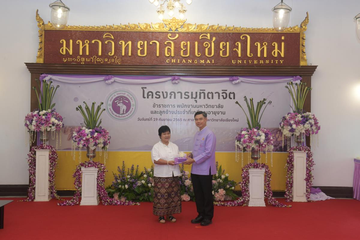 มหาวิทยาลัยเชียงใหม่ จัดงานมุทิตาจิตแก่ข้าราชการ พนักงานมหาวิทยาลัยและลูกจ้างประจำที่เกษียณอายุงานประจำปี 2565 ของมหาวิทยาลัยเชียงใหม่ จำนวน 269 คน โดยมีศาสตราจารย์ ดร.นพ.พงษ์รักษ์ ศรีบัณฑิตมงคล อธิการบดีมหาวิทยาลัยเชียงใหม่ เป็นประธานในพิธีฯ เพื่อเชิดชูเกียรติ และระลึกถึงคุณงามความดี ที่ได้อุทิศตนปฏิบัติหน้าที่ด้วยแรงกาย แรงใจ มีความมานะ อุตสาหะ พากเพียรพยายาม มุ่งมั่นสรรค์สร้างและพัฒนามหาวิทยาลัยเชียงใหม่ตลอดมา ณ ศาลาธรรม มหาวิทยาลัยเชียงใหม่ เมื่อวันจันทร์ที่ 19 กันยายน พ.ศ. 2565