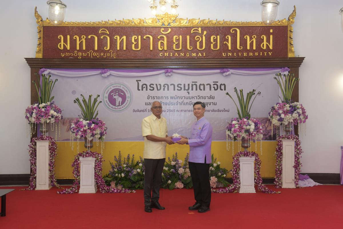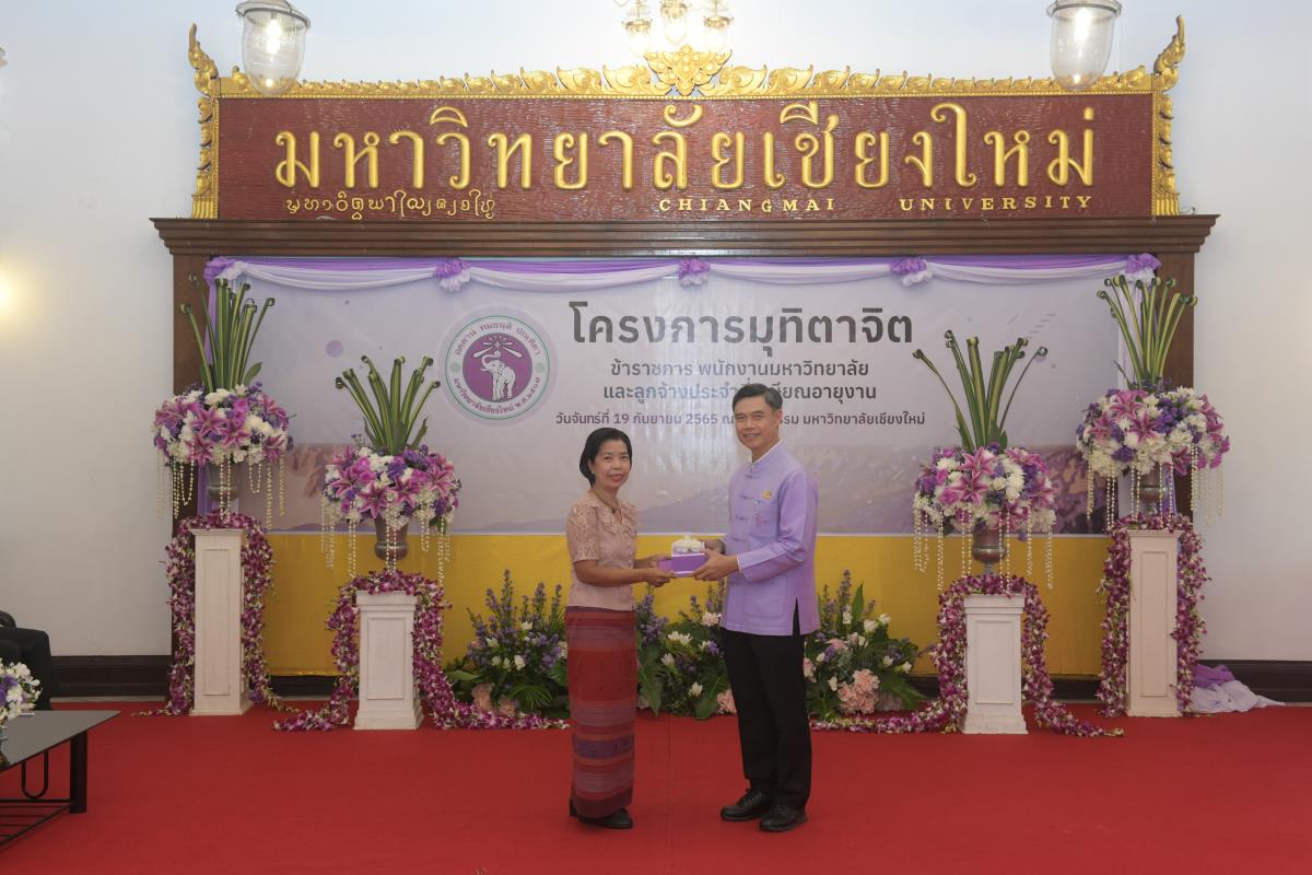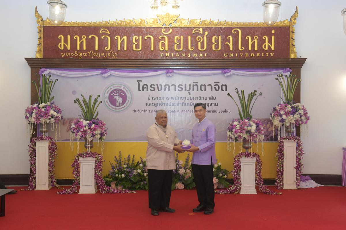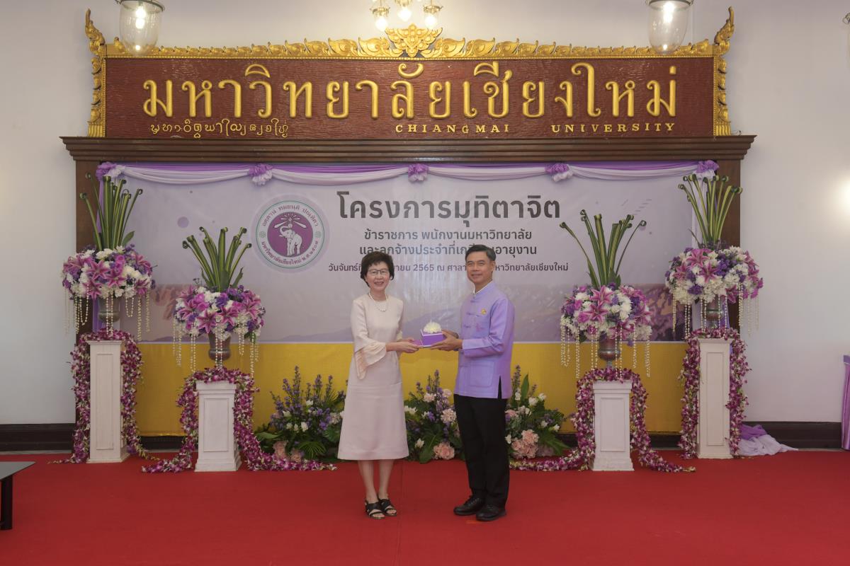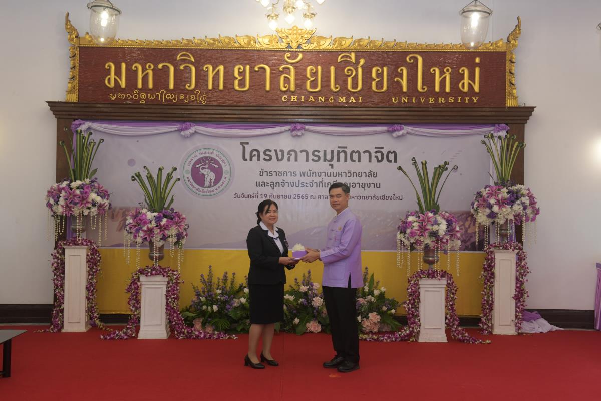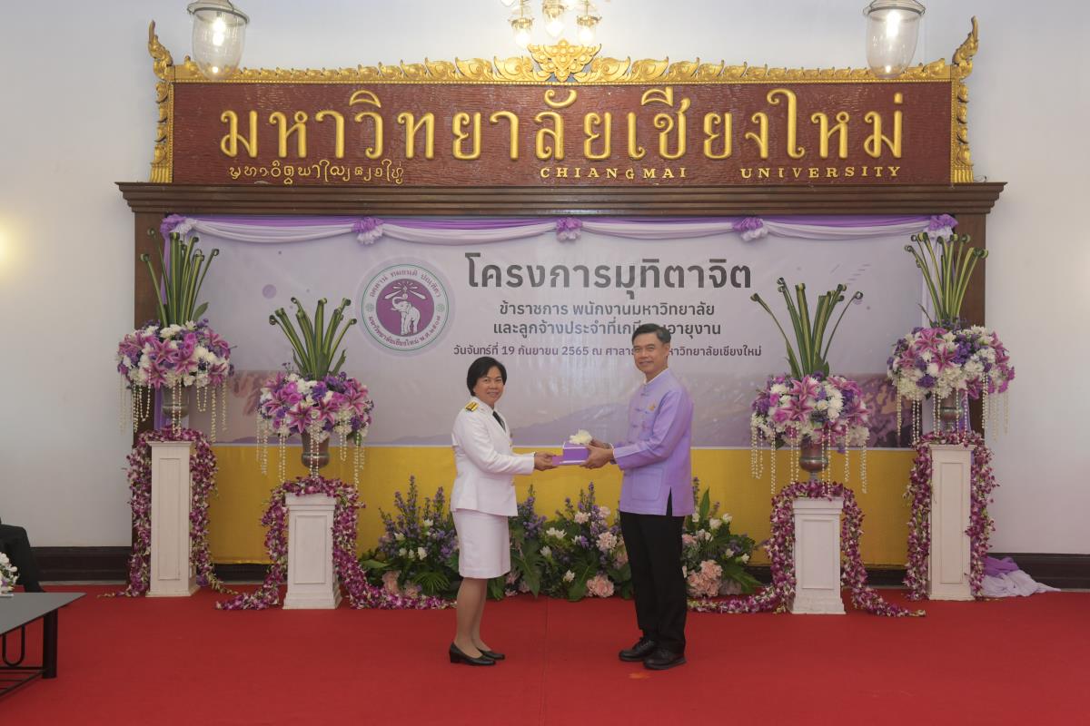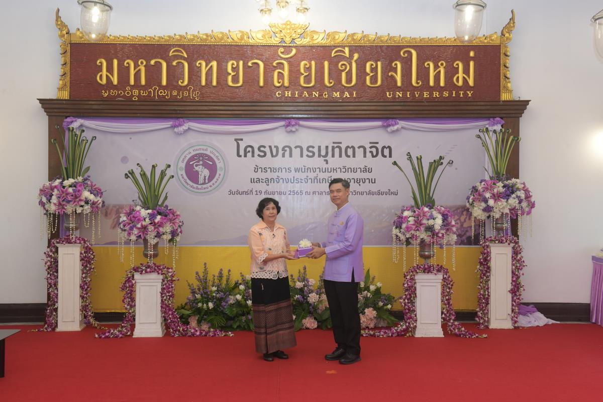 มหาวิทยาลัยเชียงใหม่ จัดงานมุทิตาจิตแก่ข้าราชการ พนักงานมหาวิทยาลัยและลูกจ้างประจำที่เกษียณอายุงานประจำปี 2565 ของมหาวิทยาลัยเชียงใหม่ จำนวน 269 คน โดยมีศาสตราจารย์ ดร.นพ.พงษ์รักษ์ ศรีบัณฑิตมงคล อธิการบดีมหาวิทยาลัยเชียงใหม่ เป็นประธานในพิธีฯ เพื่อเชิดชูเกียรติ และระลึกถึงคุณงามความดี ที่ได้อุทิศตนปฏิบัติหน้าที่ด้วยแรงกาย แรงใจ มีความมานะ อุตสาหะ พากเพียรพยายาม มุ่งมั่นสรรค์สร้างและพัฒนามหาวิทยาลัยเชียงใหม่ตลอดมา ณ ศาลาธรรม มหาวิทยาลัยเชียงใหม่ เมื่อวันจันทร์ที่ 19 กันยายน พ.ศ. 2565