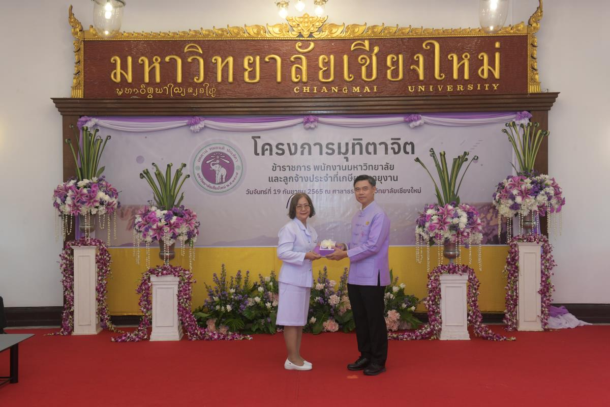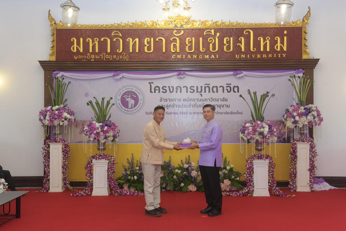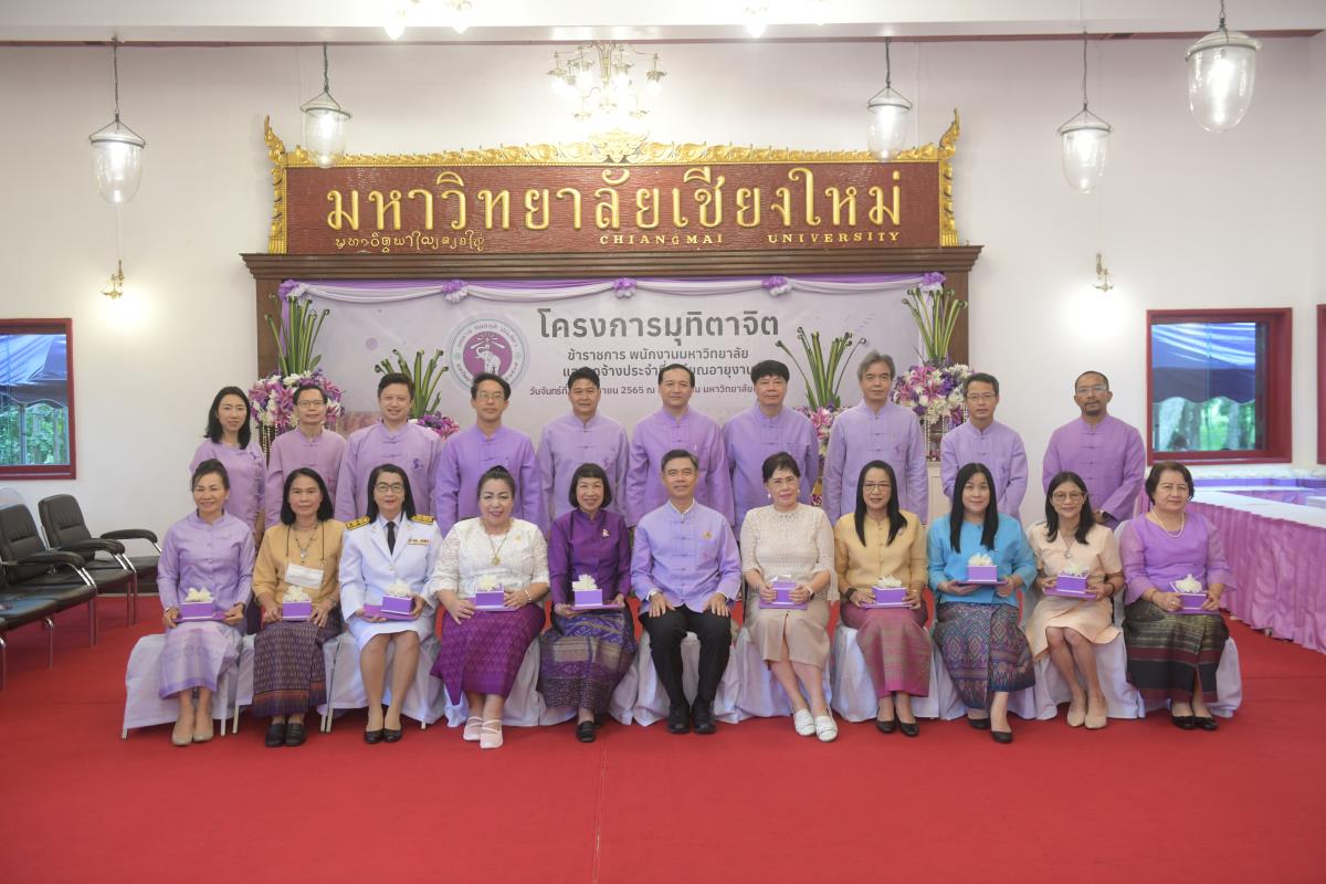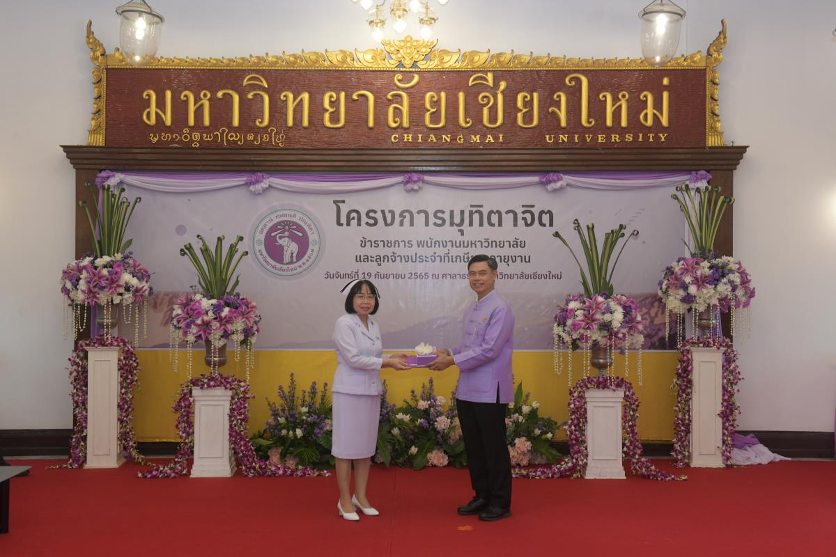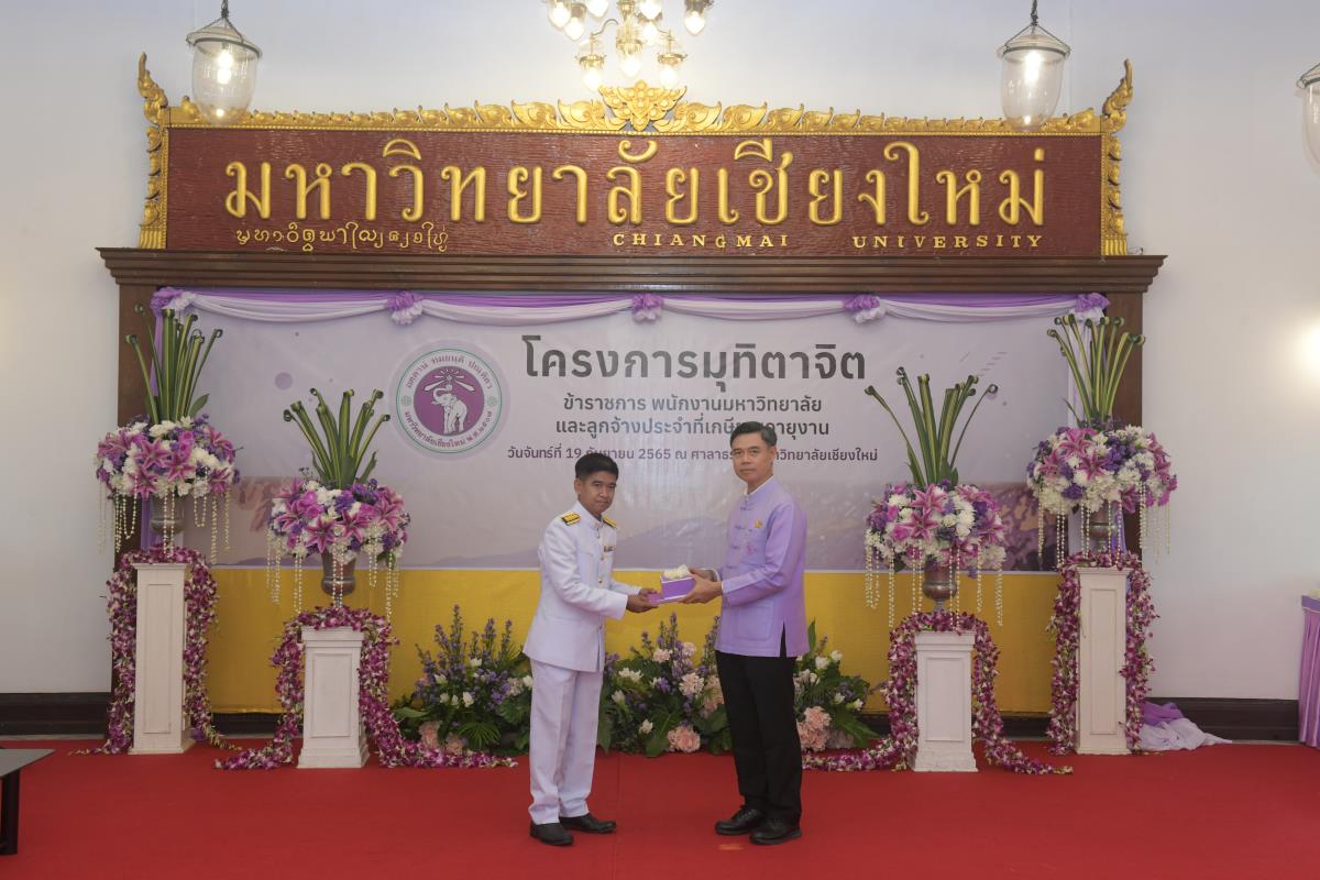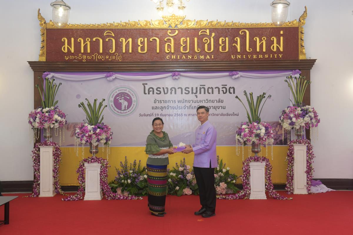 มหาวิทยาลัยเชียงใหม่ จัดงานมุทิตาจิตแก่ข้าราชการ พนักงานมหาวิทยาลัยและลูกจ้างประจำที่เกษียณอายุงานประจำปี 2565 ของมหาวิทยาลัยเชียงใหม่ จำนวน 269 คน โดยมีศาสตราจารย์ ดร.นพ.พงษ์รักษ์ ศรีบัณฑิตมงคล อธิการบดีมหาวิทยาลัยเชียงใหม่ เป็นประธานในพิธีฯ เพื่อเชิดชูเกียรติ และระลึกถึงคุณงามความดี ที่ได้อุทิศตนปฏิบัติหน้าที่ด้วยแรงกาย แรงใจ มีความมานะ อุตสาหะ พากเพียรพยายาม มุ่งมั่นสรรค์สร้างและพัฒนามหาวิทยาลัยเชียงใหม่ตลอดมา ณ ศาลาธรรม มหาวิทยาลัยเชียงใหม่ เมื่อวันจันทร์ที่ 19 กันยายน พ.ศ. 2565