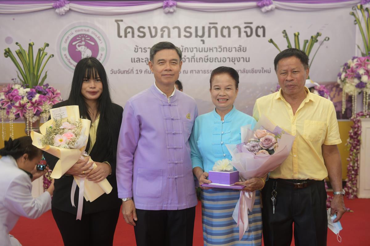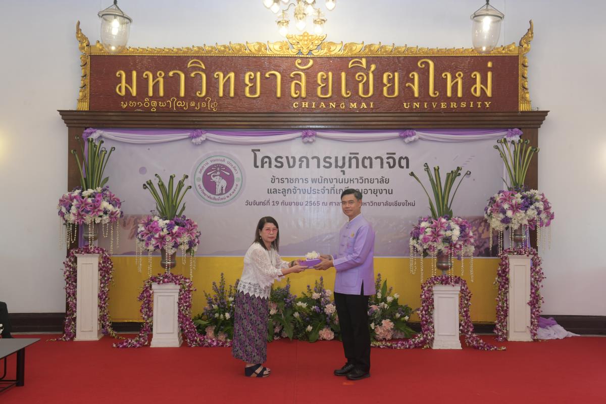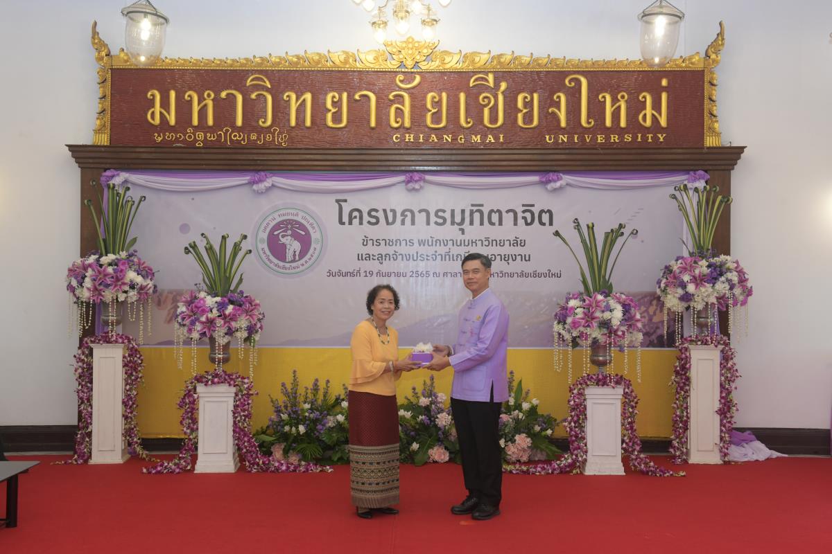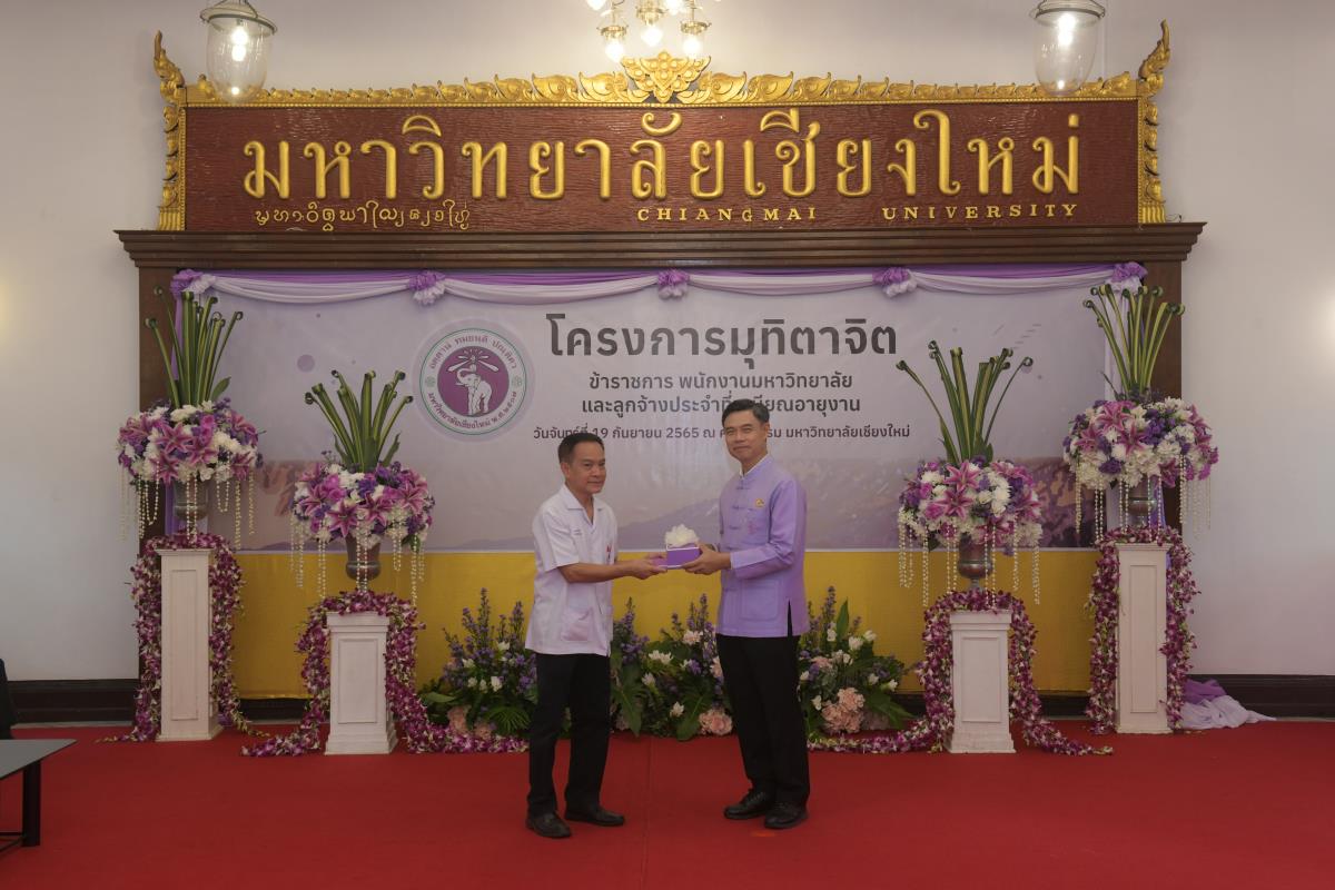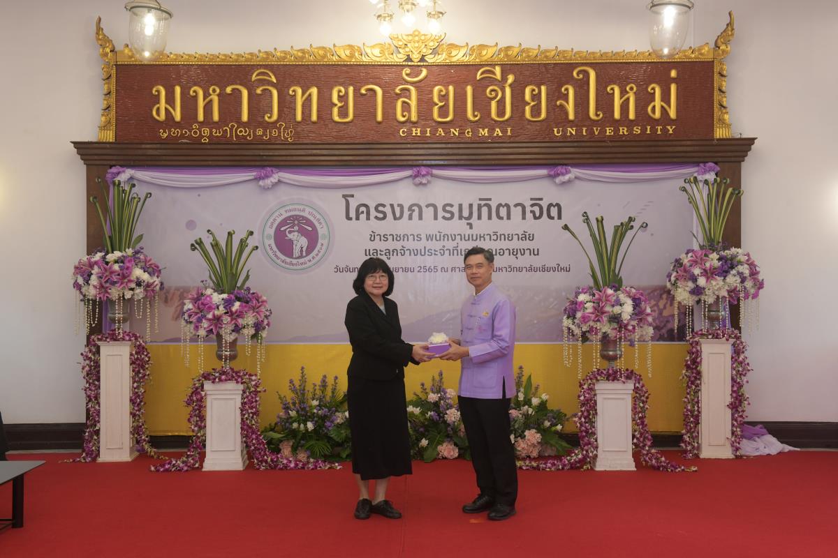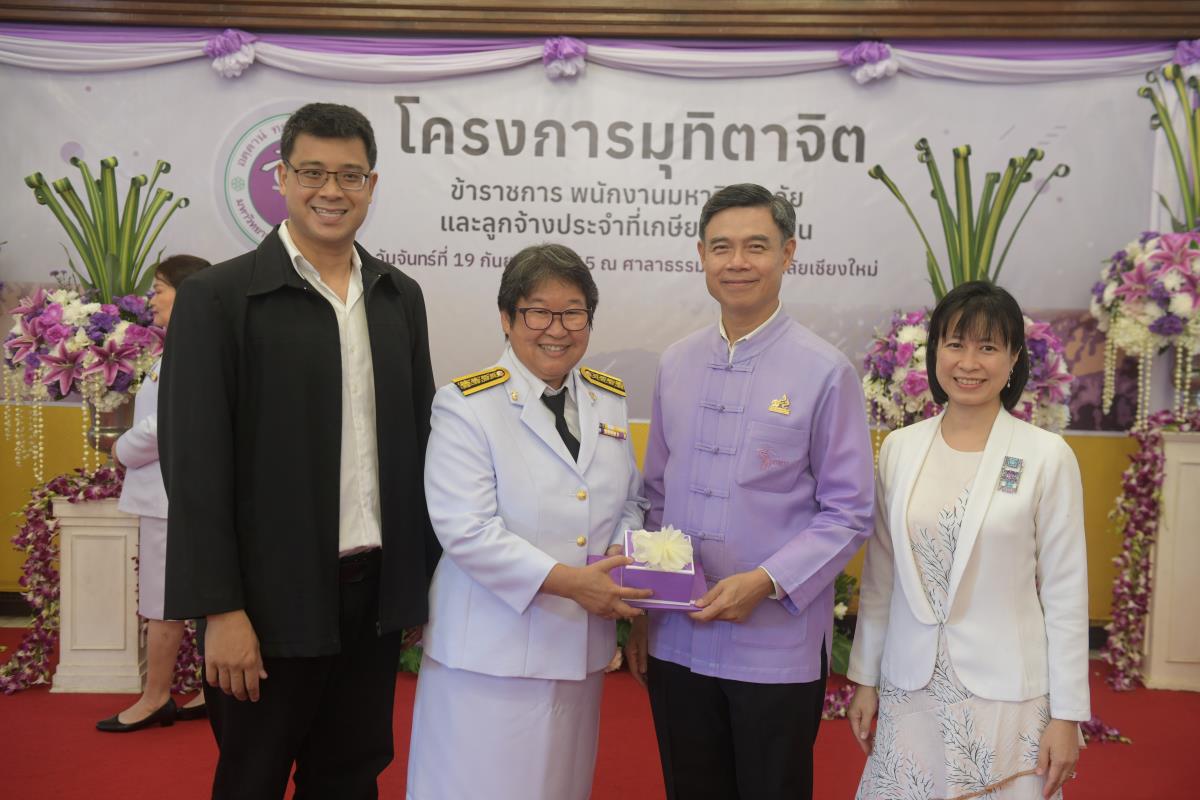 มหาวิทยาลัยเชียงใหม่ จัดงานมุทิตาจิตแก่ข้าราชการ พนักงานมหาวิทยาลัยและลูกจ้างประจำที่เกษียณอายุงานประจำปี 2565 ของมหาวิทยาลัยเชียงใหม่ จำนวน 269 คน โดยมีศาสตราจารย์ ดร.นพ.พงษ์รักษ์ ศรีบัณฑิตมงคล อธิการบดีมหาวิทยาลัยเชียงใหม่ เป็นประธานในพิธีฯ เพื่อเชิดชูเกียรติ และระลึกถึงคุณงามความดี ที่ได้อุทิศตนปฏิบัติหน้าที่ด้วยแรงกาย แรงใจ มีความมานะ อุตสาหะ พากเพียรพยายาม มุ่งมั่นสรรค์สร้างและพัฒนามหาวิทยาลัยเชียงใหม่ตลอดมา ณ ศาลาธรรม มหาวิทยาลัยเชียงใหม่ เมื่อวันจันทร์ที่ 19 กันยายน พ.ศ. 2565