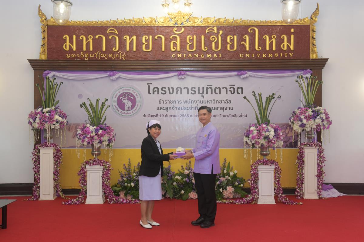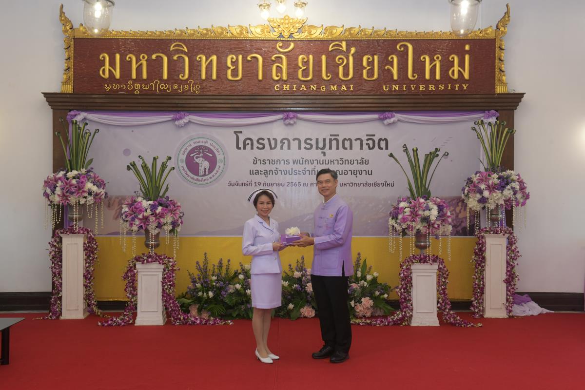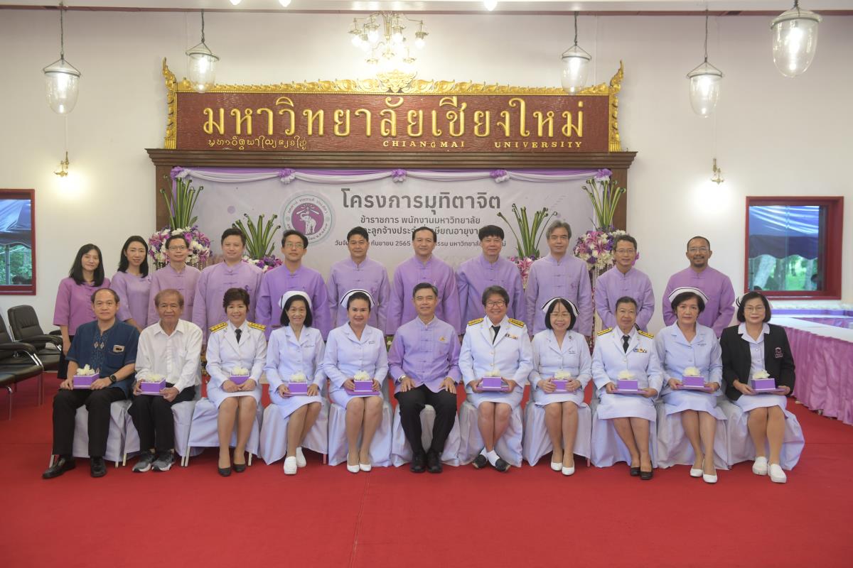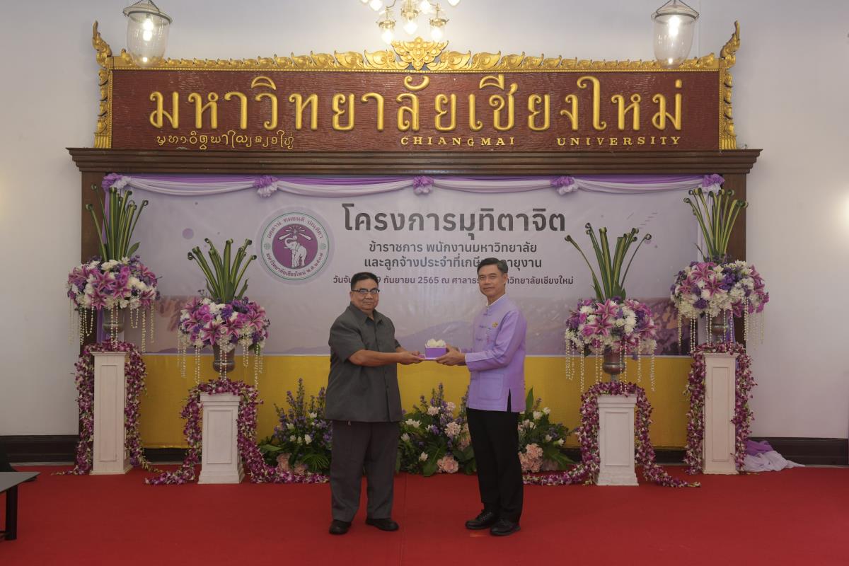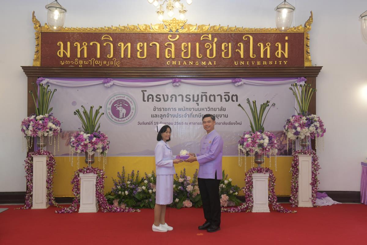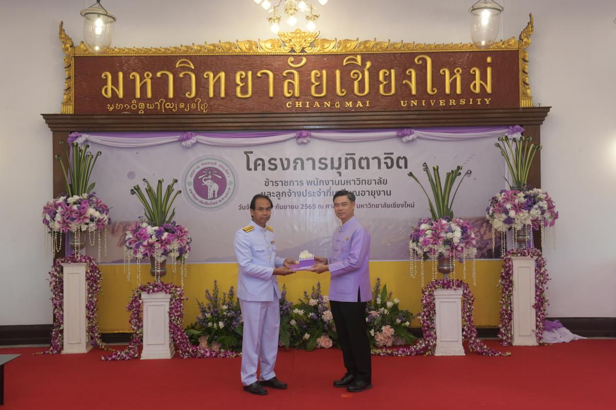 มหาวิทยาลัยเชียงใหม่ จัดงานมุทิตาจิตแก่ข้าราชการ พนักงานมหาวิทยาลัยและลูกจ้างประจำที่เกษียณอายุงานประจำปี 2565 ของมหาวิทยาลัยเชียงใหม่ จำนวน 269 คน โดยมีศาสตราจารย์ ดร.นพ.พงษ์รักษ์ ศรีบัณฑิตมงคล อธิการบดีมหาวิทยาลัยเชียงใหม่ เป็นประธานในพิธีฯ เพื่อเชิดชูเกียรติ และระลึกถึงคุณงามความดี ที่ได้อุทิศตนปฏิบัติหน้าที่ด้วยแรงกาย แรงใจ มีความมานะ อุตสาหะ พากเพียรพยายาม มุ่งมั่นสรรค์สร้างและพัฒนามหาวิทยาลัยเชียงใหม่ตลอดมา ณ ศาลาธรรม มหาวิทยาลัยเชียงใหม่ เมื่อวันจันทร์ที่ 19 กันยายน พ.ศ. 2565