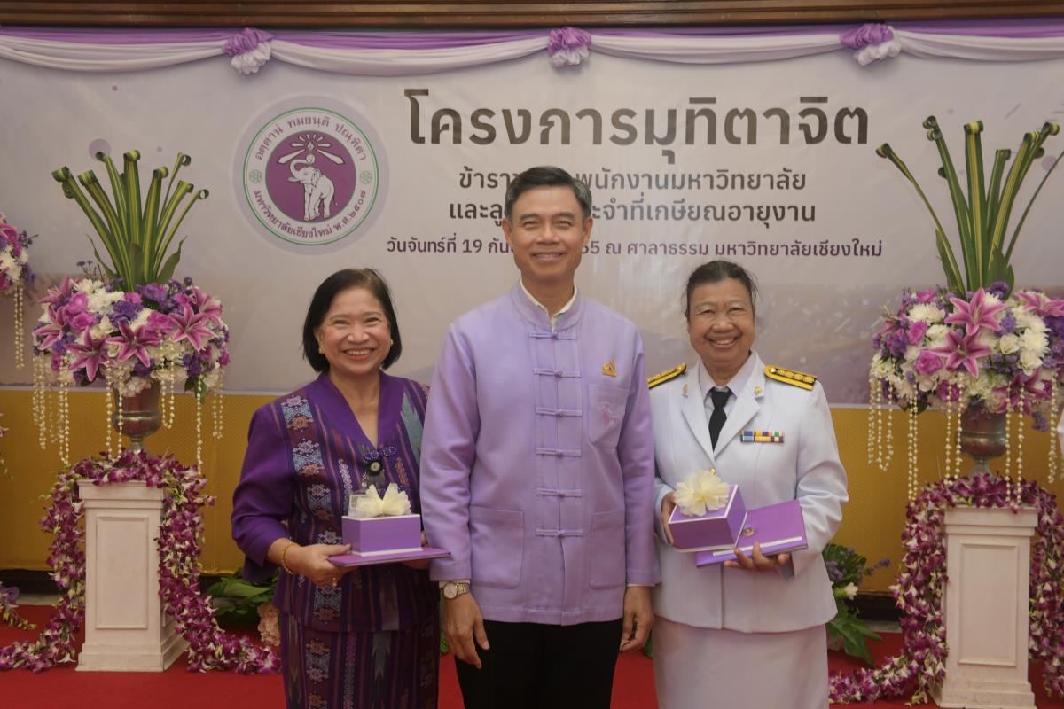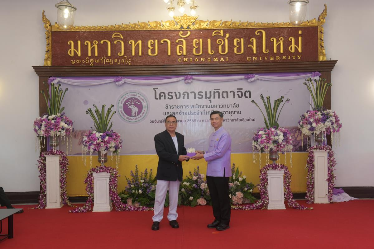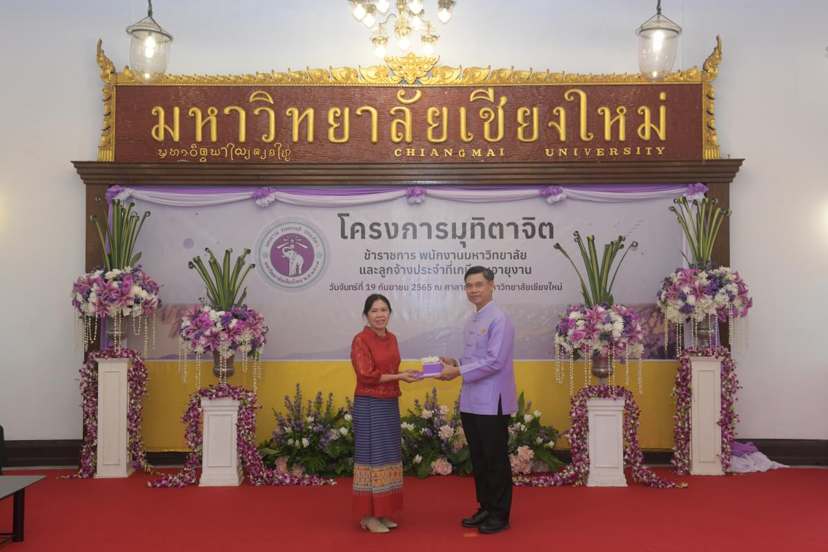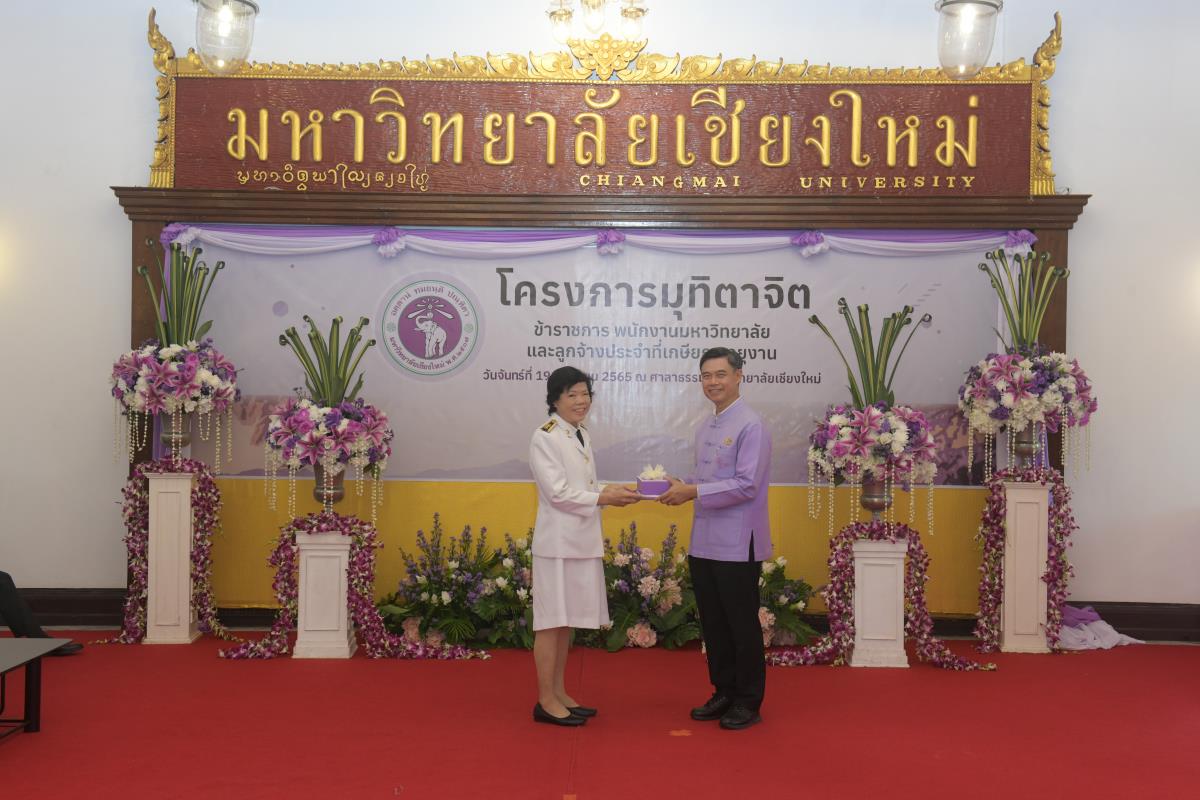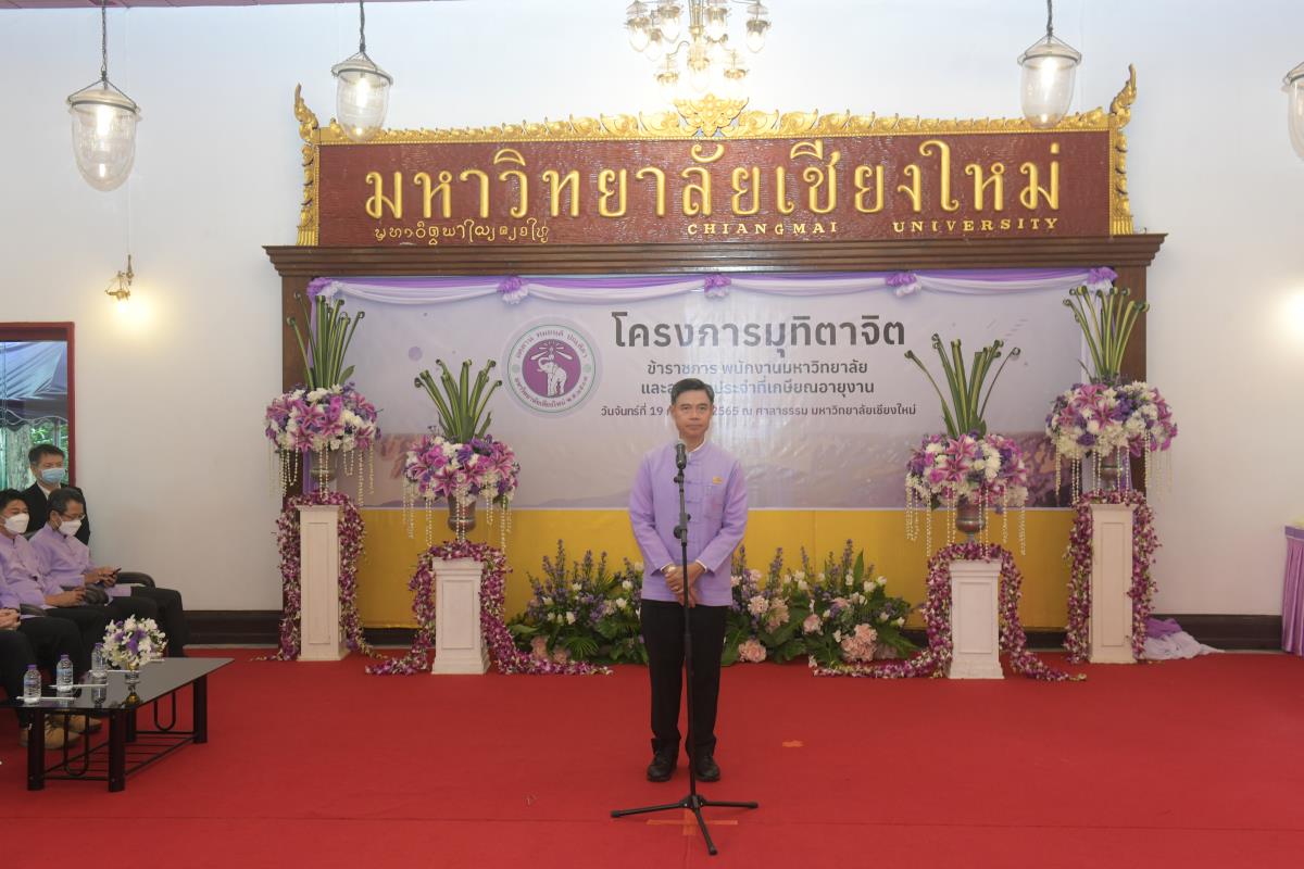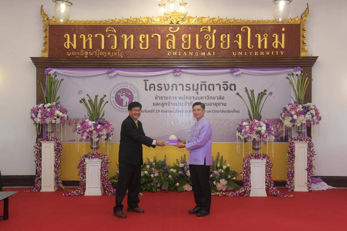 มหาวิทยาลัยเชียงใหม่ จัดงานมุทิตาจิตแก่ข้าราชการ พนักงานมหาวิทยาลัยและลูกจ้างประจำที่เกษียณอายุงานประจำปี 2565 ของมหาวิทยาลัยเชียงใหม่ จำนวน 269 คน โดยมีศาสตราจารย์ ดร.นพ.พงษ์รักษ์ ศรีบัณฑิตมงคล อธิการบดีมหาวิทยาลัยเชียงใหม่ เป็นประธานในพิธีฯ เพื่อเชิดชูเกียรติ และระลึกถึงคุณงามความดี ที่ได้อุทิศตนปฏิบัติหน้าที่ด้วยแรงกาย แรงใจ มีความมานะ อุตสาหะ พากเพียรพยายาม มุ่งมั่นสรรค์สร้างและพัฒนามหาวิทยาลัยเชียงใหม่ตลอดมา ณ ศาลาธรรม มหาวิทยาลัยเชียงใหม่ เมื่อวันจันทร์ที่ 19 กันยายน พ.ศ. 2565