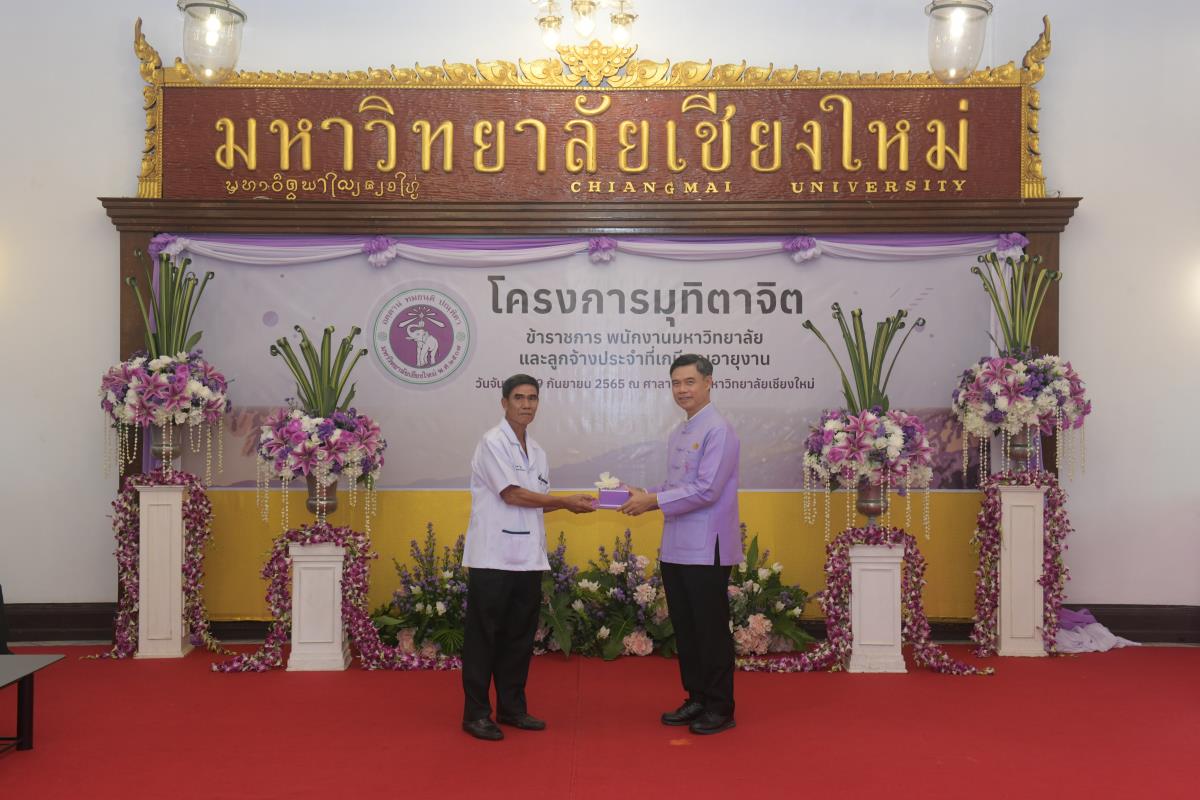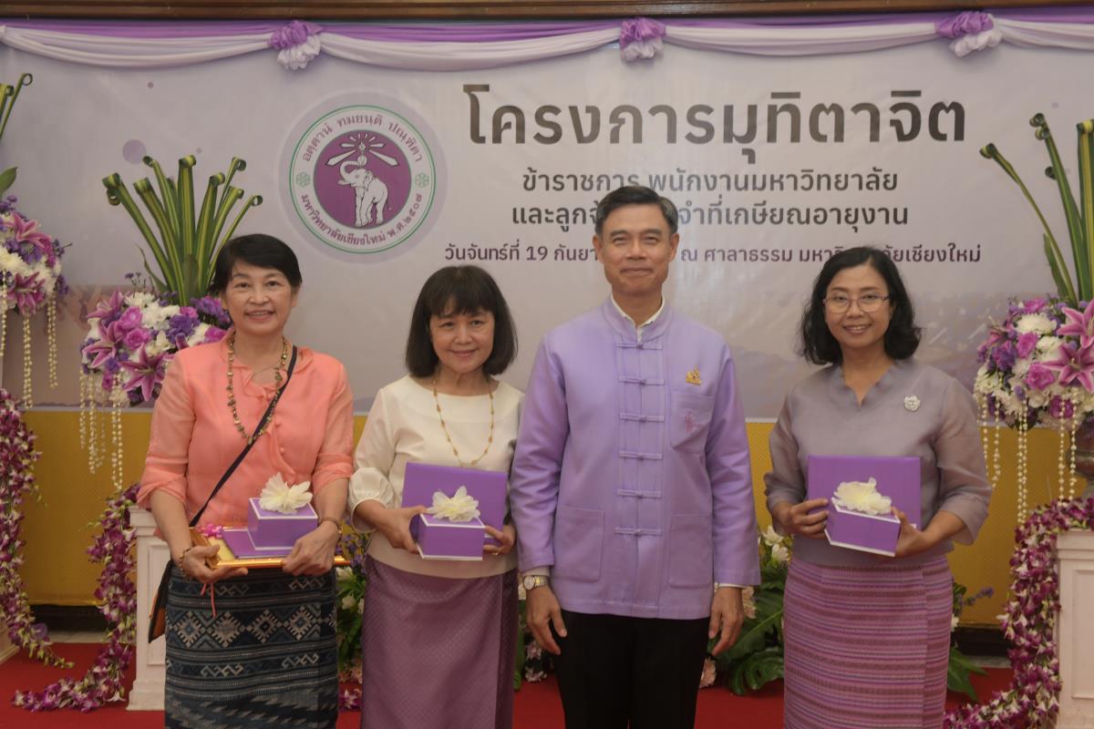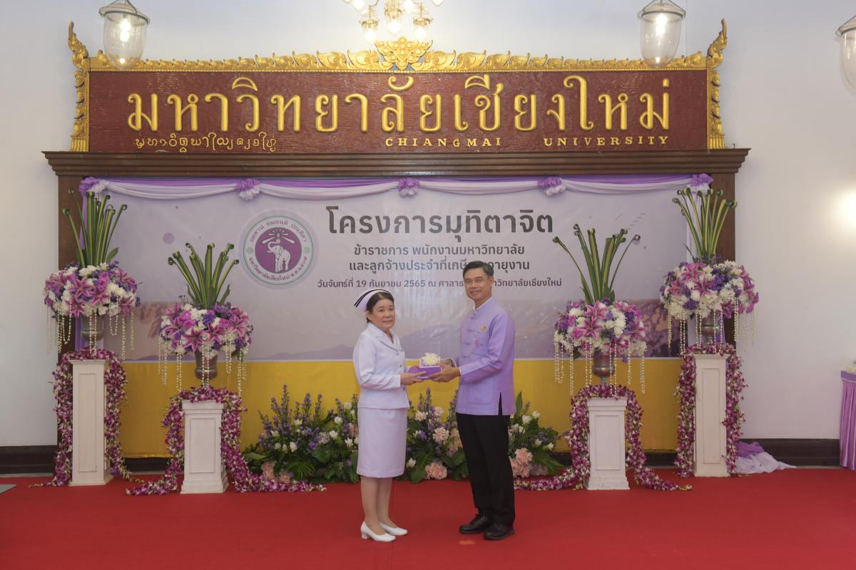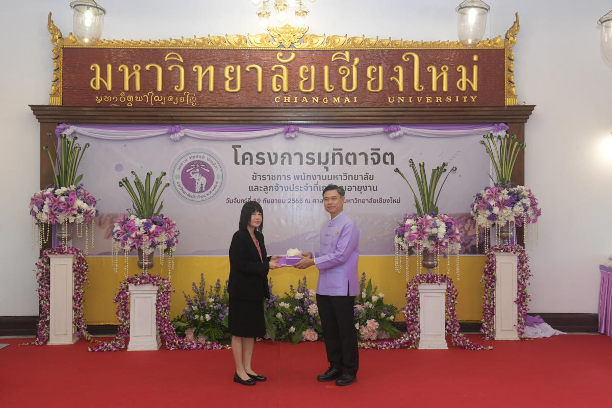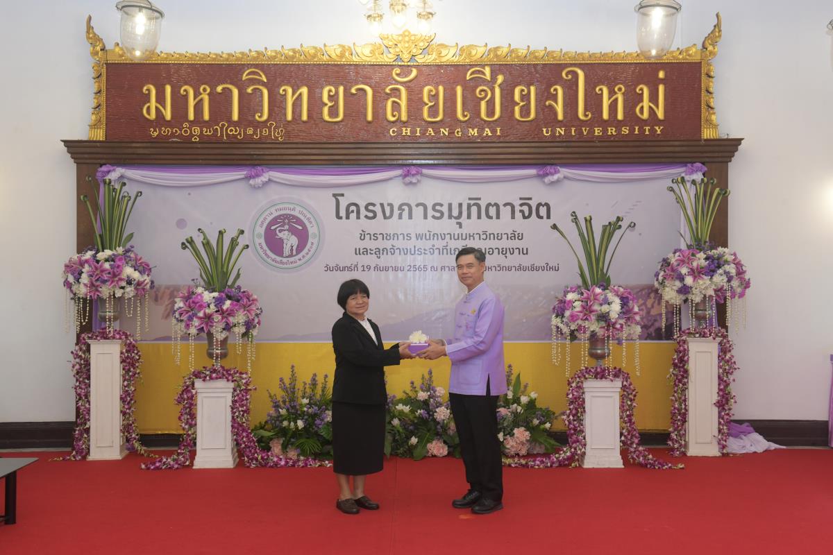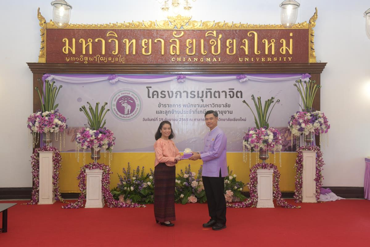 มหาวิทยาลัยเชียงใหม่ จัดงานมุทิตาจิตแก่ข้าราชการ พนักงานมหาวิทยาลัยและลูกจ้างประจำที่เกษียณอายุงานประจำปี 2565 ของมหาวิทยาลัยเชียงใหม่ จำนวน 269 คน โดยมีศาสตราจารย์ ดร.นพ.พงษ์รักษ์ ศรีบัณฑิตมงคล อธิการบดีมหาวิทยาลัยเชียงใหม่ เป็นประธานในพิธีฯ เพื่อเชิดชูเกียรติ และระลึกถึงคุณงามความดี ที่ได้อุทิศตนปฏิบัติหน้าที่ด้วยแรงกาย แรงใจ มีความมานะ อุตสาหะ พากเพียรพยายาม มุ่งมั่นสรรค์สร้างและพัฒนามหาวิทยาลัยเชียงใหม่ตลอดมา ณ ศาลาธรรม มหาวิทยาลัยเชียงใหม่ เมื่อวันจันทร์ที่ 19 กันยายน พ.ศ. 2565
