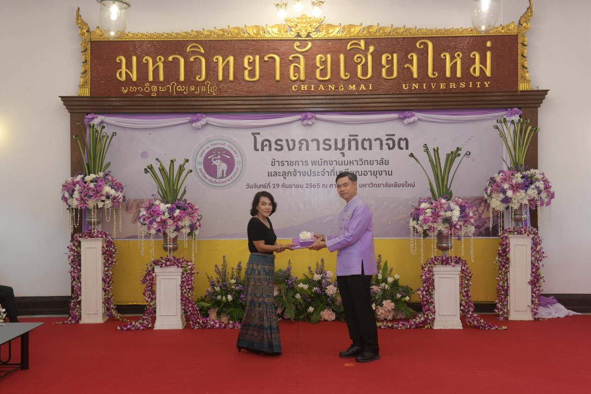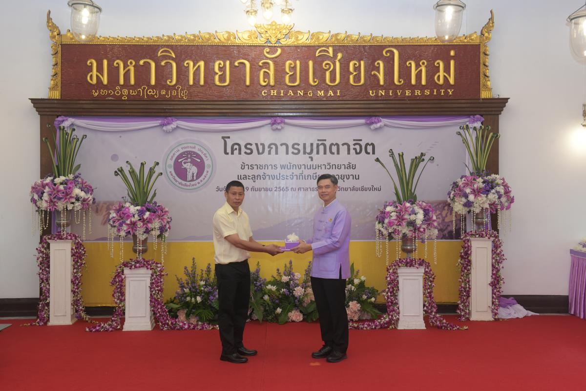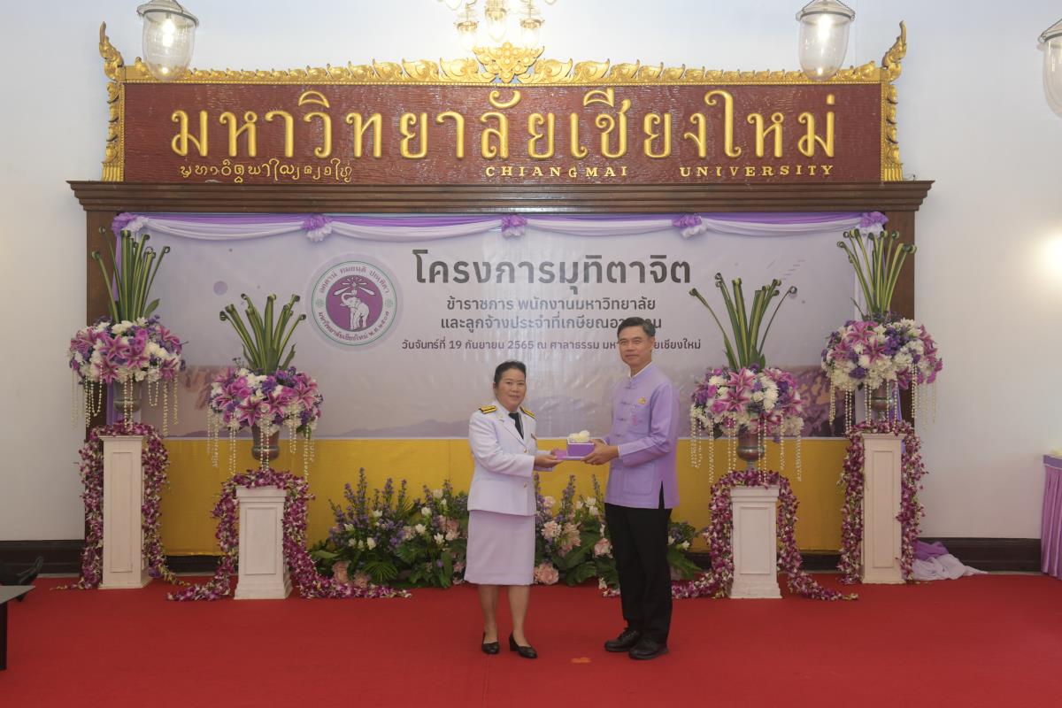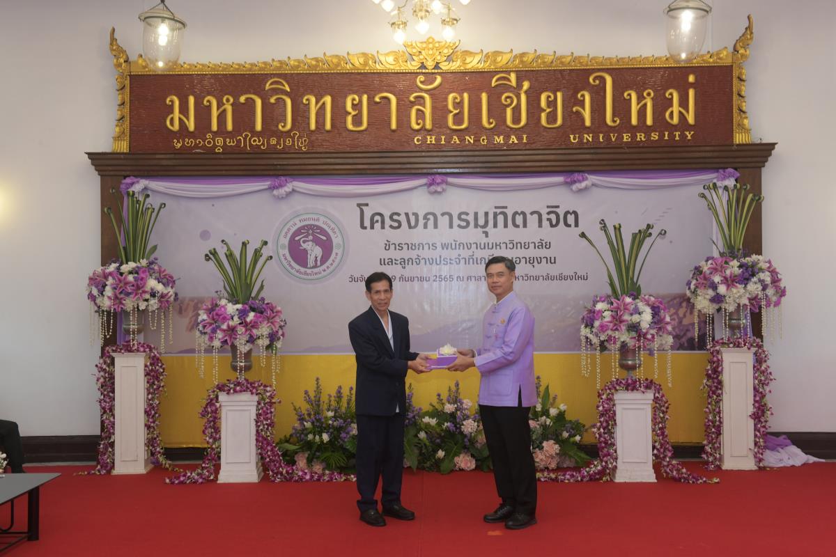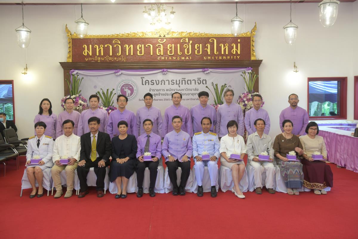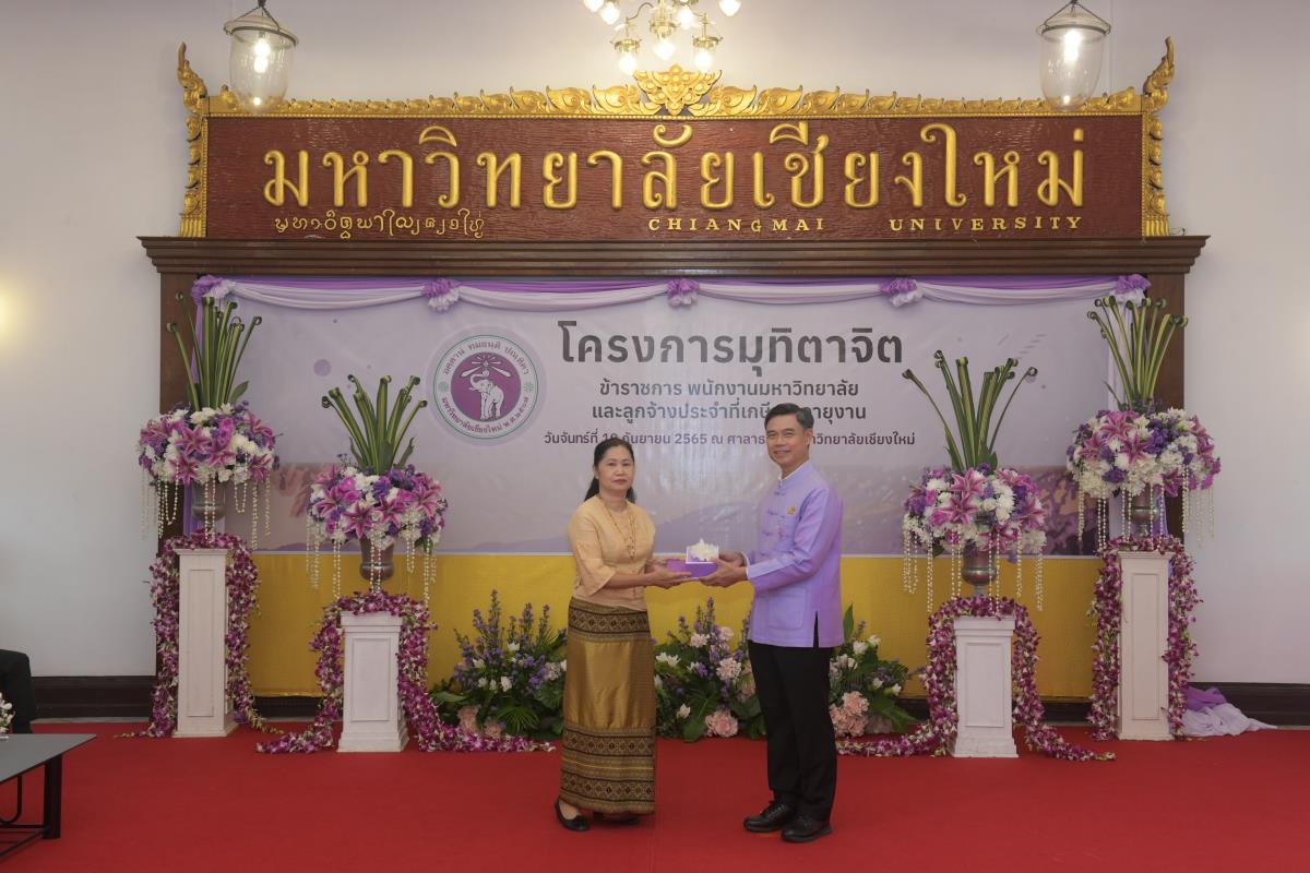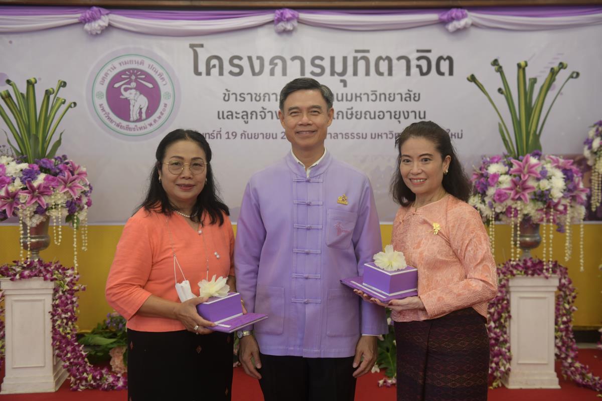 มหาวิทยาลัยเชียงใหม่ จัดงานมุทิตาจิตแก่ข้าราชการ พนักงานมหาวิทยาลัยและลูกจ้างประจำที่เกษียณอายุงานประจำปี 2565 ของมหาวิทยาลัยเชียงใหม่ จำนวน 269 คน โดยมีศาสตราจารย์ ดร.นพ.พงษ์รักษ์ ศรีบัณฑิตมงคล อธิการบดีมหาวิทยาลัยเชียงใหม่ เป็นประธานในพิธีฯ เพื่อเชิดชูเกียรติ และระลึกถึงคุณงามความดี ที่ได้อุทิศตนปฏิบัติหน้าที่ด้วยแรงกาย แรงใจ มีความมานะ อุตสาหะ พากเพียรพยายาม มุ่งมั่นสรรค์สร้างและพัฒนามหาวิทยาลัยเชียงใหม่ตลอดมา ณ ศาลาธรรม มหาวิทยาลัยเชียงใหม่ เมื่อวันจันทร์ที่ 19 กันยายน พ.ศ. 2565