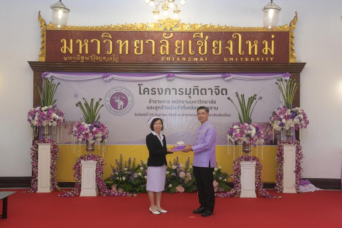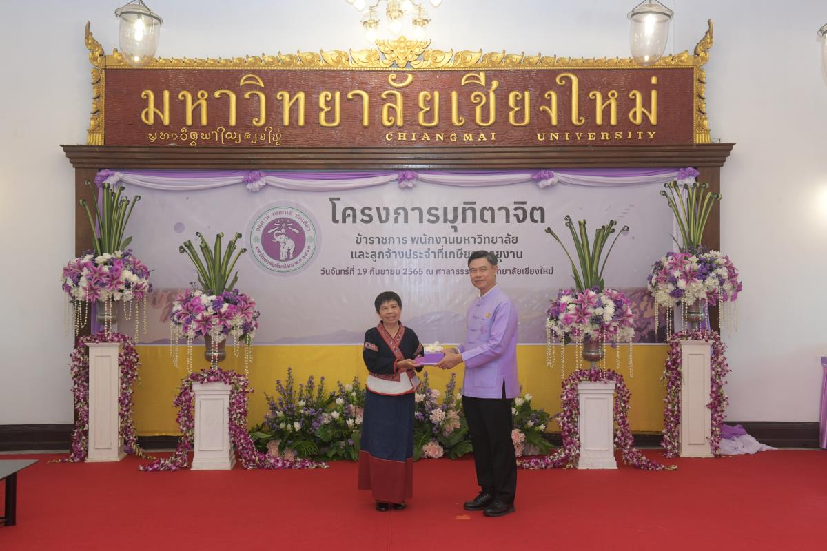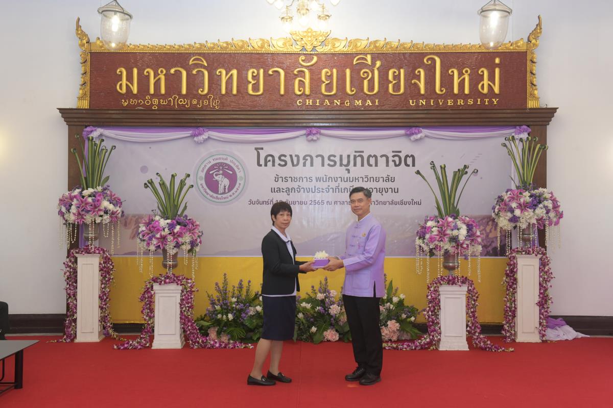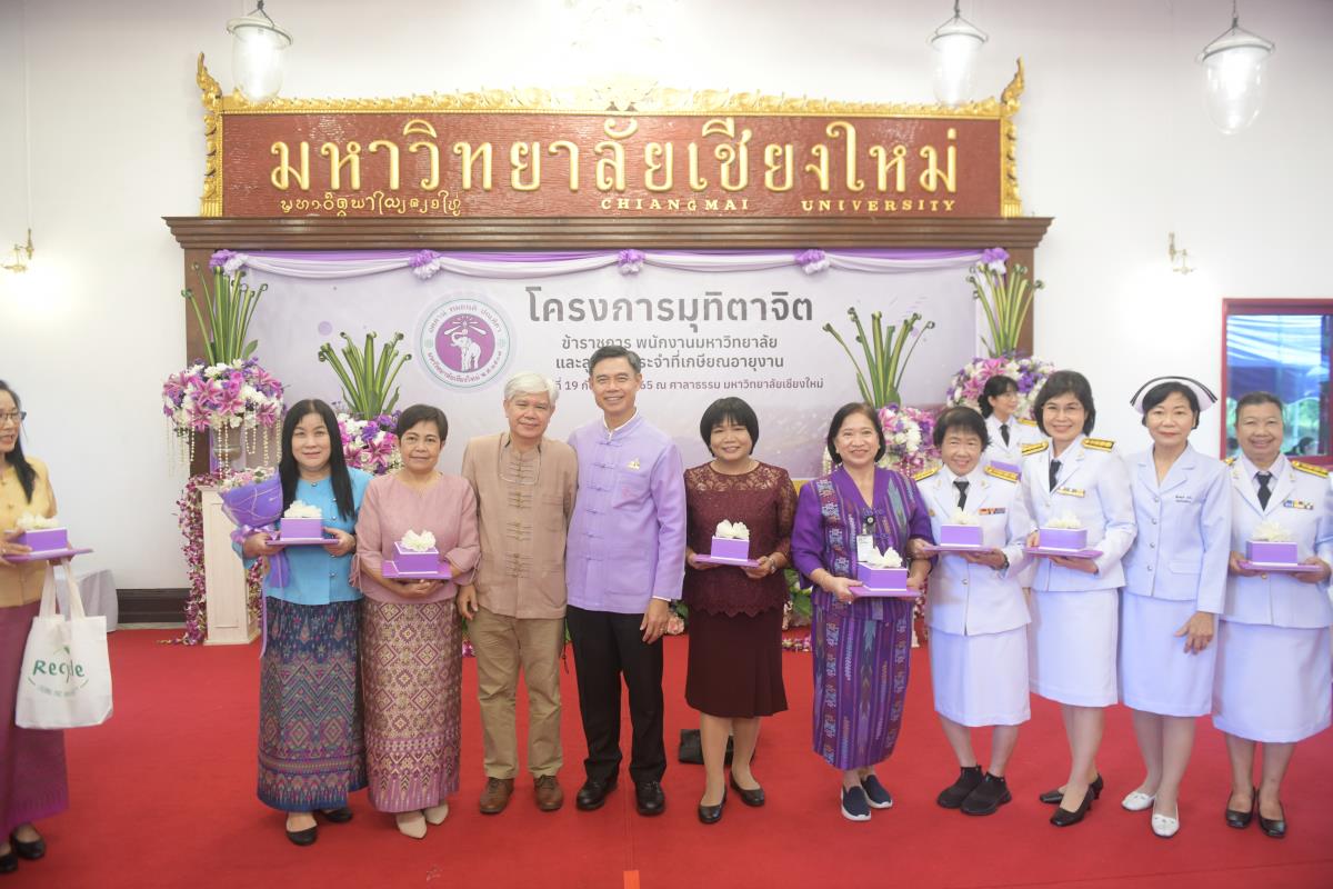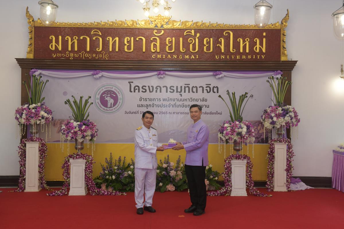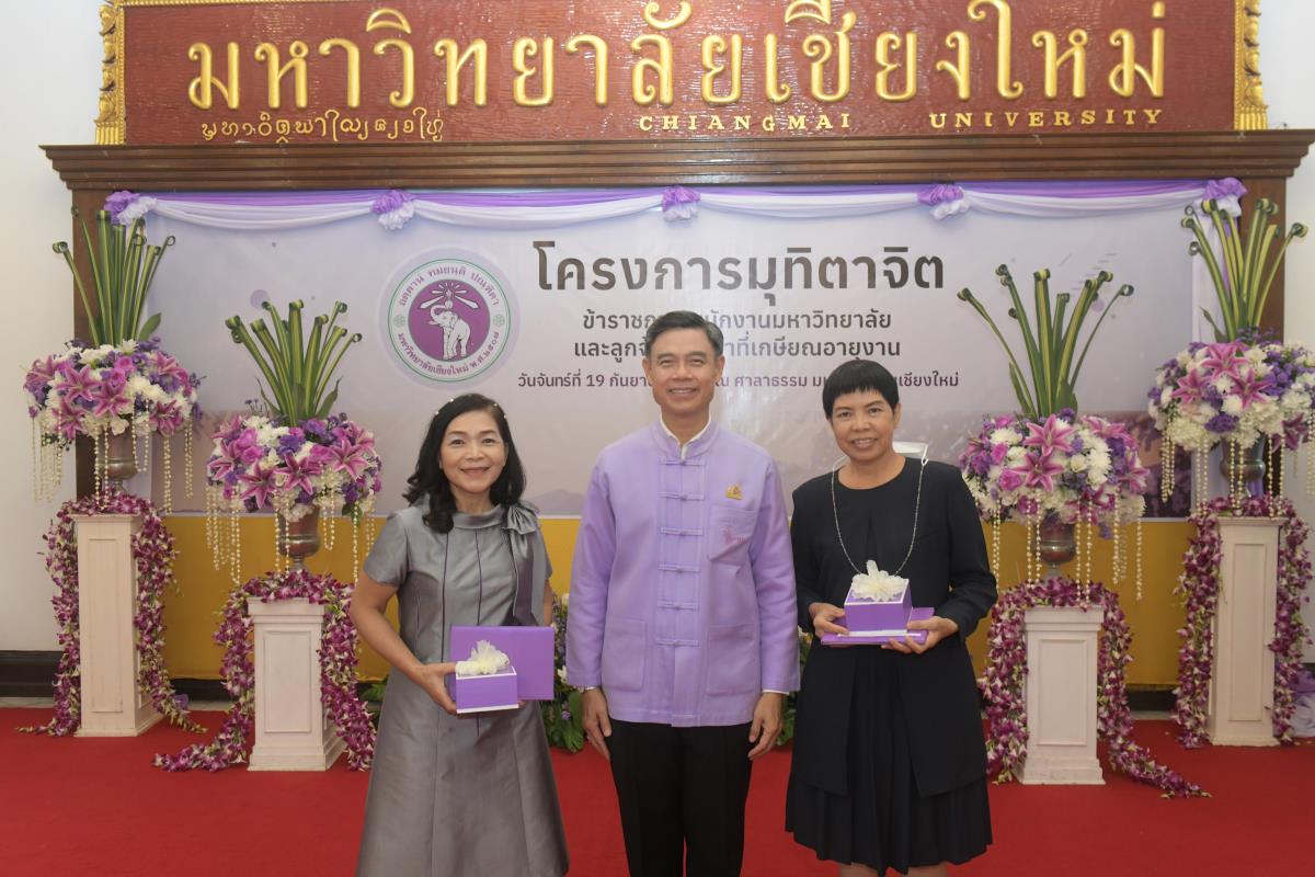 มหาวิทยาลัยเชียงใหม่ จัดงานมุทิตาจิตแก่ข้าราชการ พนักงานมหาวิทยาลัยและลูกจ้างประจำที่เกษียณอายุงานประจำปี 2565 ของมหาวิทยาลัยเชียงใหม่ จำนวน 269 คน โดยมีศาสตราจารย์ ดร.นพ.พงษ์รักษ์ ศรีบัณฑิตมงคล อธิการบดีมหาวิทยาลัยเชียงใหม่ เป็นประธานในพิธีฯ เพื่อเชิดชูเกียรติ และระลึกถึงคุณงามความดี ที่ได้อุทิศตนปฏิบัติหน้าที่ด้วยแรงกาย แรงใจ มีความมานะ อุตสาหะ พากเพียรพยายาม มุ่งมั่นสรรค์สร้างและพัฒนามหาวิทยาลัยเชียงใหม่ตลอดมา ณ ศาลาธรรม มหาวิทยาลัยเชียงใหม่ เมื่อวันจันทร์ที่ 19 กันยายน พ.ศ. 2565