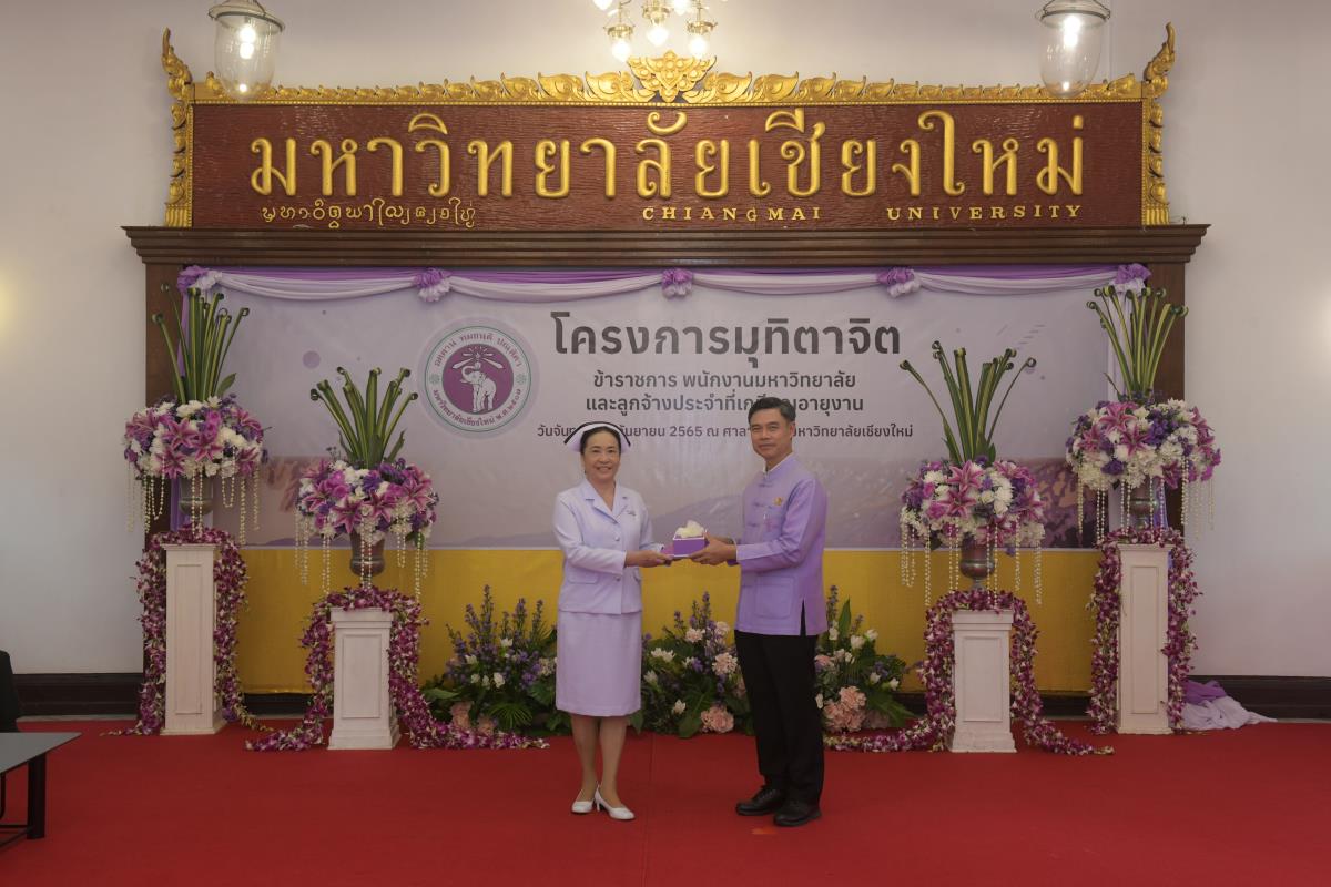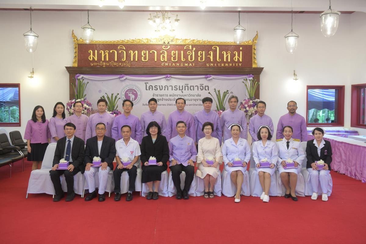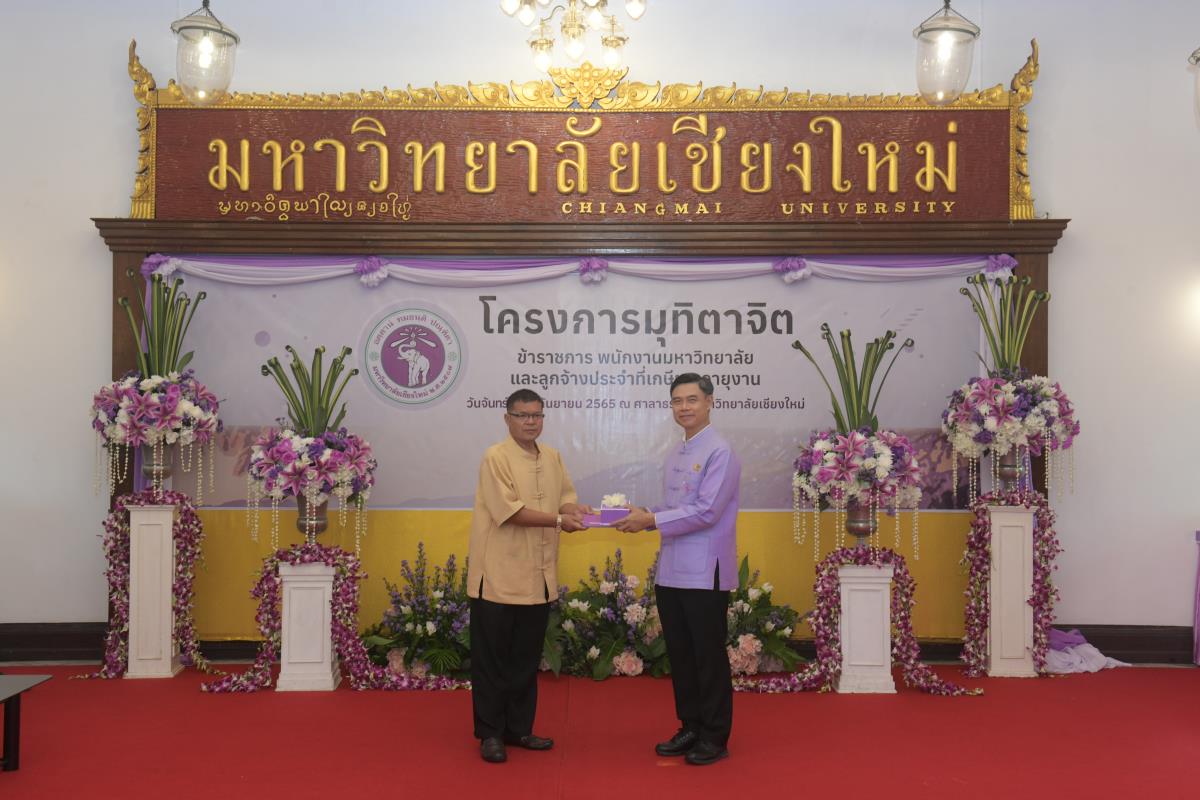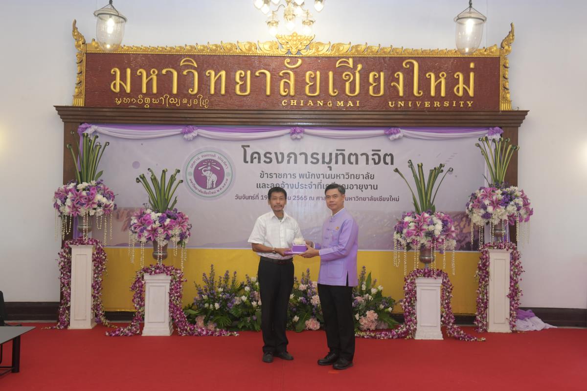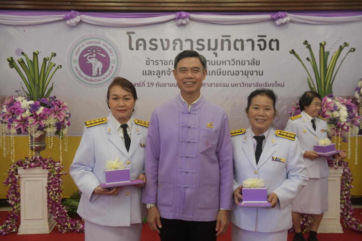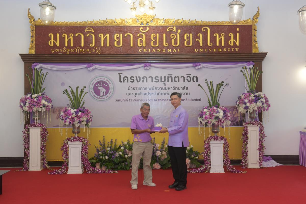 มหาวิทยาลัยเชียงใหม่ จัดงานมุทิตาจิตแก่ข้าราชการ พนักงานมหาวิทยาลัยและลูกจ้างประจำที่เกษียณอายุงานประจำปี 2565 ของมหาวิทยาลัยเชียงใหม่ จำนวน 269 คน โดยมีศาสตราจารย์ ดร.นพ.พงษ์รักษ์ ศรีบัณฑิตมงคล อธิการบดีมหาวิทยาลัยเชียงใหม่ เป็นประธานในพิธีฯ เพื่อเชิดชูเกียรติ และระลึกถึงคุณงามความดี ที่ได้อุทิศตนปฏิบัติหน้าที่ด้วยแรงกาย แรงใจ มีความมานะ อุตสาหะ พากเพียรพยายาม มุ่งมั่นสรรค์สร้างและพัฒนามหาวิทยาลัยเชียงใหม่ตลอดมา ณ ศาลาธรรม มหาวิทยาลัยเชียงใหม่ เมื่อวันจันทร์ที่ 19 กันยายน พ.ศ. 2565