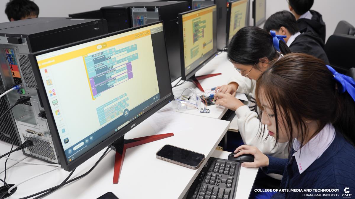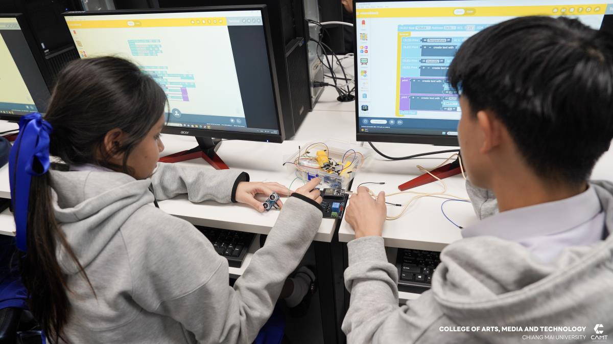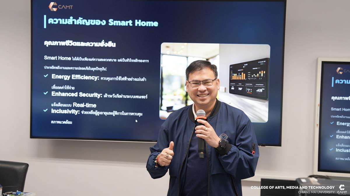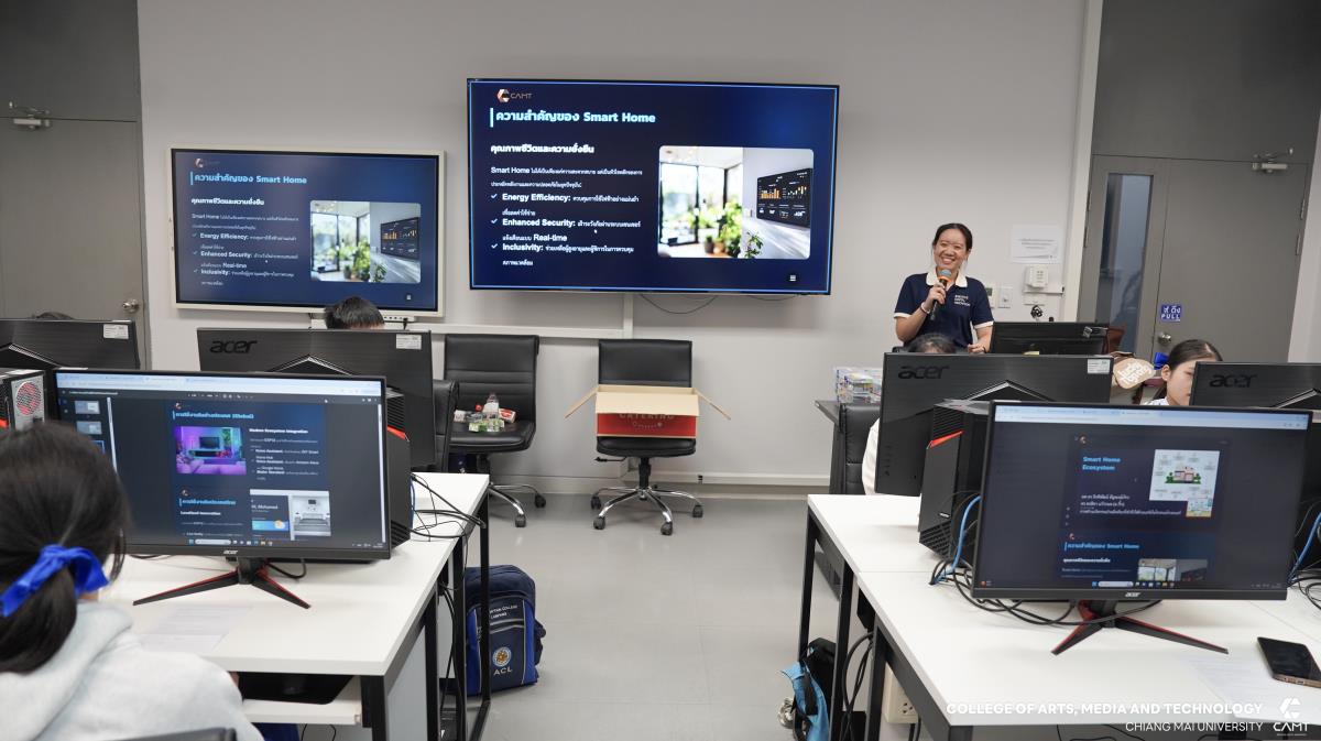 วิทยาลัยศิลปะ สื่อ และเทคโนโลยี มหาวิทยาลัยเชียงใหม่ เดินหน้าสร้างนิเวศการเรียนรู้ด้านเทคโนโลยี จัดการอบรมเชิงปฏิบัติการ “การสร้างระบบ Smart Home” ให้แก่นักเรียนชั้นมัธยมศึกษาตอนต้น (ม.1-ม.3) จากโรงเรียนอัสสัมชัญลำปาง จำนวน 52 คน เพื่อมุ่งเน้นการสร้างแรงบันดาลใจและพัฒนาทักษะการสร้างนวัตกรรมที่ตอบโจทย์วิถีชีวิตยุคใหม่ โดยนักเรียนจะได้เรียนรู้การใช้งานอุปกรณ์อิเล็กทรอนิกพื้นฐาน และการใช้งานเซ็นเซอร์ เพื่อตรียมความพร้อมทักษะการสร้างนวัตกรรมบ้านอัจฉริยะ (Smart Home Ecosystem) ที่เข้าถึงได้ด้วยบอร์ดไมโครคอนโทรลเลอร์ โดยได้รับเกียรติจากผู้ช่วยศาสตราจารย์ ดร.จิรพิพัฒน์ ธัญพงษ์ภัทร อาจารย์ประจำสาขาบูรณาการอุตสาหกรรมดิจิทัล และอาจารย์ ดร.พรธิดา แก้วกมลเป็นอาจารย์ประจำสาขาการจัดการสมัยใหม่ และเทคโนโลยีสารสนเทศ ร่วมเป็นวิทยากรผู้สอน ในวันที่ 20 มกราคม 2569 ณ อาคารศูนย์นวัตกรรมการเรียนรู้ วิทยาลัยศิลปะ สื่อ และเทคโนโลยี มหาวิทยาลัยเชียงใหม่