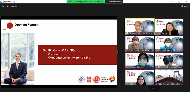 ศาสตราจารย์คลินิก นายแพทย์นิเวศน์ นันทจิต อธิการบดีมหาวิทยาลัยเชียงใหม่ พร้อมด้วย รองศาสตราจารย์โรม จิรานุกรม รองอธิการบดีมหาวิทยาลัยเชียงใหม่ ร่วมการประชุมออนไลน์ The 5th ASEAN+3 Rectors’ Conference ( Event Specifications) ซึ่งจัดโดย Kanazawa University ประเทศญี่ปุ่น เป็นเจ้าภาพ เมื่อวันพฤหัสบดีที่ 14 ตุลาคม 2564 เวลา 07.30-11.00 น. (ตามเวลาประเทศไทย) เพื่อใช้เป็นเวทีให้ผู้บริหารของมหาวิทยาลัยสมาชิกในอาเซียน+3 พร้อมทั้งแลกเปลี่ยนข้อคิดเห็นและแสวงหาโอกาสความท้าทายในภูมิภาค โดยมีผู้เข้าประชุมออนไลน์ร่วมกว่า 100 คน จากภูมิภาคอาเซียนเข้าร่วมการประชุมดังกล่าว