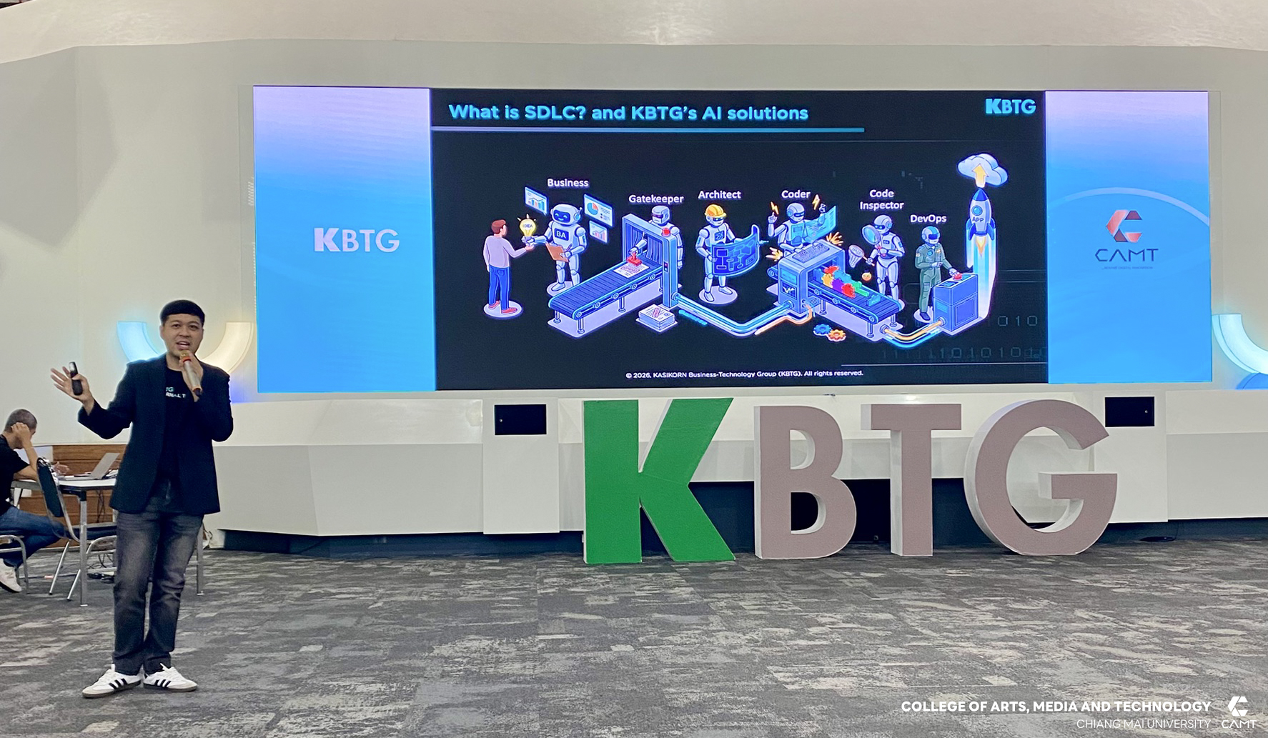 สาขาวิชาวิศวกรรมซอฟต์แวร์ (นานาชาติ) วิทยาลัยศิลปะ สื่อ และเทคโนโลยี มหาวิทยาลัยเชียงใหม่ นำโดย อาจารย์ ดร.กิตติธัช สุตีคา ประธานสาขาวิชาวิศวกรรมซอฟต์แวร์ ระดับปริญญาตรี พร้อมด้วยอาจารย์ประจำสาขาวิชาวิศวกรรมซอฟต์แวร์ ได้นำคณะนักศึกษาชั้นปีที่ 3 จำนวน 49 คน เข้าศึกษาดูงานด้านเทคโนโลยีสารสนเทศและอุตสาหกรรมซอฟต์แวร์ ณ ท่าอากาศยานไทย จำกัด (มหาชน) และรับฟังการบรรยายในหัวข้อ “AI Technology in Financial Business และ AI Applications in SDLC” จาก บริษัท กสิกร บิสซิเนส-เทคโนโลยี กรุ๊ป (KBTG) รวมทั้งเข้ารับฟังบรรยายในหัวข้อ “ระบบสารสนเทศ และเทคโนโลยี ที่ใช้ในการสนับสนุนการปฏิบัติงานของบริษัท บีวายดี ออโต้ (ประเทศไทย) จำกัด”