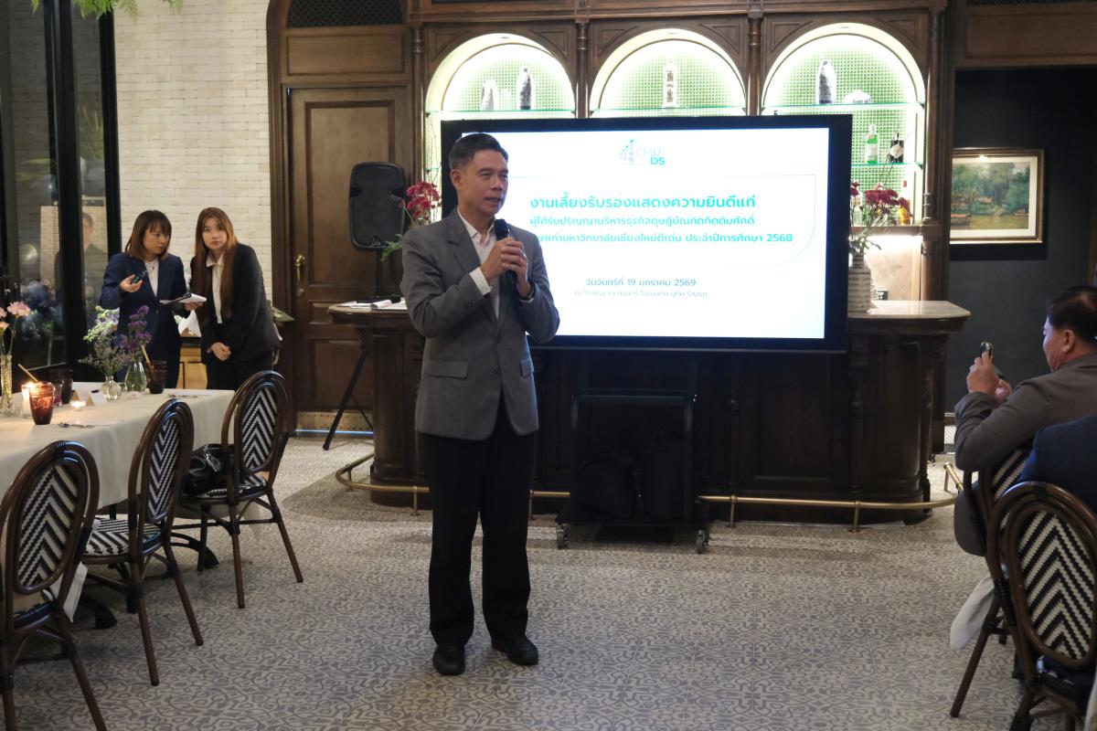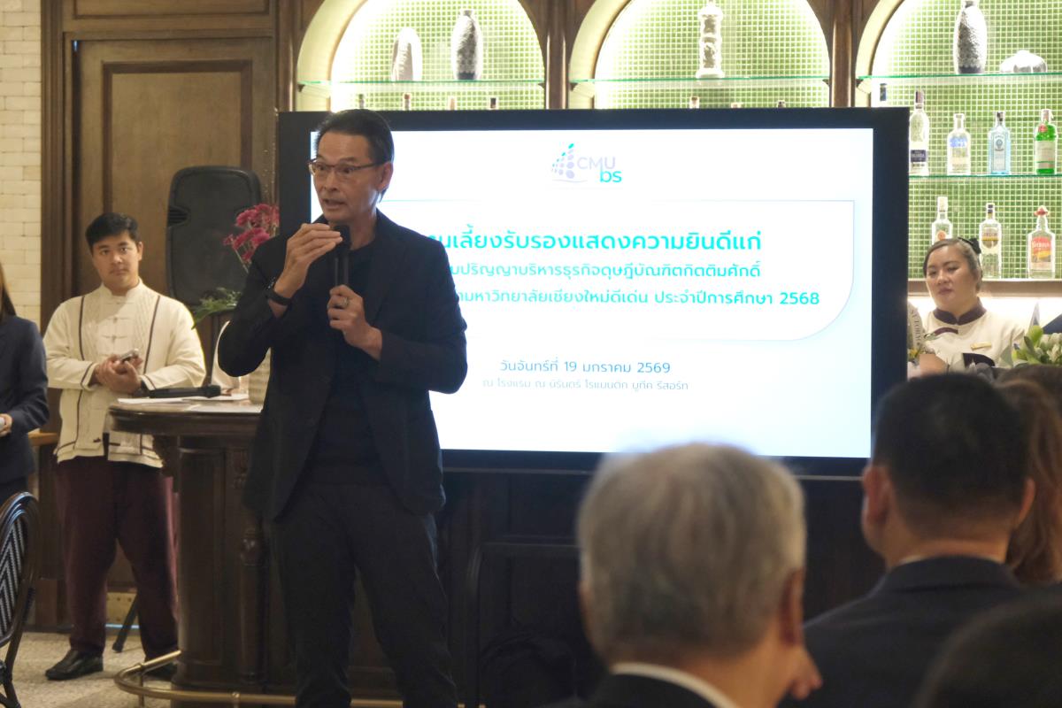 วันที่ 19 มกราคม 2569 คณะบริหารธุรกิจ มหาวิทยาลัยเชียงใหม่ (CMUBS) จัดพิธีแสดงความยินดีแก่ผู้ได้รับปริญญาบริหารธุรกิจดุษฎีบัณฑิตกิตติมศักดิ์ ได้แก่ คุณชูวิทย์ จึงธนสมบูรณ์ และคุณวรวัชร ตันตรานนท์ พร้อมด้วยผู้ได้รับรางวัลนักศึกษาเก่ามหาวิทยาลัยเชียงใหม่ดีเด่น ประจำปีการศึกษา 2568 ดร.กอบกิจ อิสรชีววัฒน์ ณ โรงแรม ณ นิรันทร์ โรแมนติก บูทีค รีสอร์ท จังหวัดเชียงใหม่ โดยมี ศาสตราจารย์ ดร.นายแพทย์พงษ์รักษ์ ศรีบัณฑิตมงคล อธิการบดีมหาวิทยาลัยเชียงใหม่ พร้อมผู้ช่วยศาสตราจารย์ ดร.ก้องภู นิมานันท์ คณบดีคณะบริหารธุรกิจ คณะผู้บริหาร คณาจารย์ และแขกผู้มีเกียรติร่วมแสดงความยินดีอย่างพร้อมเพรียง