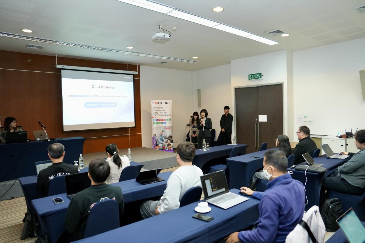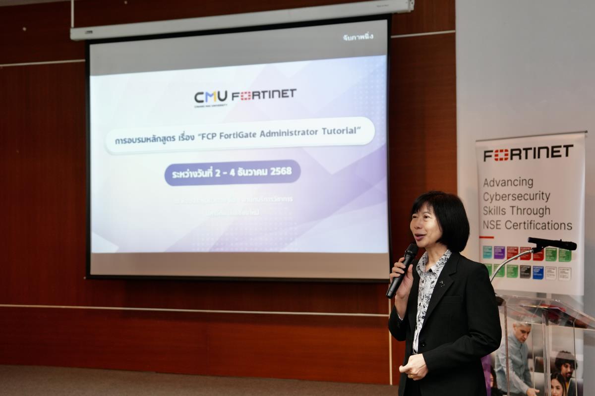 ผู้ช่วยศาสตราจารย์ ดร.วีณัน บัณฑิตย์ ผู้ช่วยอธิการบดีมหาวิทยาลัยเชียงใหม่ ประธานเปิดการอบรมหลักสูตร เรื่อง “FCP FortiGate Administrator Tutorial” โดยความร่วมมือระหว่างมหาวิทยาลัยเชียงใหม่ กับ บริษัท ฟอร์ทิเนท ซีเคียวริตี้ เน็ทเวิร์ค (ประเทศไทย) จำกัด เพื่อพัฒนาศักยภาพของคณาจารย์และบุคลากร ในการเสริมสร้างองค์ความรู้ด้านความมั่นคงปลอดภัยไซเบอร์ และเพิ่มประสิทธิภาพในการดำเนินงานของมหาวิทยาลัย ณ ห้องประชุมบัวตอง ชั้น 1 สำนักบริการวิชาการ มหาวิทยาลัยเชียงใหม่ เมื่อวันอังคารที่ 2 ธันวาคม 2568