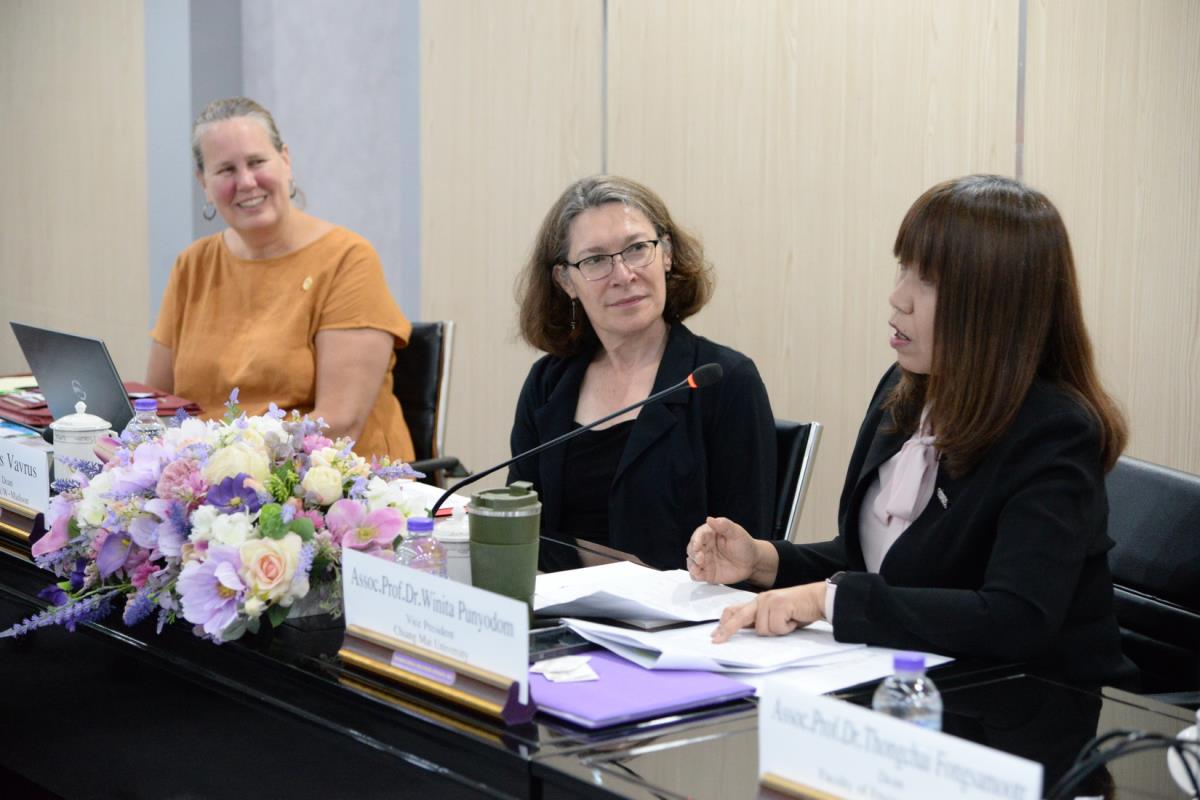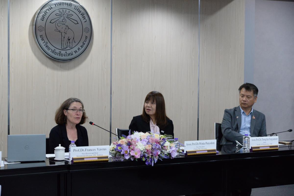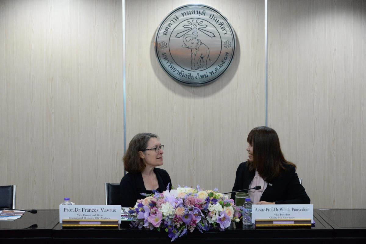 รองศาสตราจารย์ ดร. วินิตา บุณโยดม รองอธิการบดี พร้อมด้วยคณะผู้บริหารมหาวิทยาลัยเชียงใหม่ ให้การต้อนรับ Professor Dr. Frances Vavrus, Vice Provost and Dean, International Division, University of Wisconsin-Madison, USA และคณะ ในโอกาสที่มาปรึกษาหารือเกี่ยวกับความร่วมมือทางวิชาการ โดยมีคณบดีคณะวิศวกรรมศาสตร์ คณบดีคณะอุตสาหกรรมเกษตร ผู้แทนคณะแพทยศาสตร์ คณะเกษตรศาสตร์ คณะวิทยาศาสตร์ คณะสัตวแพทยศาสตร์ สถาบันวิจัยวิทยาศาสตร์สุขภาพ สำนักงานบริหารงานวิจัย คณะกรรมการไทยไอซ์คิวบ์และศิษย์เก่ามหาวิทยาลัยวิสคอนซิน-แมดิสัน ร่วมให้การต้อนรับ ณ ห้องประชุมพระยาศรีวิสารวาจา อาคารสำนักงานมหาวิทยาลัย 1 มหาวิทยาลัยเชียงใหม่ วันพุธที่ 26 มิถุนายน พ.ศ. 2567