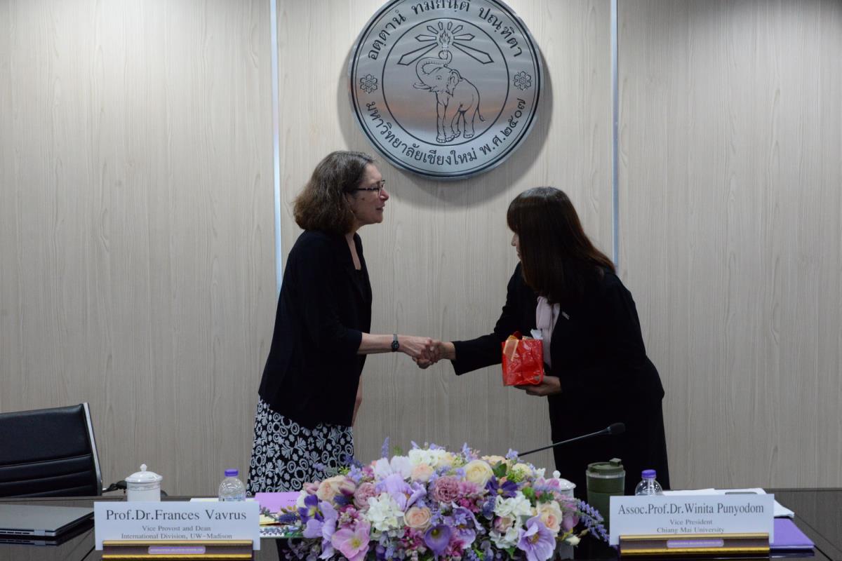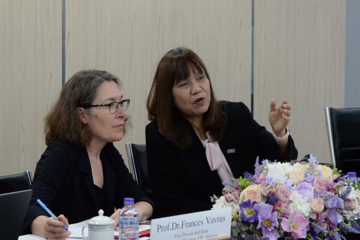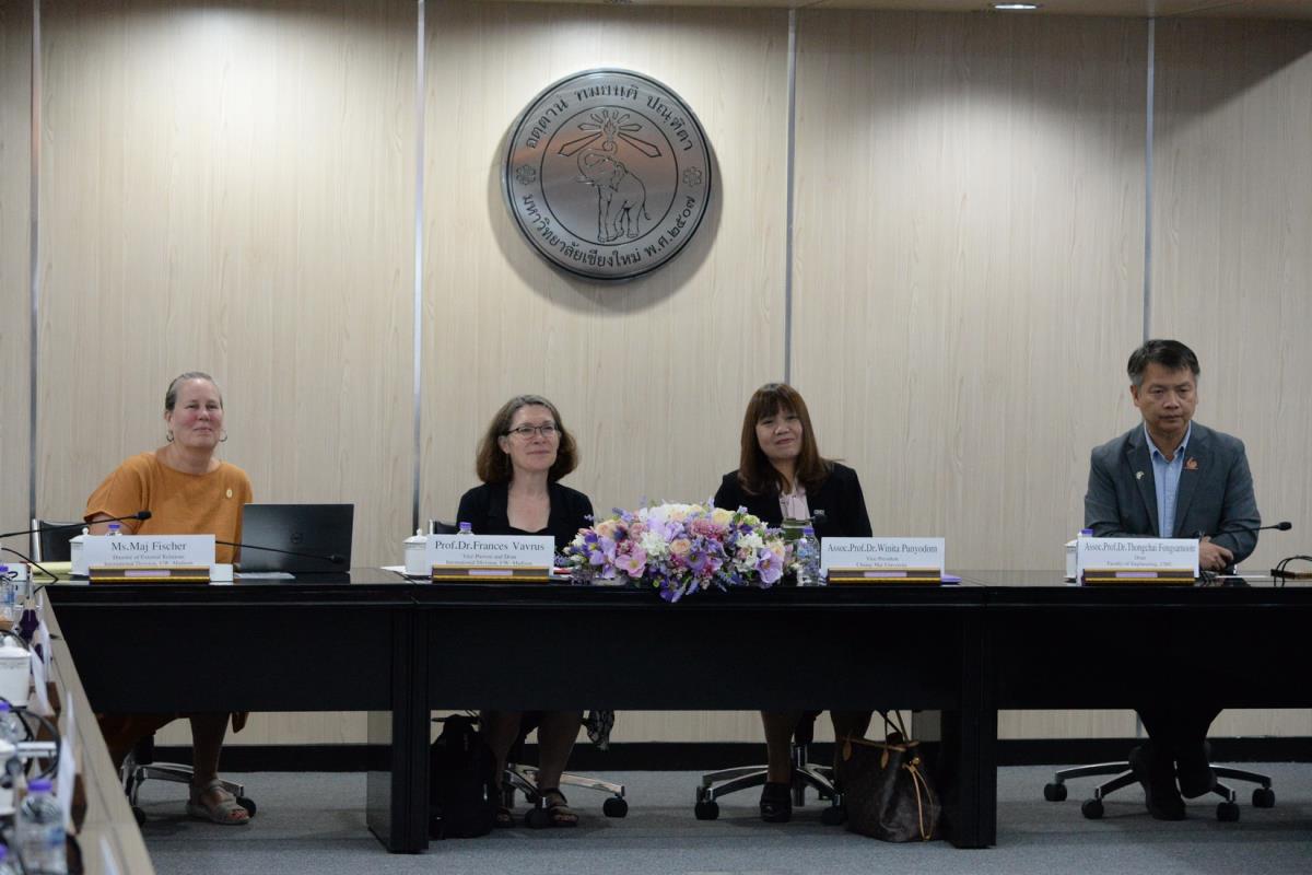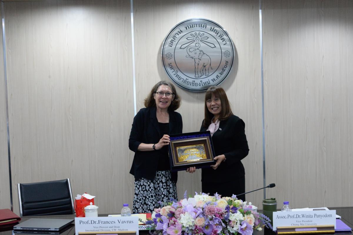 รองศาสตราจารย์ ดร. วินิตา บุณโยดม รองอธิการบดี พร้อมด้วยคณะผู้บริหารมหาวิทยาลัยเชียงใหม่ ให้การต้อนรับ Professor Dr. Frances Vavrus, Vice Provost and Dean, International Division, University of Wisconsin-Madison, USA และคณะ ในโอกาสที่มาปรึกษาหารือเกี่ยวกับความร่วมมือทางวิชาการ โดยมีคณบดีคณะวิศวกรรมศาสตร์ คณบดีคณะอุตสาหกรรมเกษตร ผู้แทนคณะแพทยศาสตร์ คณะเกษตรศาสตร์ คณะวิทยาศาสตร์ คณะสัตวแพทยศาสตร์ สถาบันวิจัยวิทยาศาสตร์สุขภาพ สำนักงานบริหารงานวิจัย คณะกรรมการไทยไอซ์คิวบ์และศิษย์เก่ามหาวิทยาลัยวิสคอนซิน-แมดิสัน ร่วมให้การต้อนรับ ณ ห้องประชุมพระยาศรีวิสารวาจา อาคารสำนักงานมหาวิทยาลัย 1 มหาวิทยาลัยเชียงใหม่ วันพุธที่ 26 มิถุนายน พ.ศ. 2567