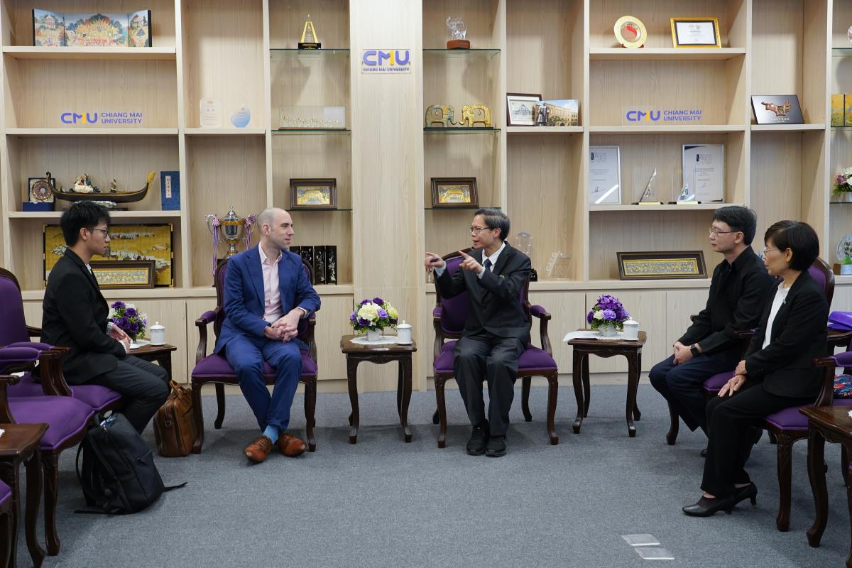 รองศาสตราจารย์ ดร.ปิยะพงศ์ เนียมทรัพย์ ผู้ช่วยอธิการบดีมหาวิทยาลัยเชียงใหม่ พร้อมด้วย รองศาสตราจารย์ ดร.อนุชา วัชระภาสร อาจารย์ประจำภาควิชาฟิสิกส์และวัสดุศาสตร์ คณะวิทยาศาสตร์ ให้การต้อนรับอาคันตุกะ จาก Nanyang Technological University โดยมี Assoc. Prof. Guillaume Thibaul และ Dr. Tanadet Pipatpolkai เข้าพบเพื่อหารือความร่วมมือทางวิชาการ ในวันพุธที่ 27 พฤศจิกายน 2567 ณ ห้องรับรอง มล.ปิ่น มาลากุล อาคารสำนักงานมหาวิทยาลัย 1 มหาวิทยาลัยเชียงใหม่
