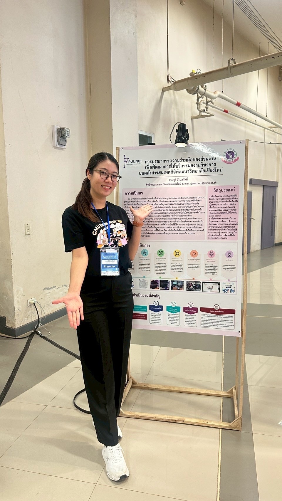 4. ผลงานเรื่อง "การบูรณาการความร่วมือของส่วนงานเพื่อพัฒนาการให้บริการผลงานวิชาการบนคลังสารสนเทศดิจิทัลมหาวิทยาลัยเชียงใหม่" โดย นางสาวจามจุรี จิโนสวัสดิ์
