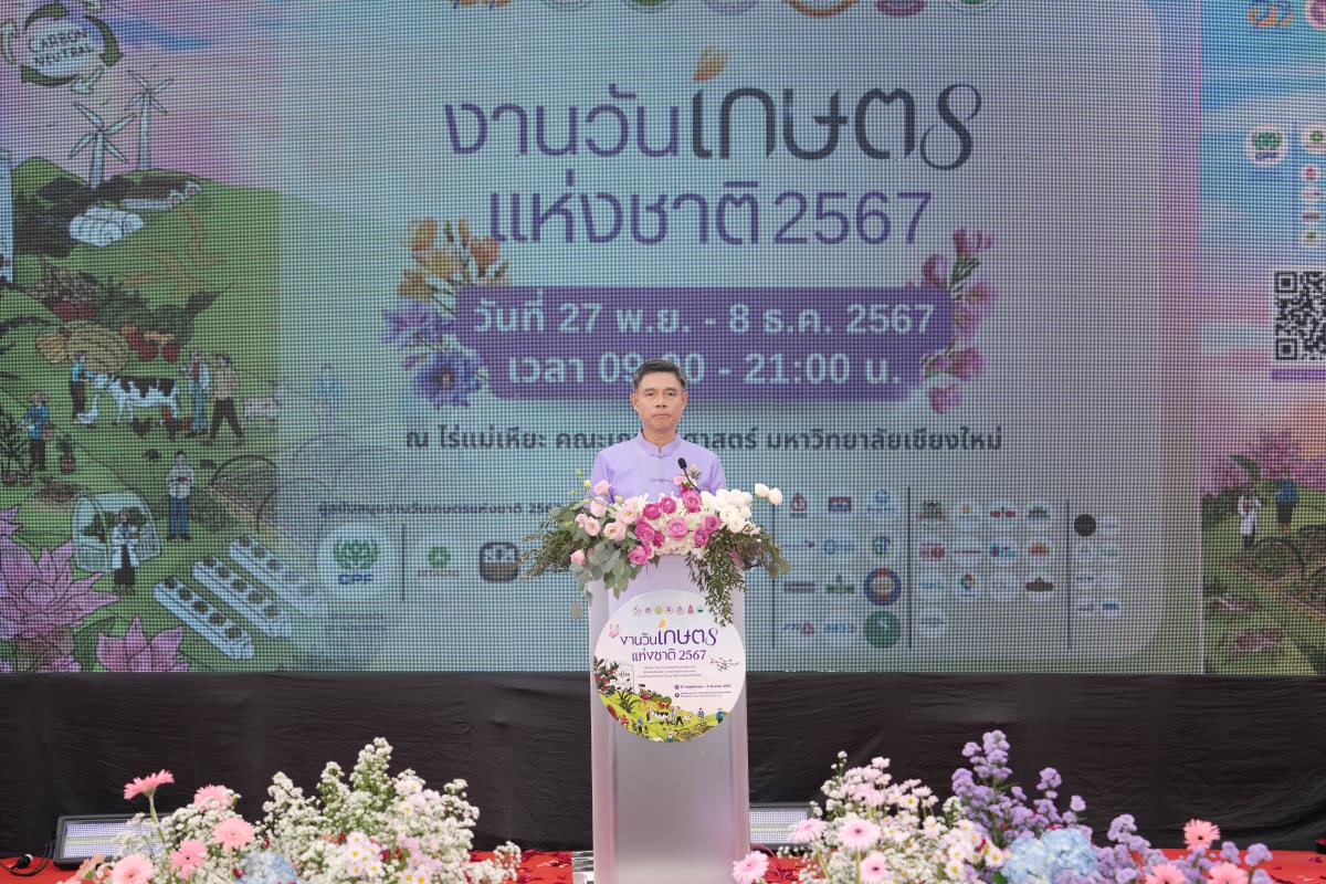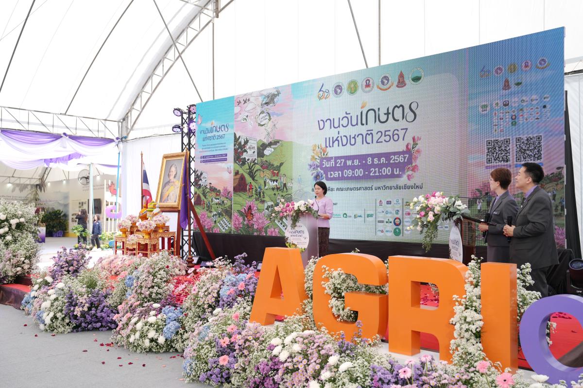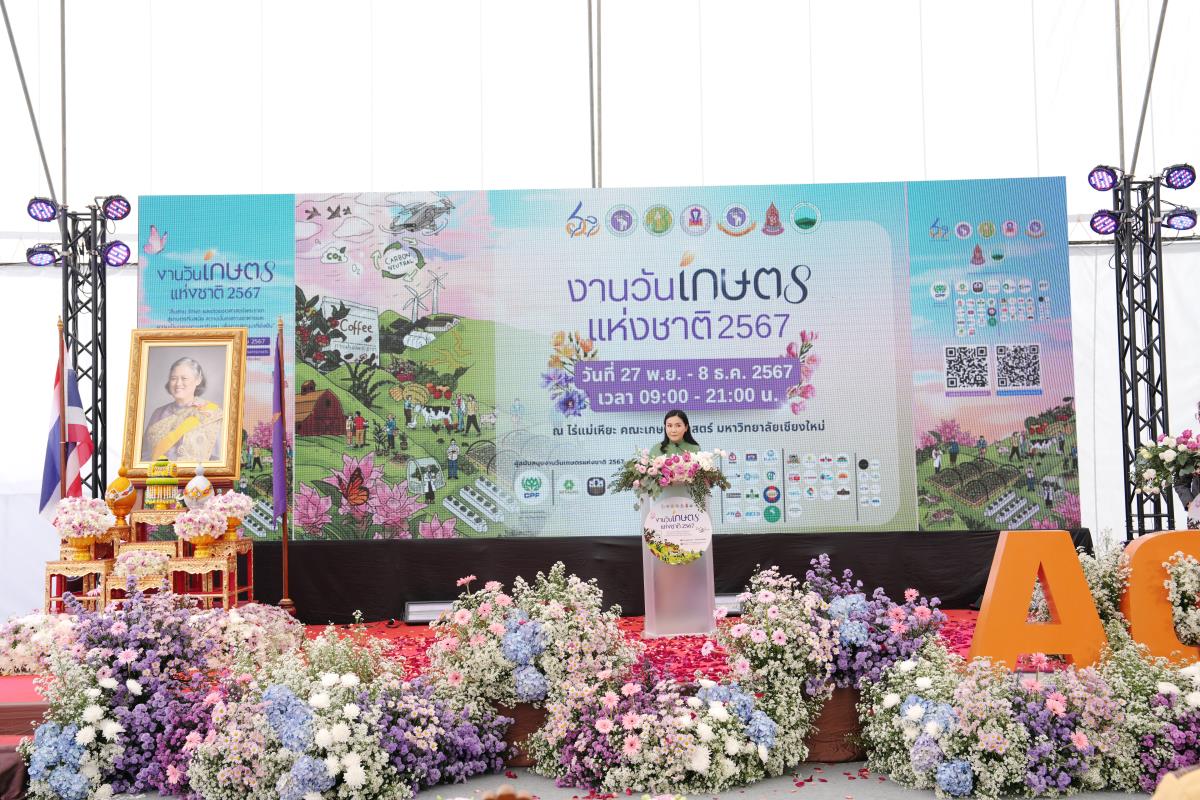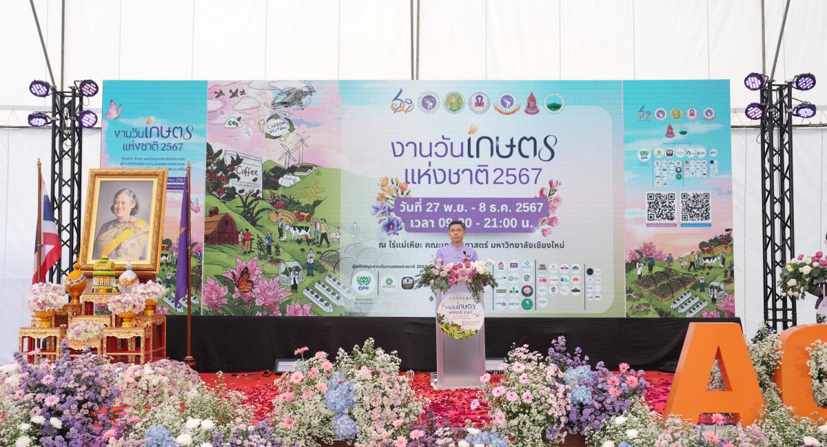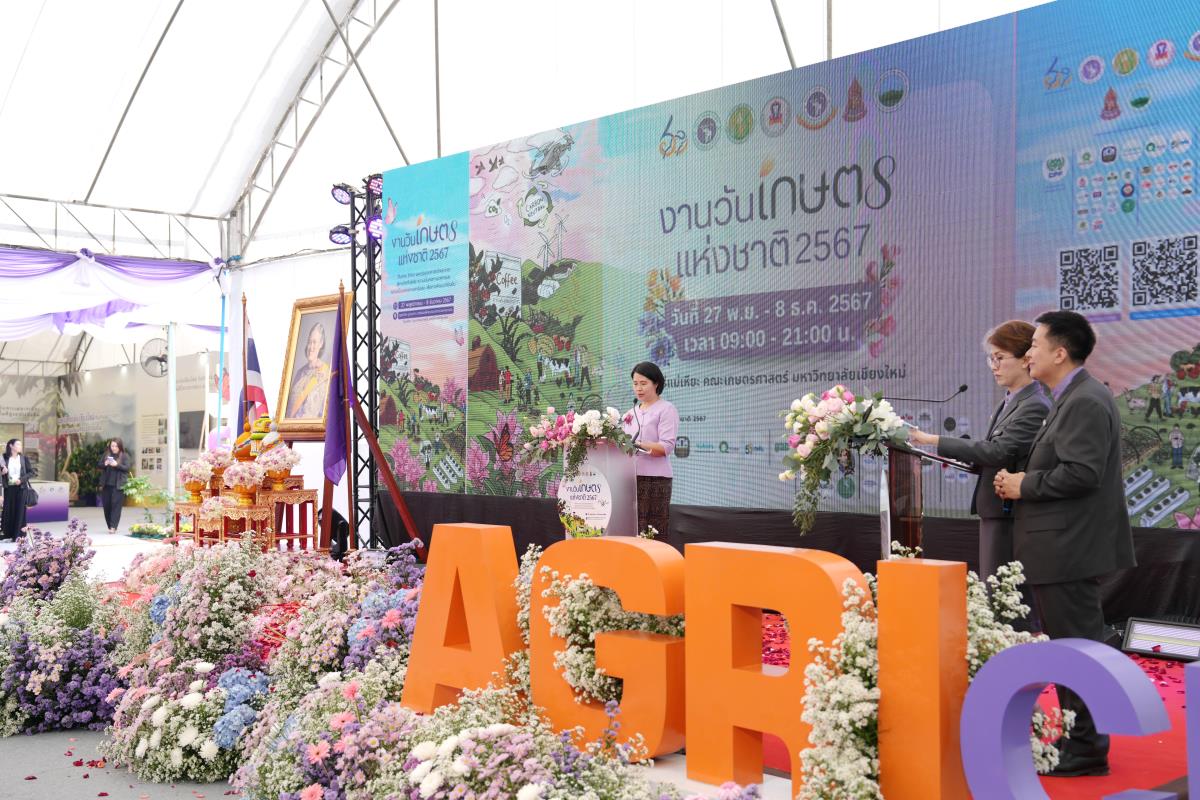 คณะเกษตรศาสตร์ มหาวิทยาลัยเชียงใหม่ จัด “งานวันเกษตรแห่งชาติ ประจำปี 2567” ระหว่างวันที่ 27 พฤศจิกายน – 8 ธันวาคม 2567 ภายใต้แนวคิด “สืบสาน รักษา และต่อยอดศาสตร์พระราชา สู่เกษตรทันสมัย ความมั่นคงทางอาหาร และความเป็นกลางทางคาร์บอน เพื่อการพัฒนาที่ยั่งยืน” ณ ศูนย์วิจัย บูรณาการ สาธิตและฝึกอบรมการเกษตรแม่เหียะ คณะเกษตรศาสตร์ มหาวิทยาลัยเชียงใหม่ เพื่อเฉลิมพระเกียรติพระบาทสมเด็จพระเจ้าอยู่หัว เนื่องในโอกาสมหามงคลเฉลิมพระชนมพรรษา 6 รอบ 28 กรกฎาคม 2567 และเป็นการร่วมเฉลิมฉลองในวาระครบรอบ 60 ปี มหาวิทยาลัยเชียงใหม่ ในการเผยแพร่องค์ความรู้ด้านนวัตกรรมการเกษตรเพื่อความยั่งยืนทั้งในมิติด้านอาหาร สุขภาพ สังคมและสิ่งแวดล้อมควบคู่กับไปศาสตร์พระราชา โดยมี ศ.ดร.นฤมล ภิญโญสินวัฒน์ รัฐมนตรีว่าการกระทรวงเกษตรและสหกรณ์ ประธานเปิดงาน ศาสตราจารย์ ดร.นพ.พงษ์รักษ์ ศรีบัณฑิตมงคล อธิการบดีมหาวิทยาลัยเชียงใหม่ กล่าวต้อนรับ ผศ.ดร.ดรุณี นาพรหม คณบดีคณะเกษตรศาสตร์ กล่าวรายงาน เมื่อวันพุธที่ 27 พฤศจิกายน 2567
