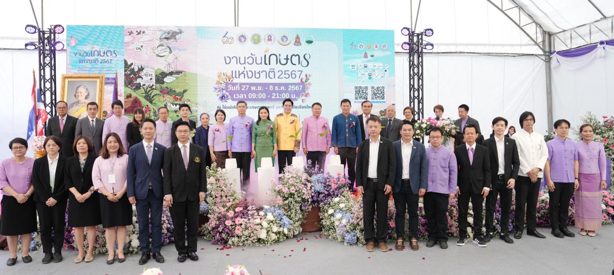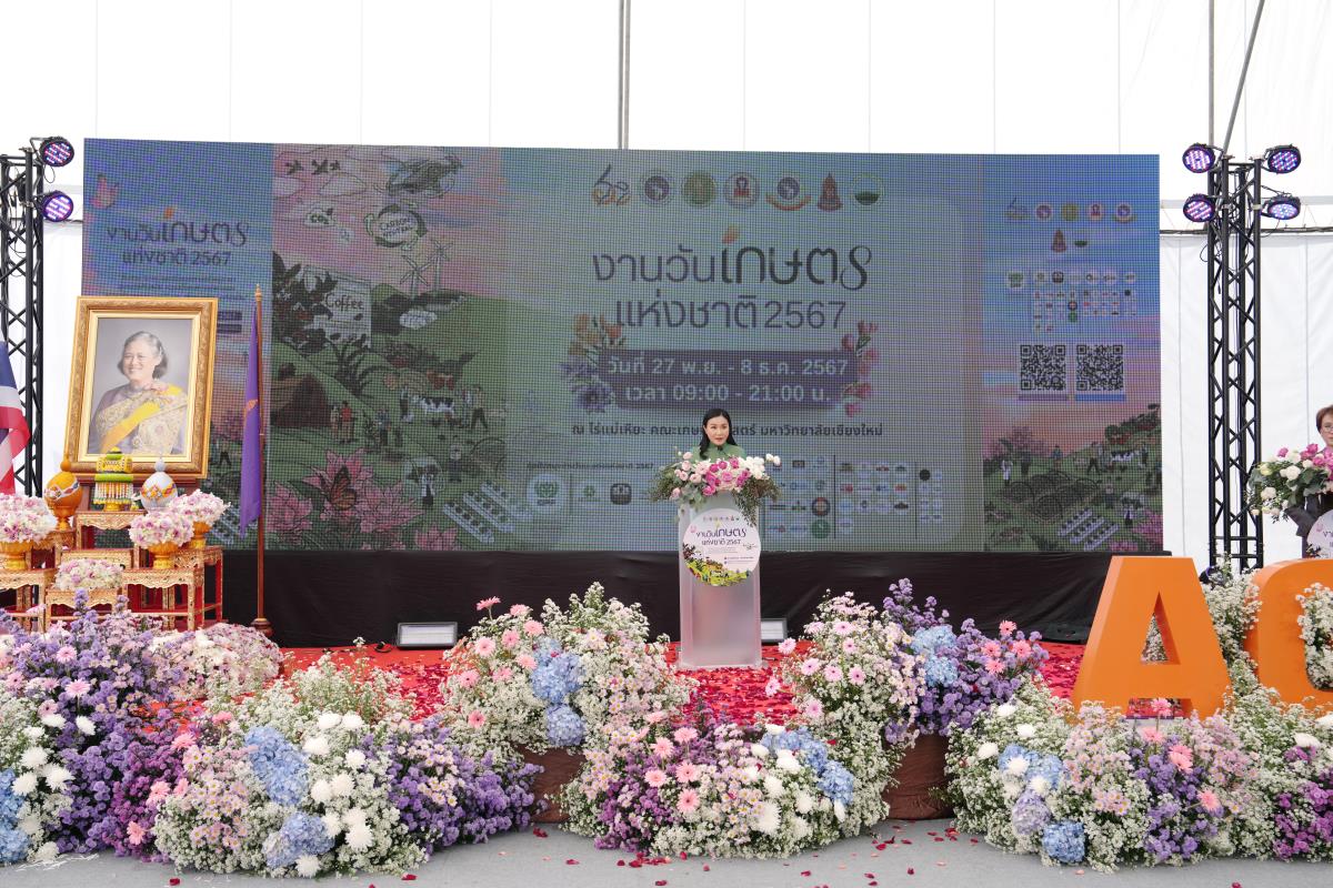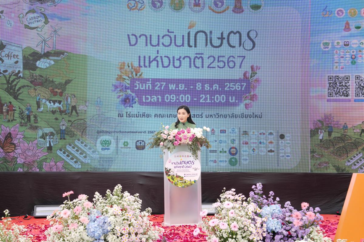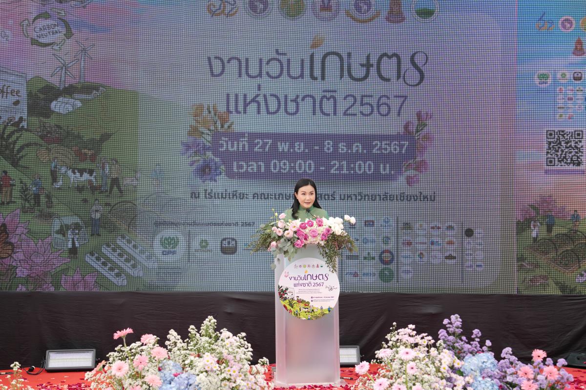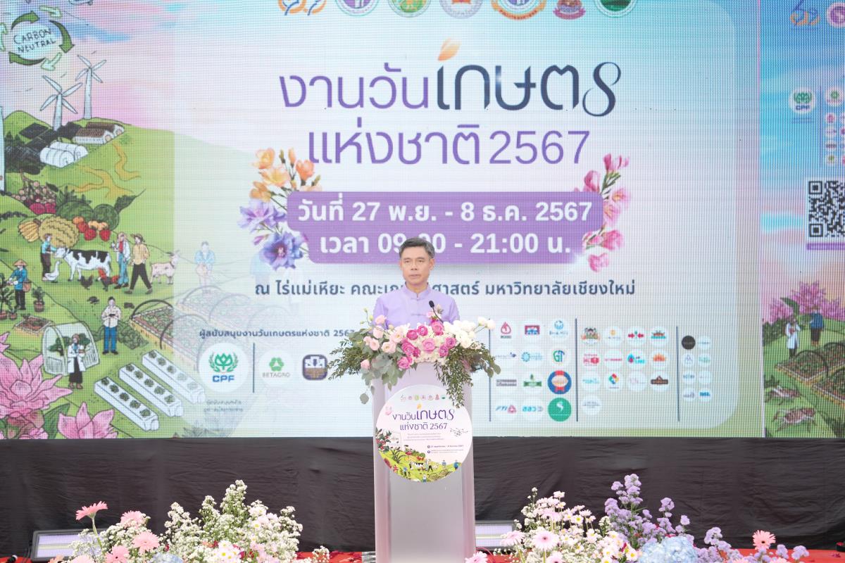 คณะเกษตรศาสตร์ มหาวิทยาลัยเชียงใหม่ จัด “งานวันเกษตรแห่งชาติ ประจำปี 2567” ระหว่างวันที่ 27 พฤศจิกายน – 8 ธันวาคม 2567 ภายใต้แนวคิด “สืบสาน รักษา และต่อยอดศาสตร์พระราชา สู่เกษตรทันสมัย ความมั่นคงทางอาหาร และความเป็นกลางทางคาร์บอน เพื่อการพัฒนาที่ยั่งยืน” ณ ศูนย์วิจัย บูรณาการ สาธิตและฝึกอบรมการเกษตรแม่เหียะ คณะเกษตรศาสตร์ มหาวิทยาลัยเชียงใหม่ เพื่อเฉลิมพระเกียรติพระบาทสมเด็จพระเจ้าอยู่หัว เนื่องในโอกาสมหามงคลเฉลิมพระชนมพรรษา 6 รอบ 28 กรกฎาคม 2567 และเป็นการร่วมเฉลิมฉลองในวาระครบรอบ 60 ปี มหาวิทยาลัยเชียงใหม่ ในการเผยแพร่องค์ความรู้ด้านนวัตกรรมการเกษตรเพื่อความยั่งยืนทั้งในมิติด้านอาหาร สุขภาพ สังคมและสิ่งแวดล้อมควบคู่กับไปศาสตร์พระราชา โดยมี ศ.ดร.นฤมล ภิญโญสินวัฒน์ รัฐมนตรีว่าการกระทรวงเกษตรและสหกรณ์ ประธานเปิดงาน ศาสตราจารย์ ดร.นพ.พงษ์รักษ์ ศรีบัณฑิตมงคล อธิการบดีมหาวิทยาลัยเชียงใหม่ กล่าวต้อนรับ ผศ.ดร.ดรุณี นาพรหม คณบดีคณะเกษตรศาสตร์ กล่าวรายงาน เมื่อวันพุธที่ 27 พฤศจิกายน 2567