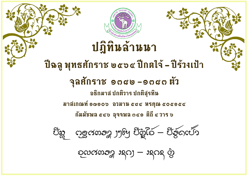 "ปฏิทินล้านนา 2564 มื้อจั๋นวันดี"