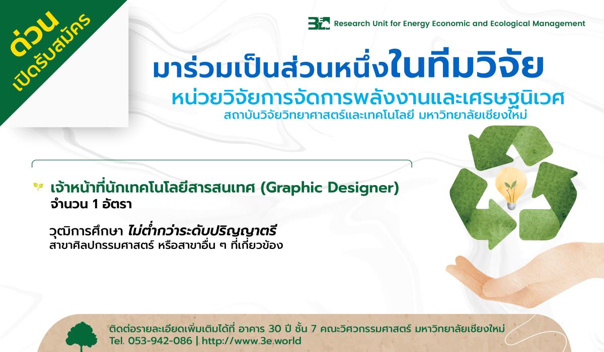 หน่วยวิจัยเพื่อการจัดการพลังงานและเศรษฐนิเวศ สถาบันวิจัยวิทยาศาสตร์และเทคโนโลยี มหาวิทยาลัยเชียงใหม่ ประกาศรับสมัครงานตำแหน่ง นักเทคโนโลยีสารสนเทศ ่จำนวน 1 อัตรา ประจำหน่วยวิจัยเพื่อการจัดการพลังงานและเศรษฐนิเวศ สถาบันฯ ตั้งแต่บัดนี้เป็นต้นไป สอบถามรายละเอียดเพิ่มเติมได้ที่ 053-942086