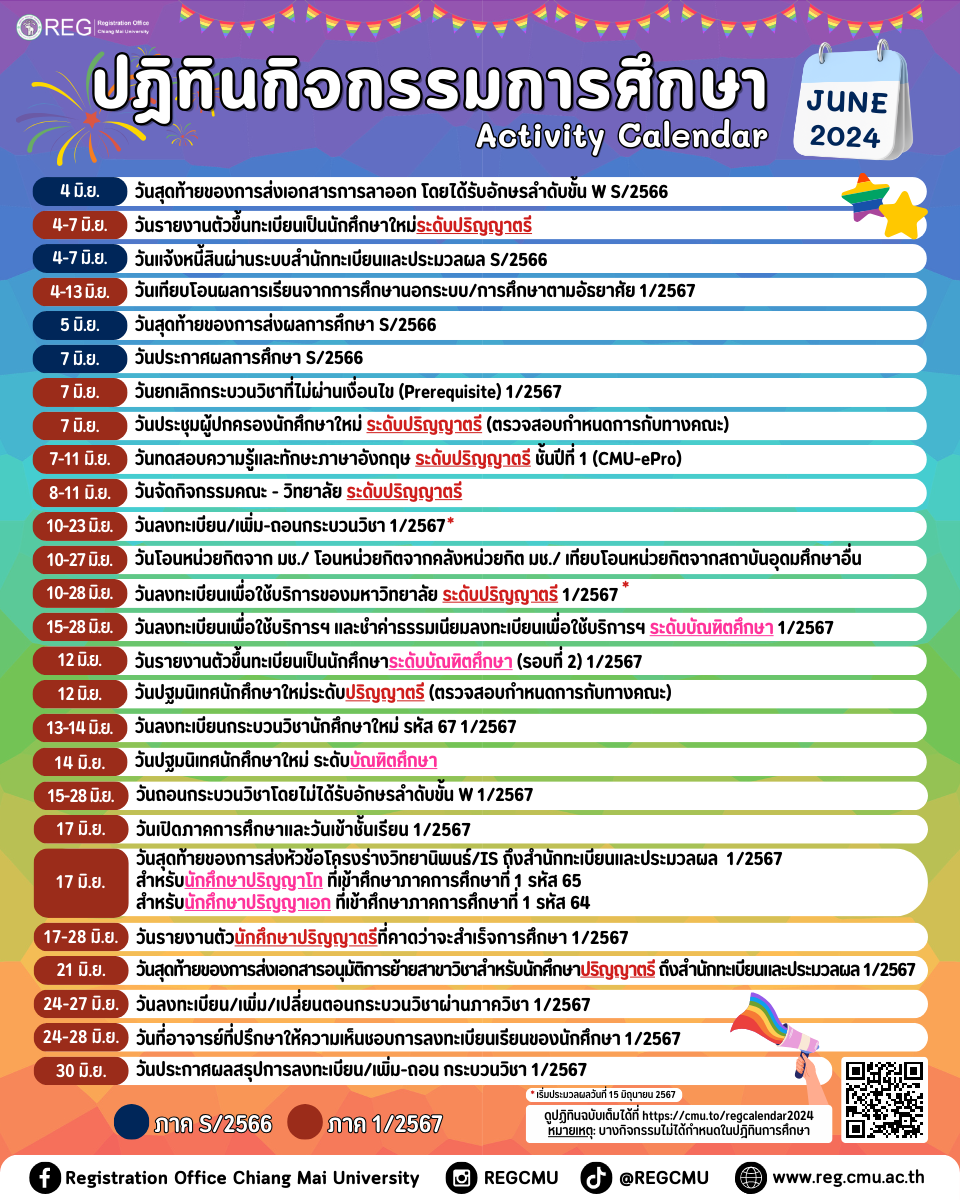 สามารถดูปฎิทินฉบับเต็มได้ที่ https://cmu.to/regcalendar2024