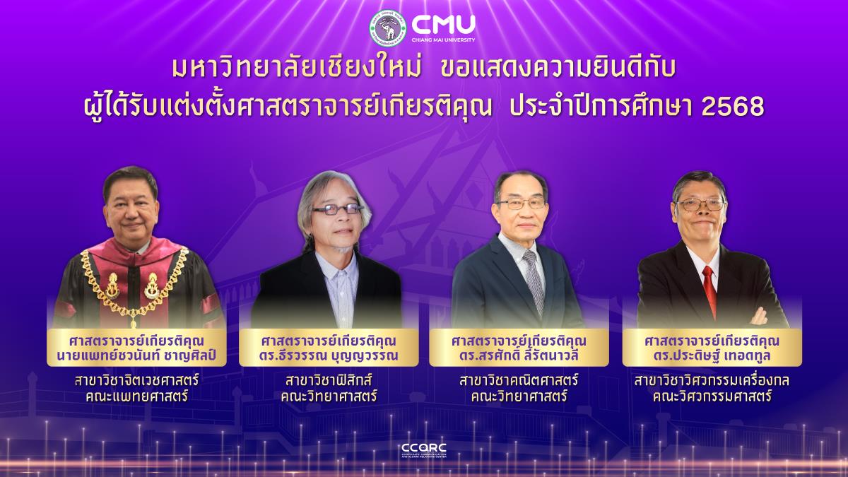 มหาวิทยาลัยเชียงใหม่ อนุมัติปริญญากิตติมศักดิ์แก่ผู้ทรงคุณวุฒิ และแต่งตั้งศาสตราจารย์เกียรติคุณ ปีการศึกษา 2568