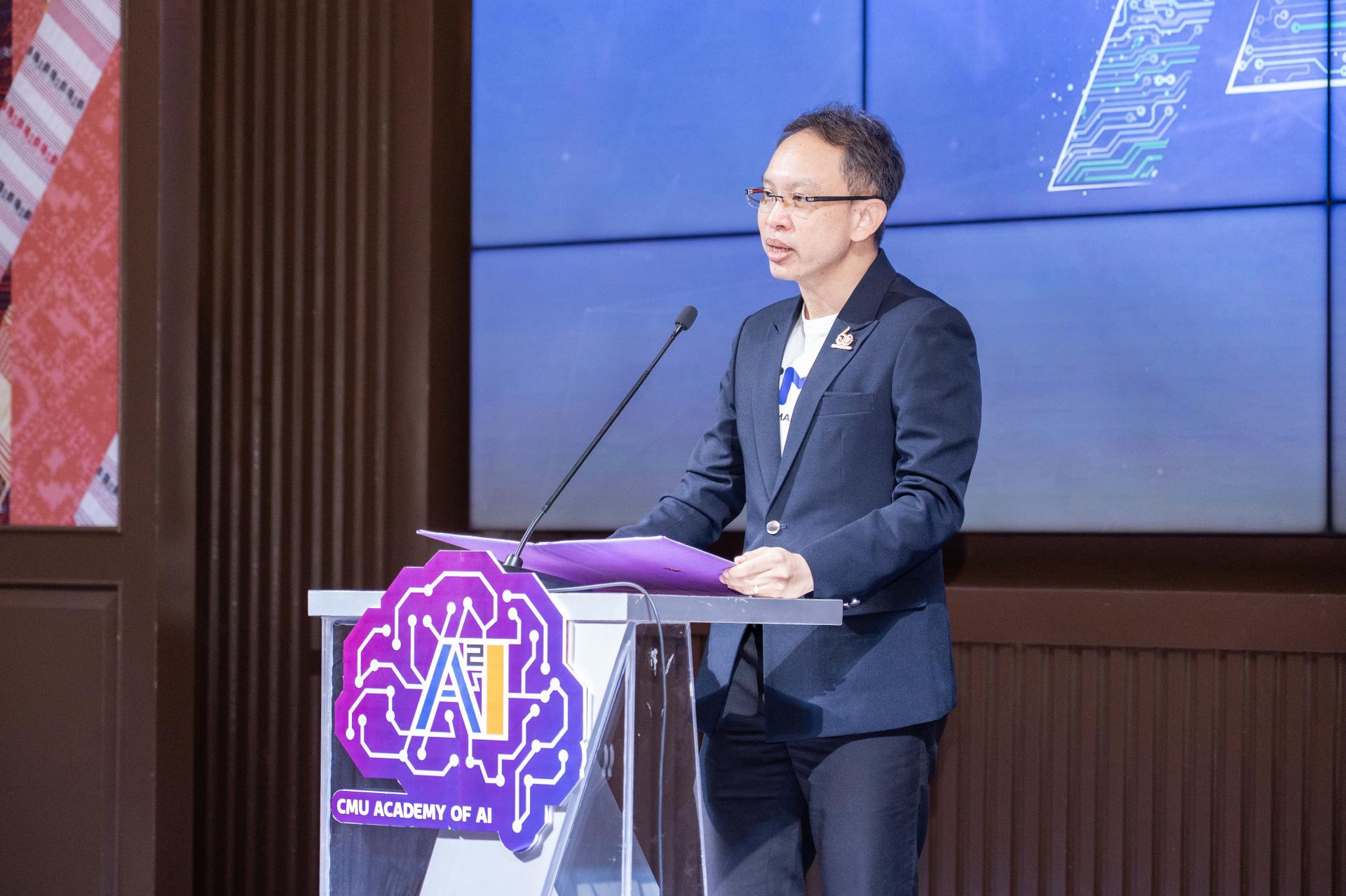ศาสตราจารย์ปฏิบัติ ดร.ชรินทร์ เตชะพันธุ์ รองอธิการบดีมหาวิทยาลัยเชียงใหม่ เป็นประธานกล่าวเปิดงานและนำเสนอทิศทางการขับเคลื่อน AI เพื่อการศึกษาของมหาวิทยาลัยเชียงใหม่ ในงานแถลงข่าวเปิดตัว “CMU Academy of AI (CMU AAI)” โดยมี รองศาสตราจารย์ ภญ.อุษณีย์ คำประกอบ รองอธิการบดีมหาวิทยาลัยเชียงใหม่ นำเสนอในหัวข้อเส้นทางการเรียนรู้ AI ที่ มช. (AI Learning Pathway @ CMU) และ ผู้ช่วยศาสตราจารย์ ดร.ปิติพงษ์ ยอดมงคล รองอธิการบดีมหาวิทยาลัยเชียงใหม่ บรรยายเรื่องการยกระดับและพัฒนาทักษะด้าน AI ของบุคลากร มช. (AI Upskilling & Capacity Building) พร้อมด้วย รองศาสตราจารย์ ดร.จักรพงศ์ นาทวิชัย ผู้อำนวยการสำนักบริการเทคโนโลยีสารสนเทศ และเลขานุการฯ CMU Academy of AI เป็นผู้กล่าวต้อนรับผู้เข้าร่วมงาน