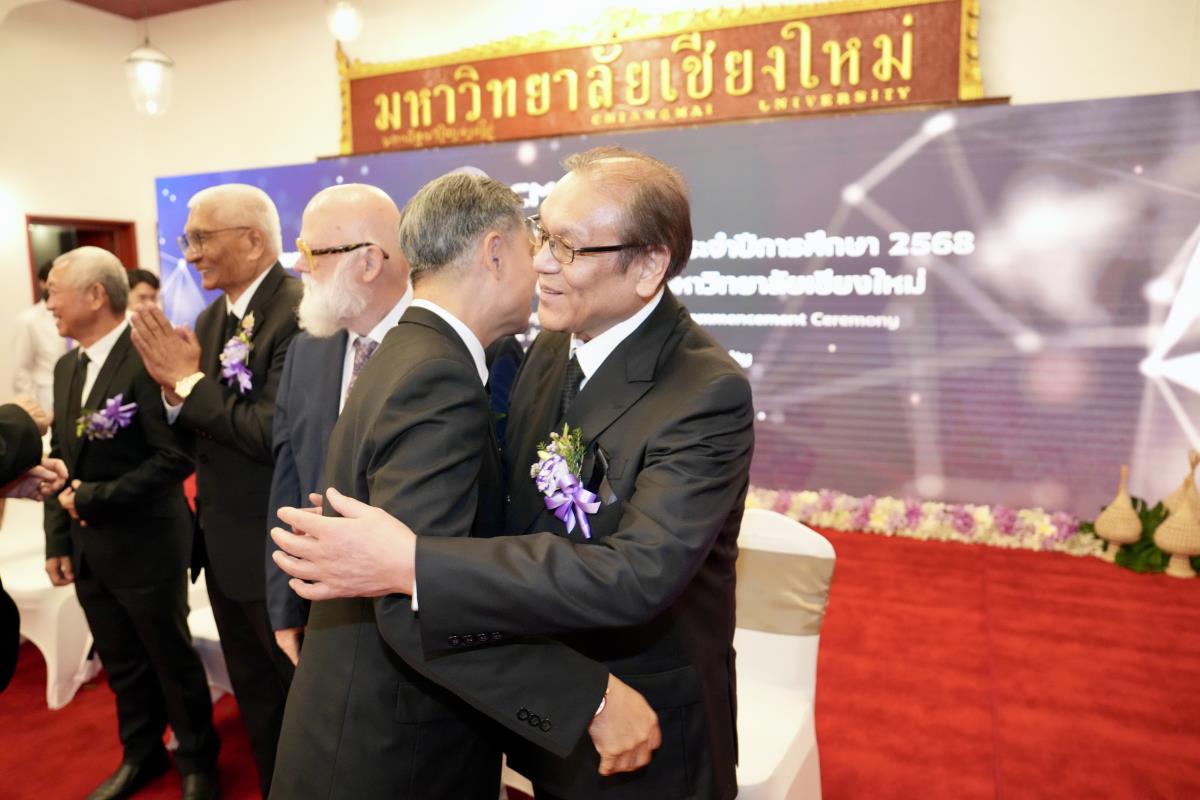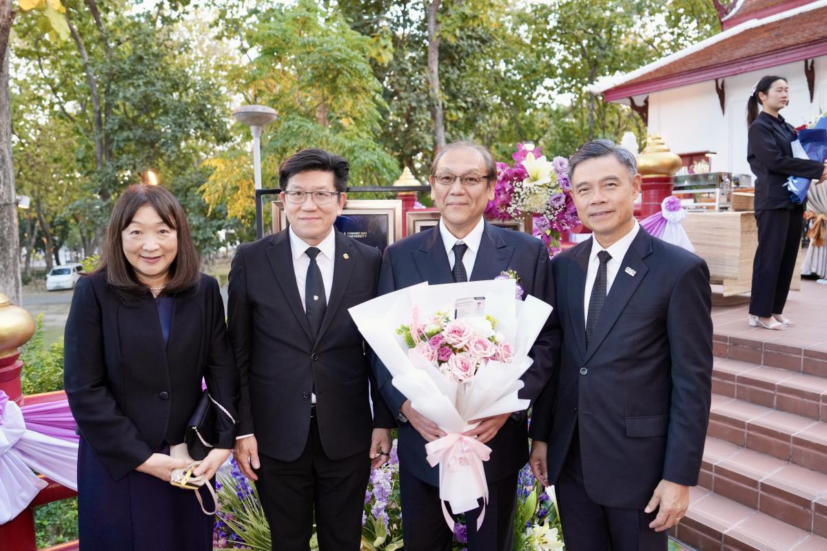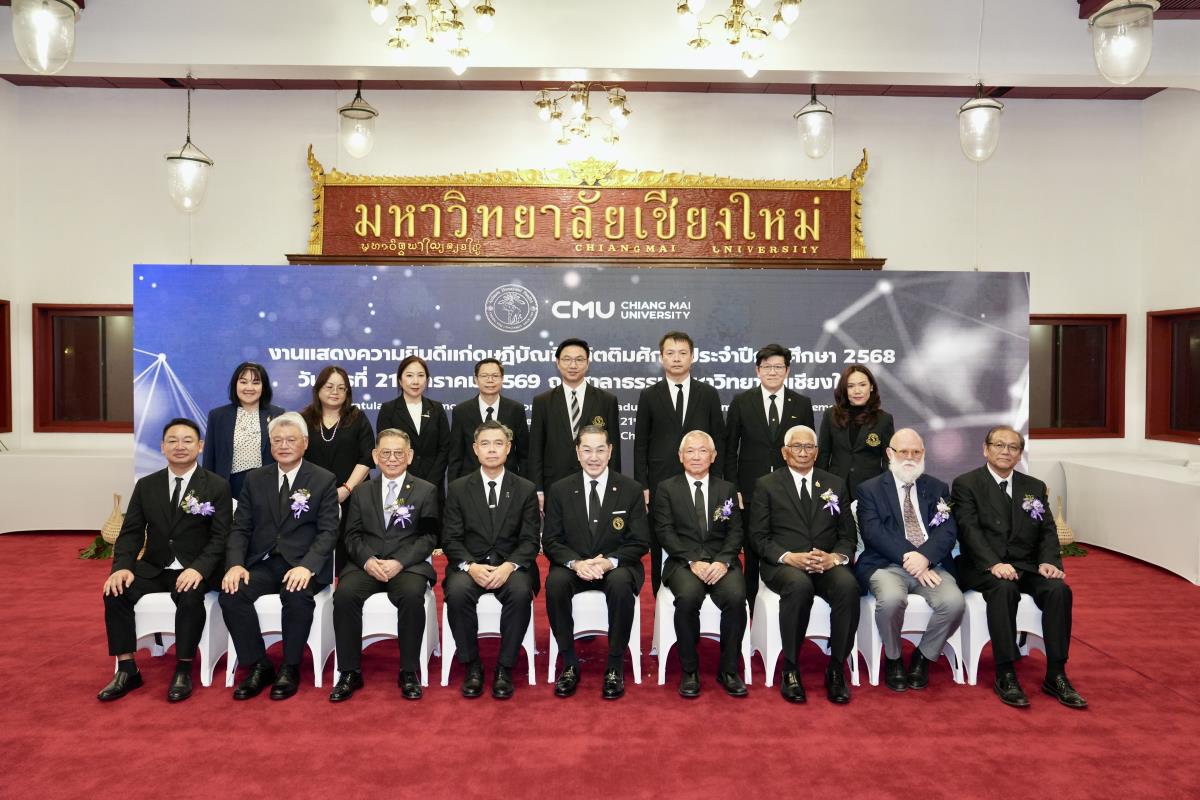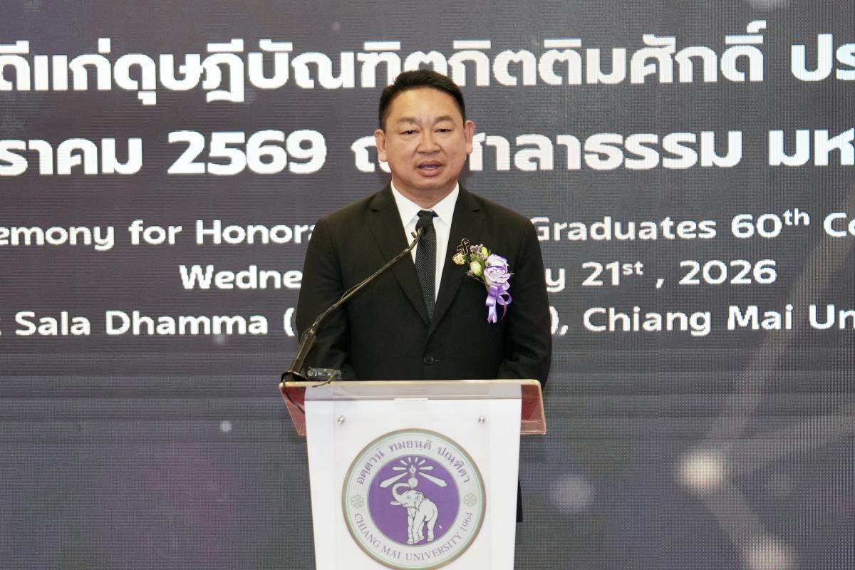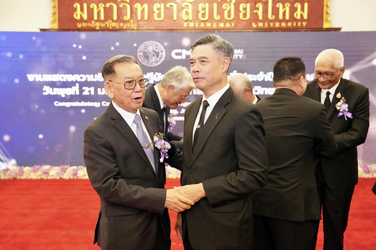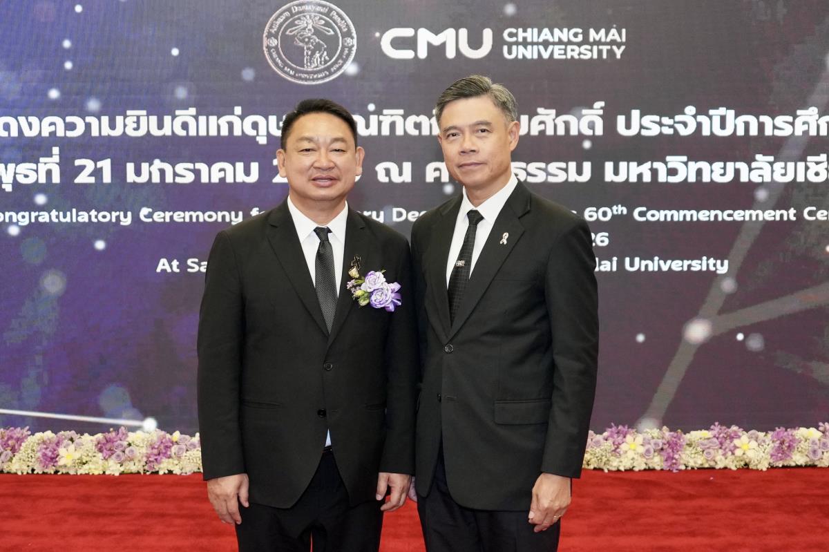 มหาวิทยาลัยเชียงใหม่ จัดงานแสดงความยินดีผู้ที่ได้รับพระราชทานปริญญากิตติมศักดิ์ ในงานพิธีพระราชทานปริญญาบัตร ครั้งที่ 60 ประจำปีการศึกษา 2567-2568 โดยมีศาสตราจารย์พิเศษ ดร.สุรเกียรติ์ เสถียรไทย นายกสภามหาวิทยาลัยเชียงใหม่ กล่าวแสดงความยินดี มอบเกียรติบัตร และมอบดอกไม้ ศาสตราจารย์ ดร.นพ.พงษ์รักษ์ ศรีบัณฑิตมงคล อธิการบดีมหาวิทยาลัยเชียงใหม่ มอบภาพถ่ายฯ พร้อมด้วย นายสุมิตร เพชราภิรัชต์ นายกสมาคมนักศึกษาเก่ามหาวิทยาลัยเชียงใหม่ คุณนารีรัตน์ จันทรมังกร ประธานกรรมการส่งเสริมมหาวิทยาลัยเชียงใหม่ มอบของที่ระลึก แก่ผู้ที่ได้รับพระราชทานปริญญากิตติมศักดิ์ ณ ศาลาธรรม มหาวิทยาลัยเชียงใหม่ เมื่อวันพุธที่ 21 มกราคม 2569