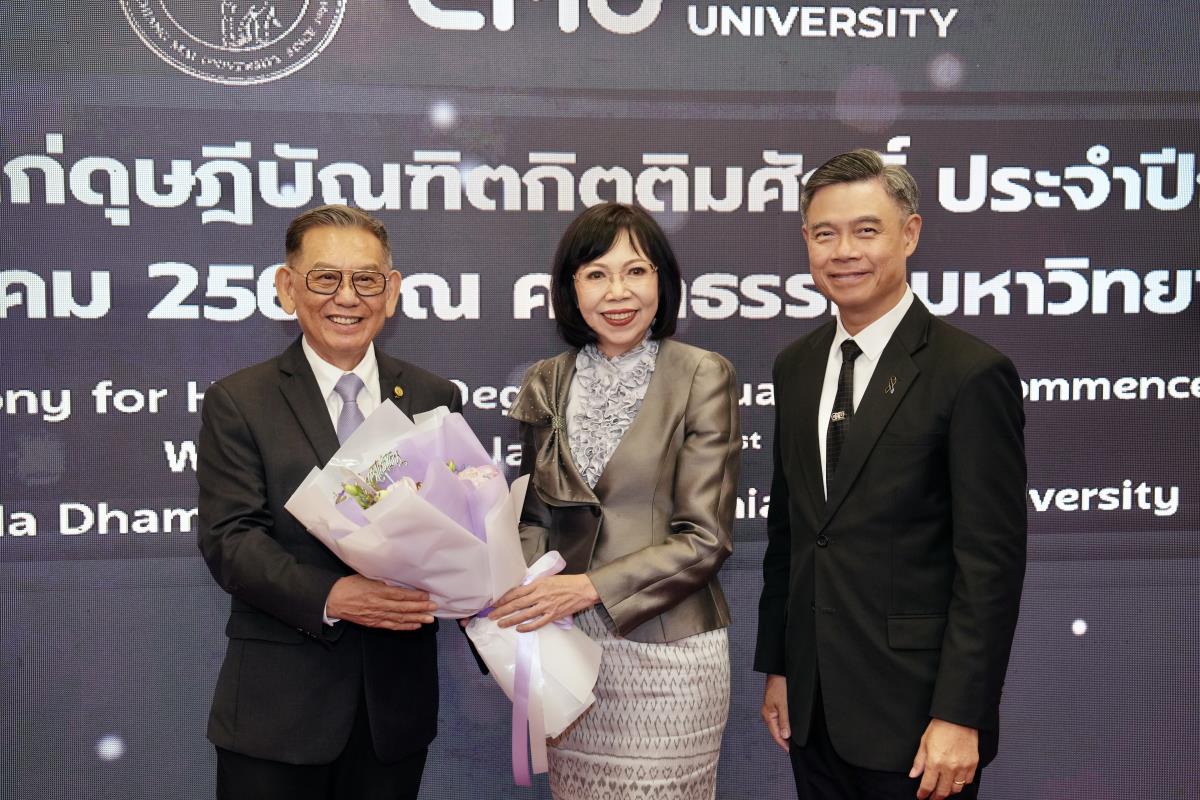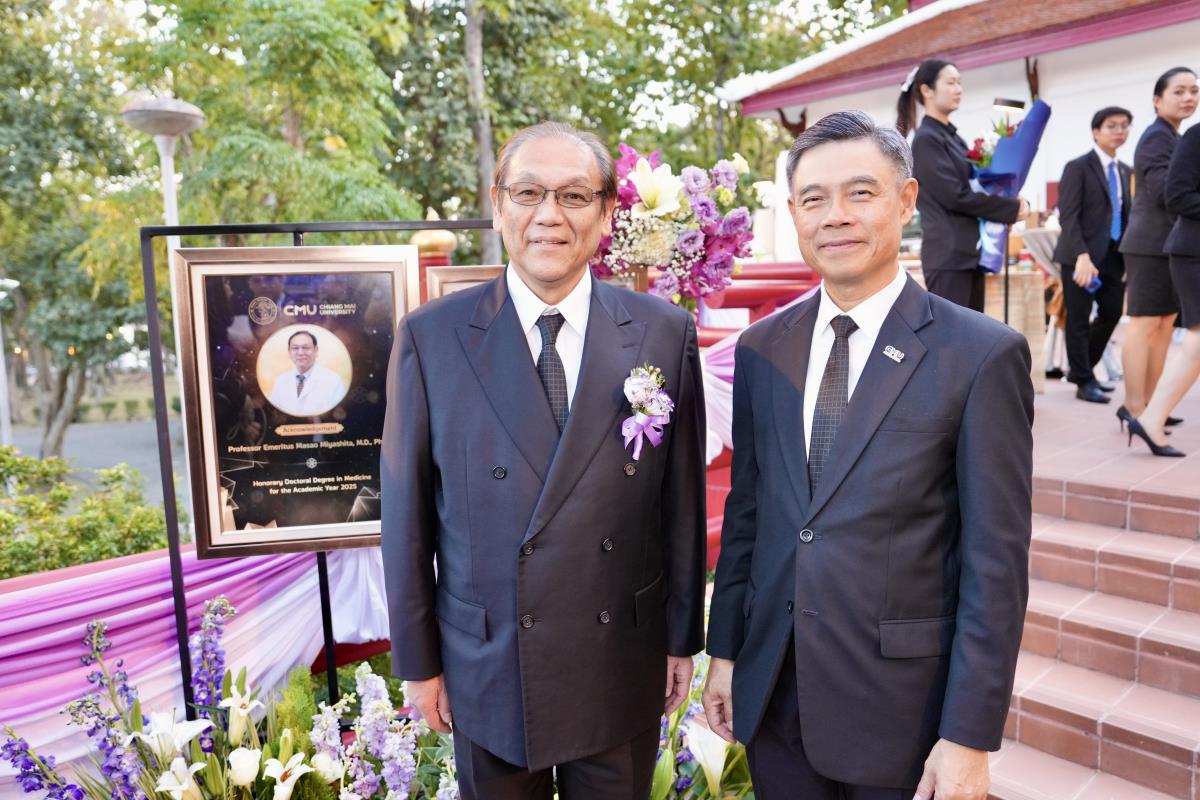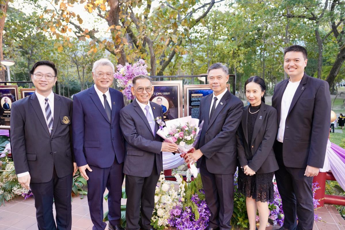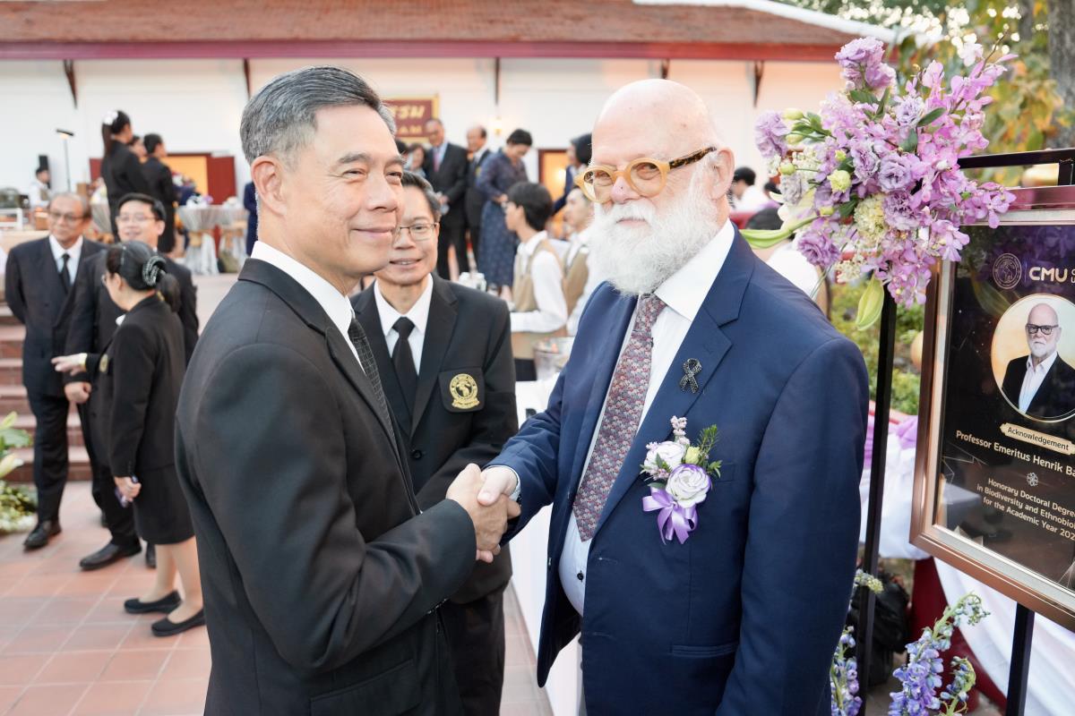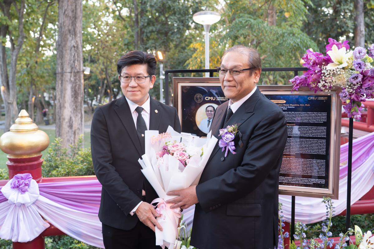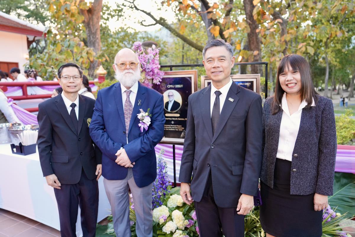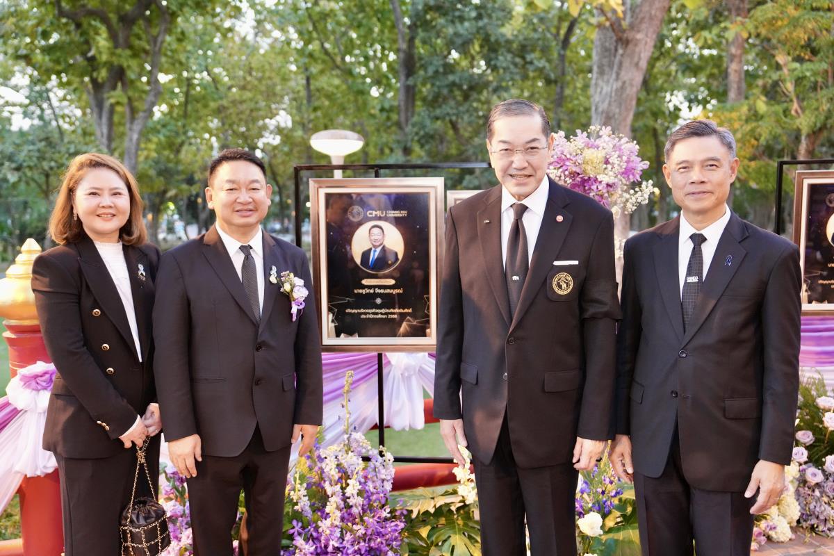 มหาวิทยาลัยเชียงใหม่ จัดงานแสดงความยินดีผู้ที่ได้รับพระราชทานปริญญากิตติมศักดิ์ ในงานพิธีพระราชทานปริญญาบัตร ครั้งที่ 60 ประจำปีการศึกษา 2567-2568 โดยมีศาสตราจารย์พิเศษ ดร.สุรเกียรติ์ เสถียรไทย นายกสภามหาวิทยาลัยเชียงใหม่ กล่าวแสดงความยินดี มอบเกียรติบัตร และมอบดอกไม้ ศาสตราจารย์ ดร.นพ.พงษ์รักษ์ ศรีบัณฑิตมงคล อธิการบดีมหาวิทยาลัยเชียงใหม่ มอบภาพถ่ายฯ พร้อมด้วย นายสุมิตร เพชราภิรัชต์ นายกสมาคมนักศึกษาเก่ามหาวิทยาลัยเชียงใหม่ คุณนารีรัตน์ จันทรมังกร ประธานกรรมการส่งเสริมมหาวิทยาลัยเชียงใหม่ มอบของที่ระลึก แก่ผู้ที่ได้รับพระราชทานปริญญากิตติมศักดิ์ ณ ศาลาธรรม มหาวิทยาลัยเชียงใหม่ เมื่อวันพุธที่ 21 มกราคม 2569