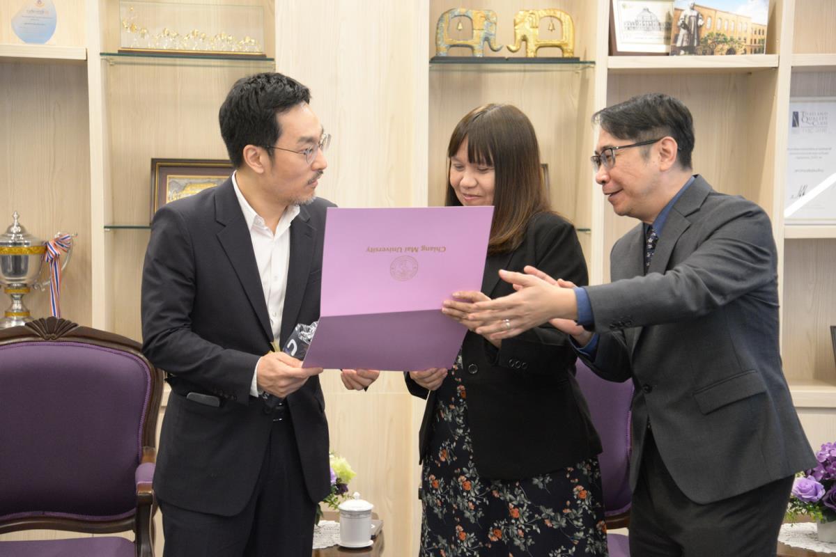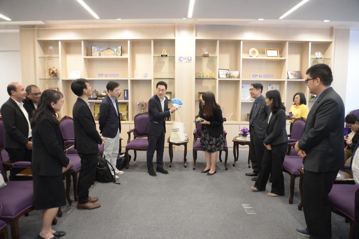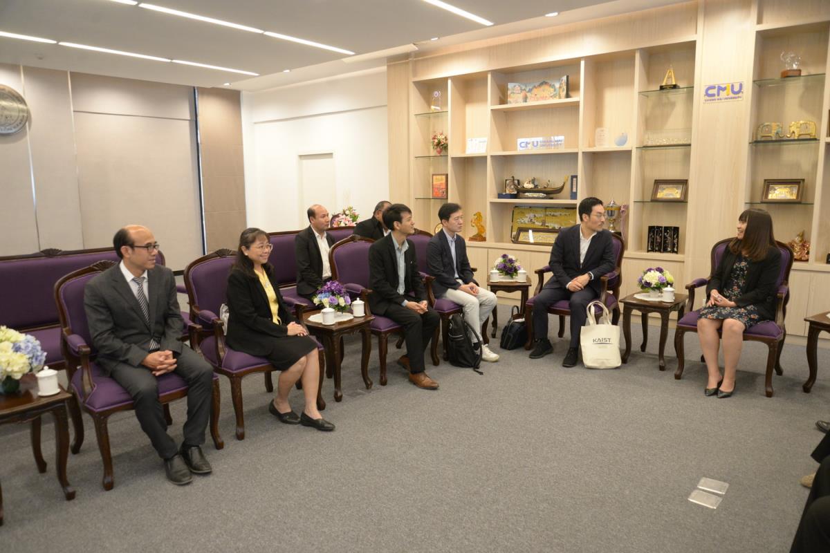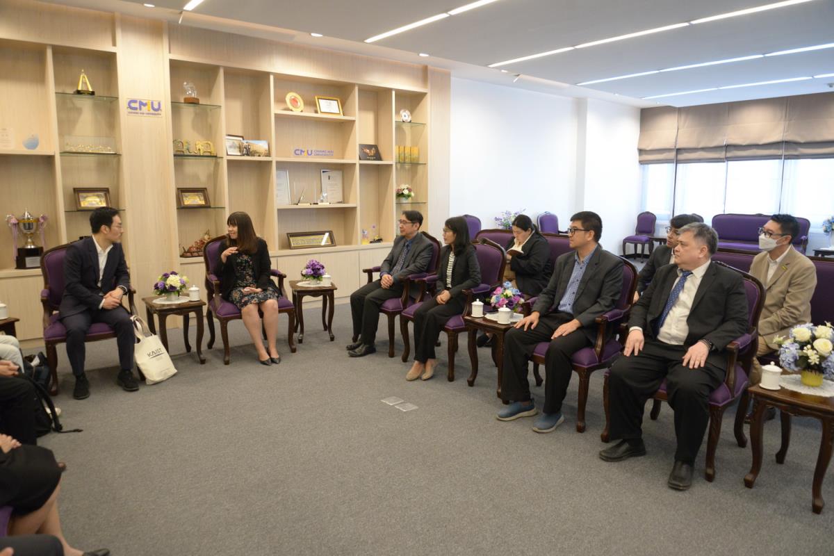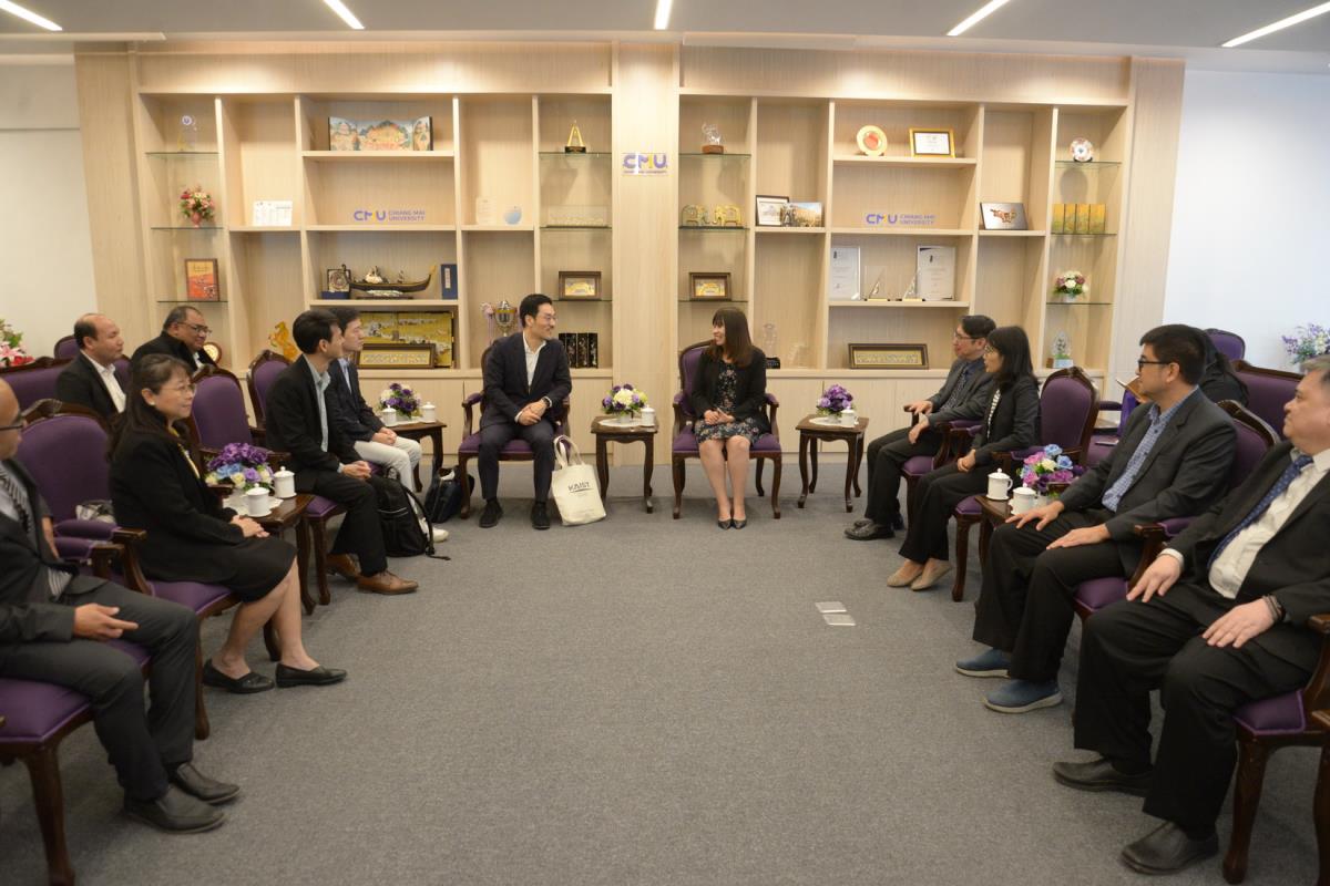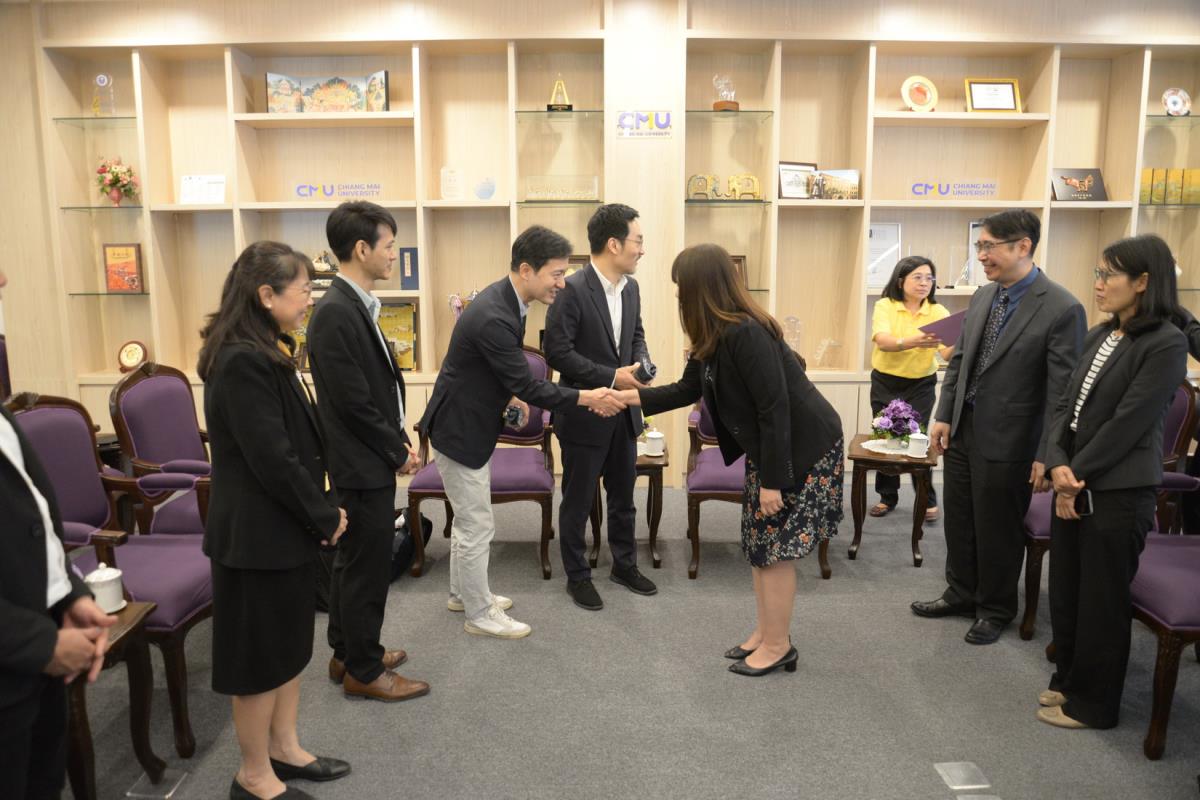 รองศาสตราจารย์ ดร.วินิตา บุณโยดม รองอธิการบดี พร้อมด้วยคณะผู้บริหารมหาวิทยาลัยเชียงใหม่ ให้การต้อนรับ Prof. Dr. Byungha Shin, Head, Department of Materials Science and Engineering (MSE), Korea Advanced Institute of Science and Technology และคณะ ในโอกาสที่มาเยี่ยมเยือนมหาวิทยาลัยเชียงใหม่ เพื่อปรึกษาหารือและแลกเปลี่ยนข้อคิดเห็น เกี่ยวกับความร่วมมือทางวิชาการ ณ ห้องรับรองหม่อมหลวงปิ่น มาลากุล อาคารสำนักงานมหาวิทยาลัย 1 มหาวิทยาลัยเชียงใหม่ วันจันทร์ที่ 4 พฤศจิกายน พ.ศ. 2567