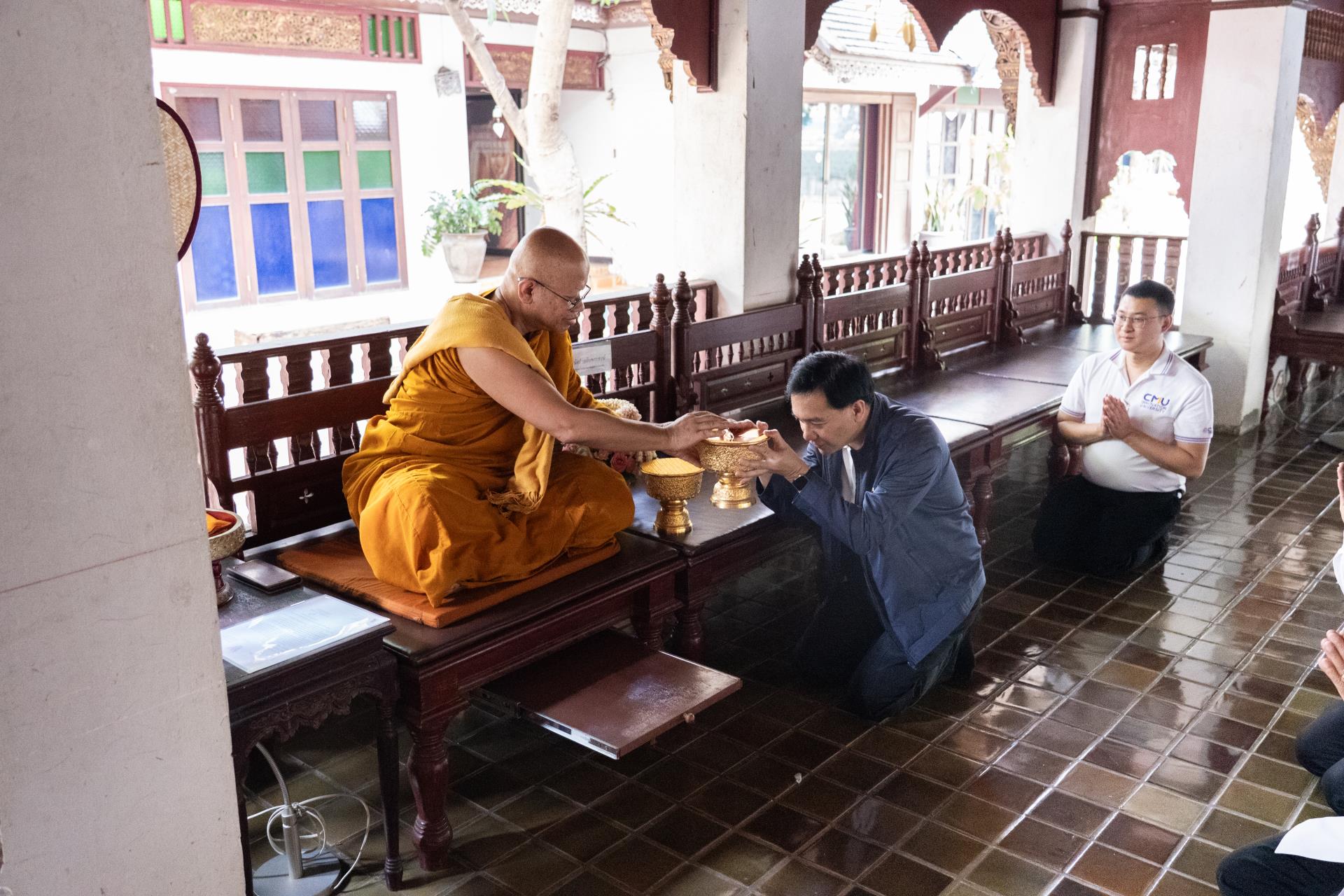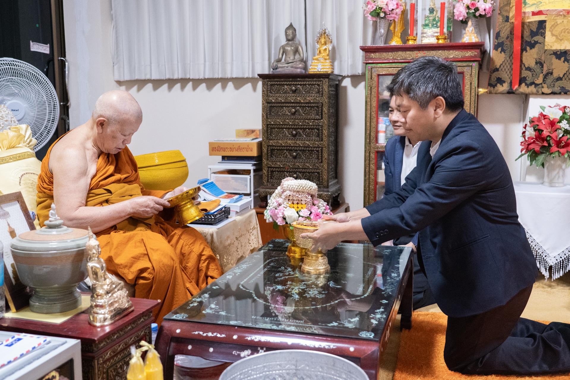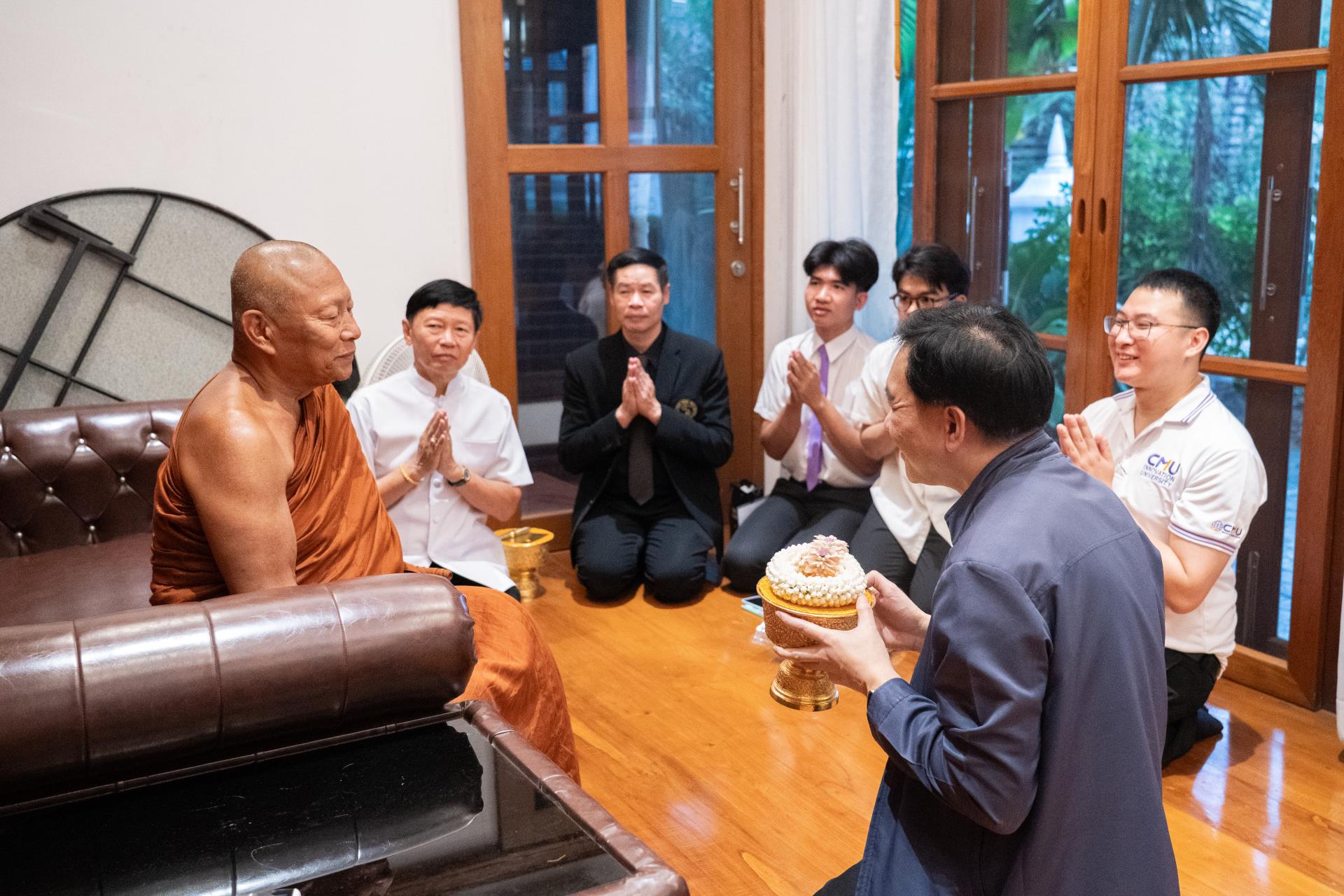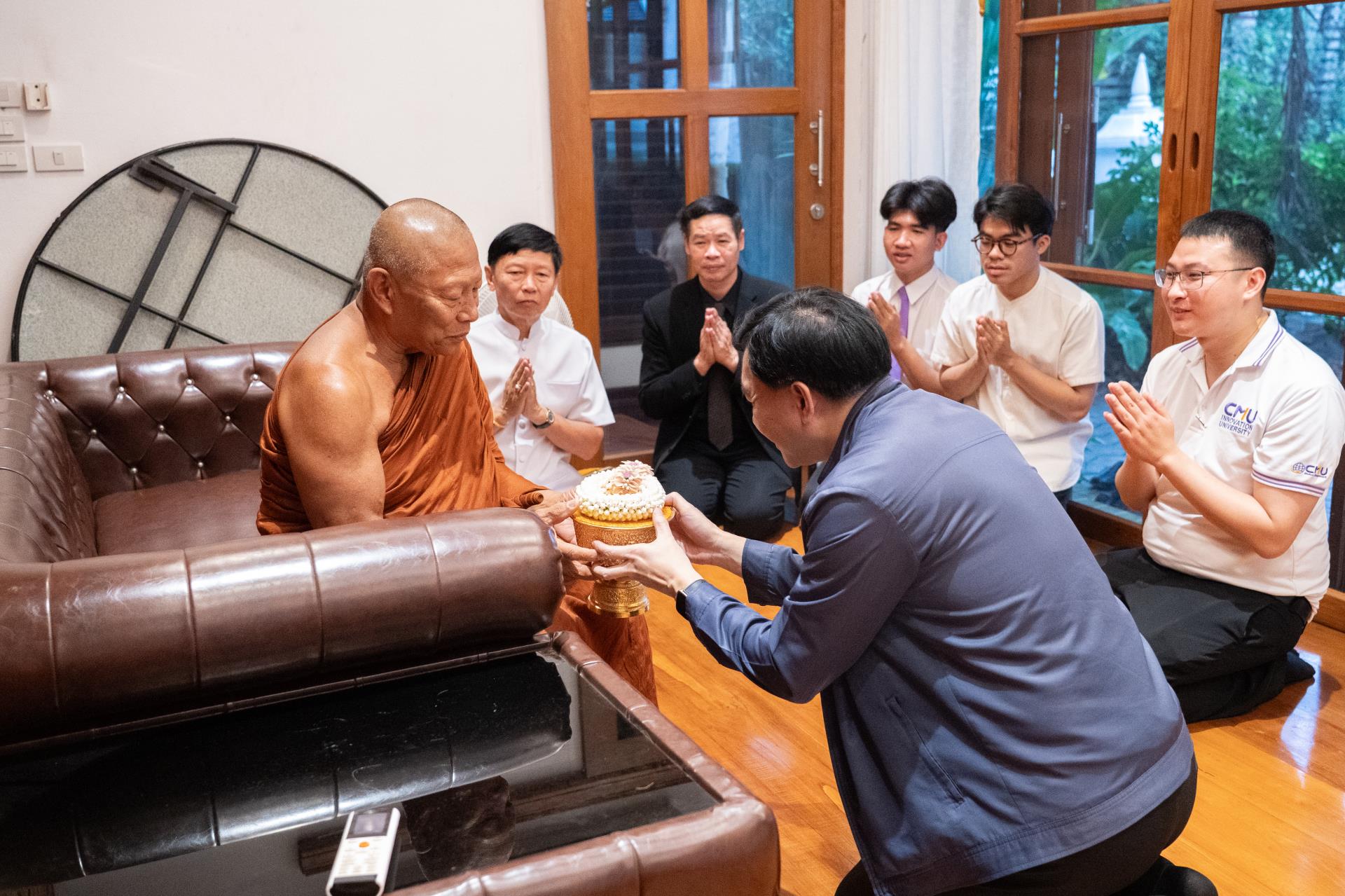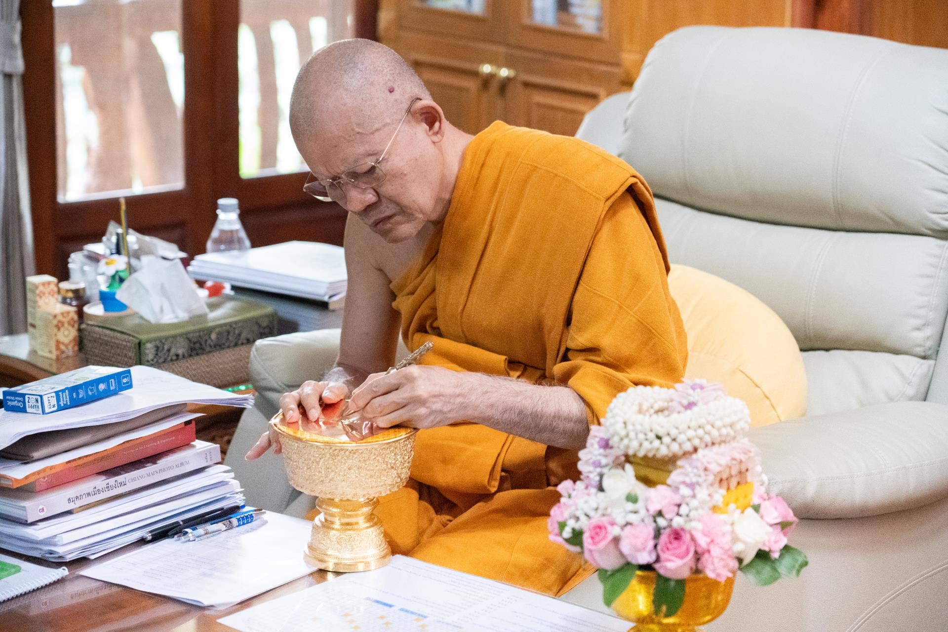 ศาสตราจารย์ปฏิบัติ ดร.ชรินทร์ เตชะพันธุ์ รองอธิการบดี และคณะเข้ากราบถวายสักการะพระมหาเถระเพื่อกราบขอเมตตาจารอักขระมงคลอธิษฐานจิตแผนทองซึ่งจะเชิญไปหลอมเป็นชนวนนำฤกษ์ในพิธีเททองหล่อพระพุทธปฏิมาประจำสำนักงานมหาวิทยาลัย มหาวิทยาลัยเชียงใหม่ ในวันจันทร์ที่ ๒๓ มีนาคม ๒๕๖๙ เวลา ๐๙.๐๙ น. ณ มลฑลพิธีลานหน้าอาคารสำนักงานมหาวิทยาลัย ๑ โดย ได้รับความเมตตาจากพระมหาเถระผู้ทรงคุณธรรม จำนวน ๑๘ รูป เบื้องต้น ดังนี้