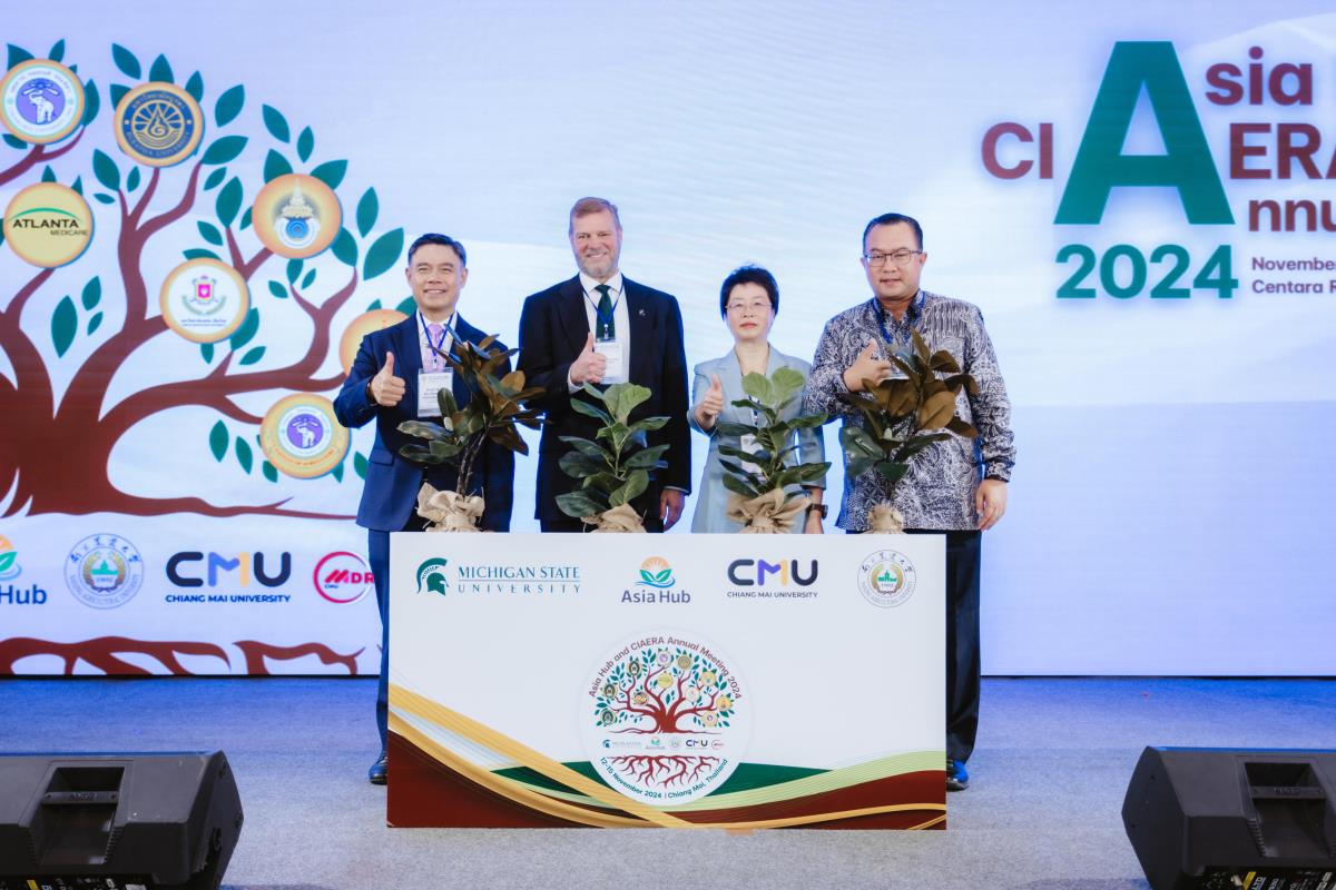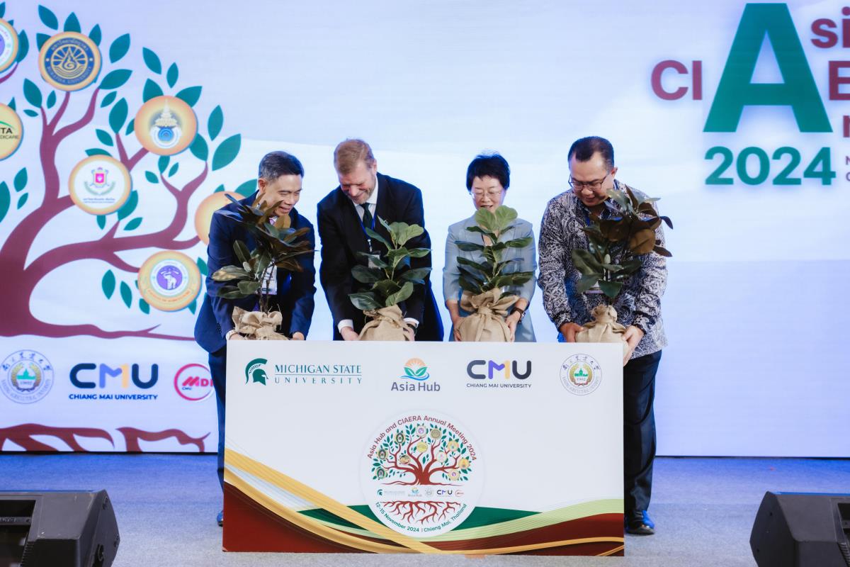 มหาวิทยาลัยเชียงใหม่ โดยสถาบันวิจัยพหุศาสตร์ จัดงานประชุมวิชาการนานาชาติ Asia Hub Annual Meeting 2024 and Consortium for Innovations in Agricultural Education and Research in Asia (CIAERA) ภายใต้โครงการสัมมนาเครือข่ายความร่วมมือระดับนานาชาติ ด้าน NEXUS (Water-Food-Energy) ร่วมกับ Asia Hub ประจำปี พ.ศ. 2567 ตามแนวคิด “การพัฒนาความร่วมมือไปสู่การเป็น Center of NEXUS in Thailand” โดยมีศาสตราจารย์เกียรติคุณ ดร.สัญชัย จตุรสิทธา ผู้อำนวยการสถาบันวิจัยพหุศาสตร์ มหาวิทยาลัยเชียงใหม่ กล่าวต้อนรับ และมีศาสตราจารย์ ดร.นพ.พงษ์รักษ์ ศรีบัณฑิตมงคล อธิการบดีมหาวิทยาลัยเชียงใหม่ เป็นประธานกล่าวเปิด เพื่อเป็นการร่วมเฉลิมพระเกียรติพระบาทสมเด็จพระเจ้าอยู่หัว เนื่องในโอกาสพระราชพิธีมหามงคลเฉลิมพระชนมพรรษา 6 รอบ 72 พรรษา และร่วมฉลองมหาวิทยาลัยเชียงใหม่ครบรอบ 60 ปี และเป็นเวทีแลกเปลี่ยนองค์ความรู้ ตลอดจนแนวทางในการบริหารจัดการทรัพยากรธรรมชาติในภูมิภาคเอเชียให้เกิดประโยชน์สูงสุดอย่างยั่งยืน จัดขึ้นโดยความร่วมมือของหน่วยงาน 4 ฝ่าย ได้แก่ สถาบันพหุศาสตร์ มหาวิทยาลัยเชียงใหม่ ร่วมกับ Asia Hub และ Nanjing Agricultural University (NAU) ประเทศศาธารณรัฐประชาชนจีน และ Michigan State University (MSU) ประเทศสหรัฐอเมริกา จัดขึ้นระหว่างวันที่ 12-15 พฤศจิกายน พ.ศ. 2567 ณ ห้องประชุมโรงแรมเซ็นทารา ริเวอรไซด์ เชียงใหม่